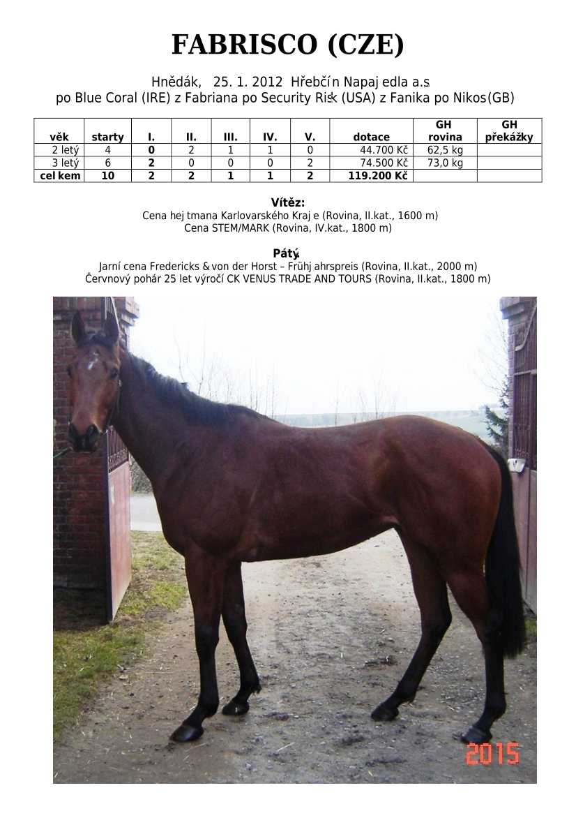 Větší využití v Polsku se najde i pro loňského novice Nagano Gold. Zda-li se po 2 letech do českého chovu vrátí, to už ukáže vývoj chovu.