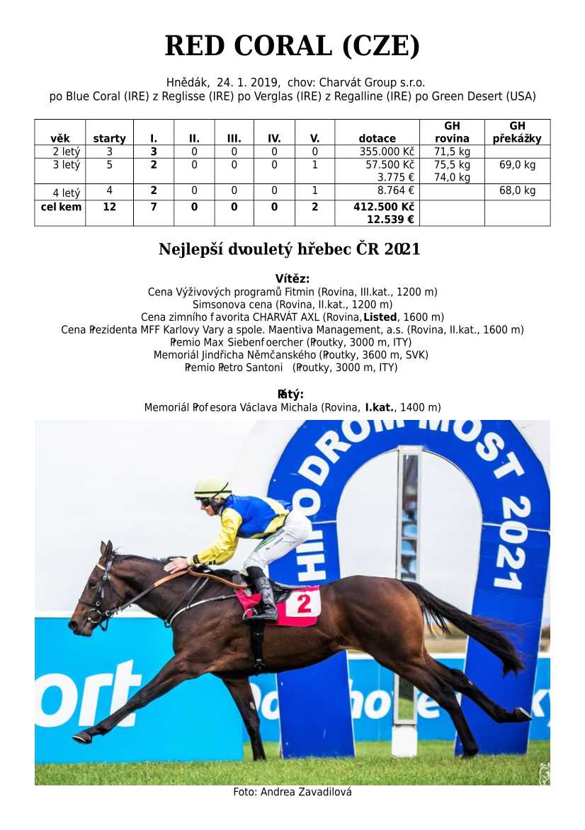 RED CORAL - Nejlepší dvouletý hřebec ČR 2021