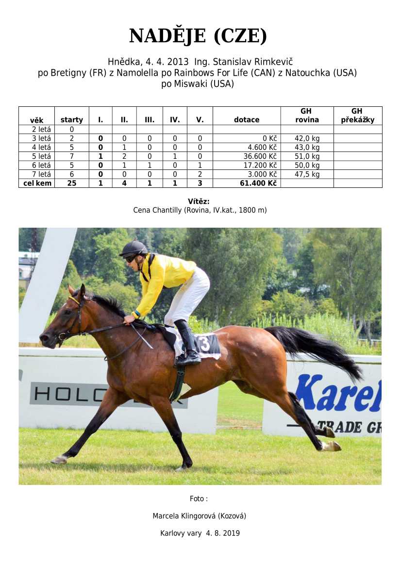 Větší využití v Polsku se najde i pro loňského novice Nagano Gold. Zda-li se po 2 letech do českého chovu vrátí, to už ukáže vývoj chovu.