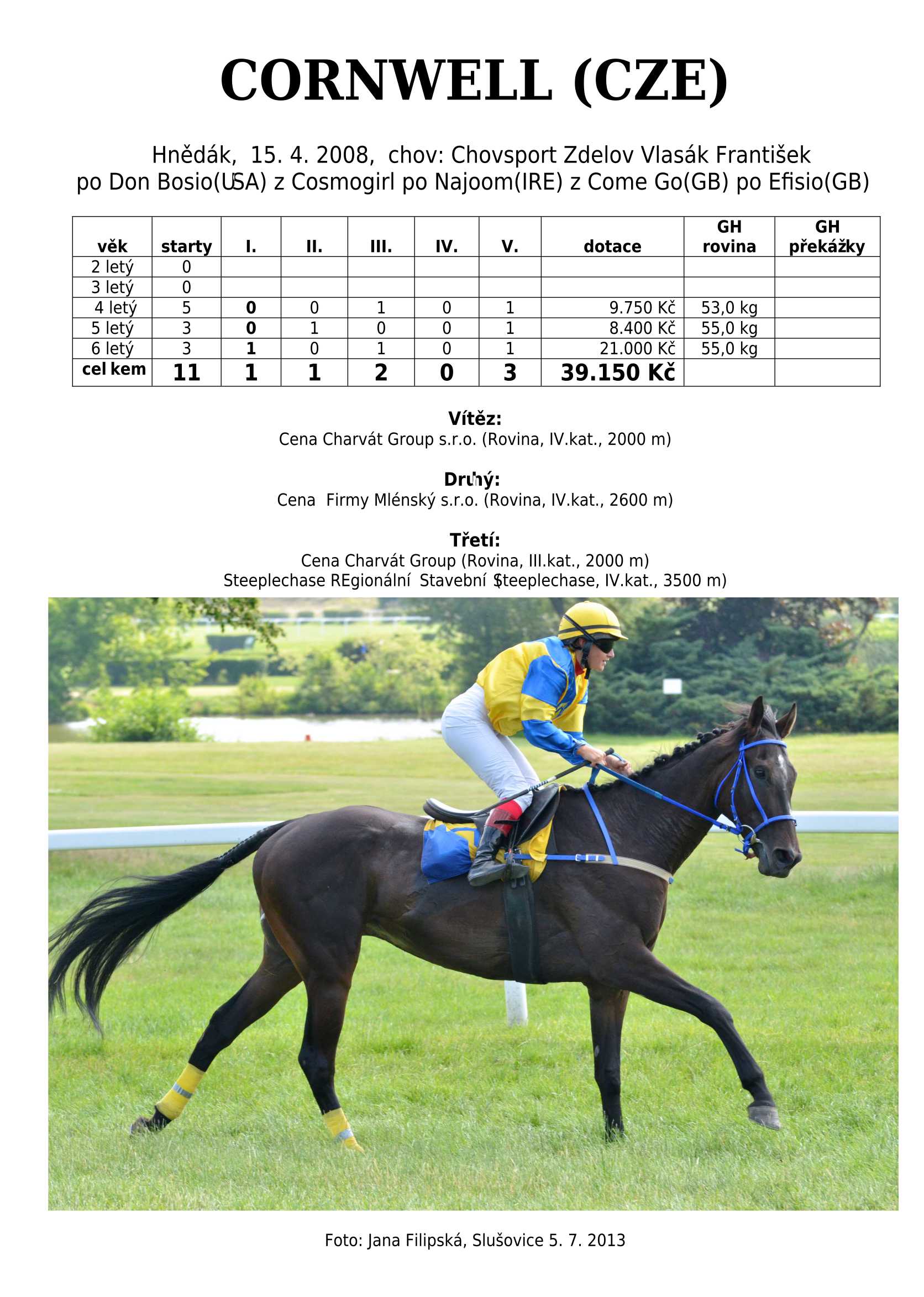 Ke konci dostihové sezóny jsem se pustila do aktualizace výsledků vítězných potomků. Každý plemeník bude mít své potomky na hlavní stránce, bez dalšího vyhledávání a klikání. Vše bude přehlednější, ale aktualizace bude z časových důvodů postupná. Přidáváni jsou potomci s ukončenou dostihovou kariérou.