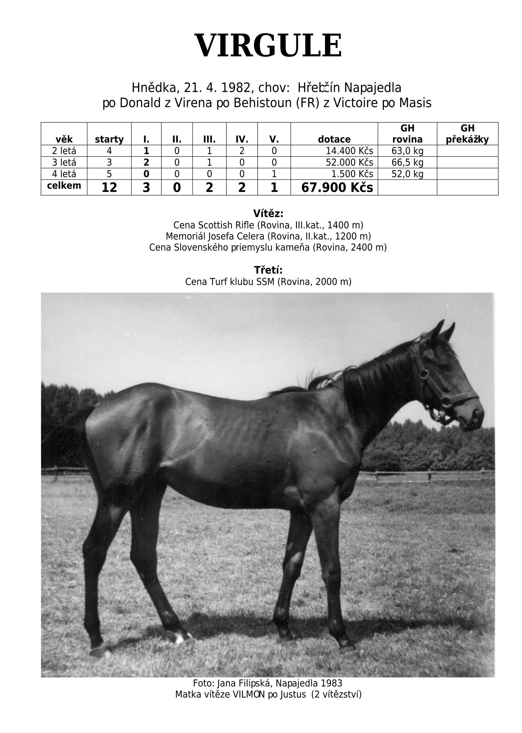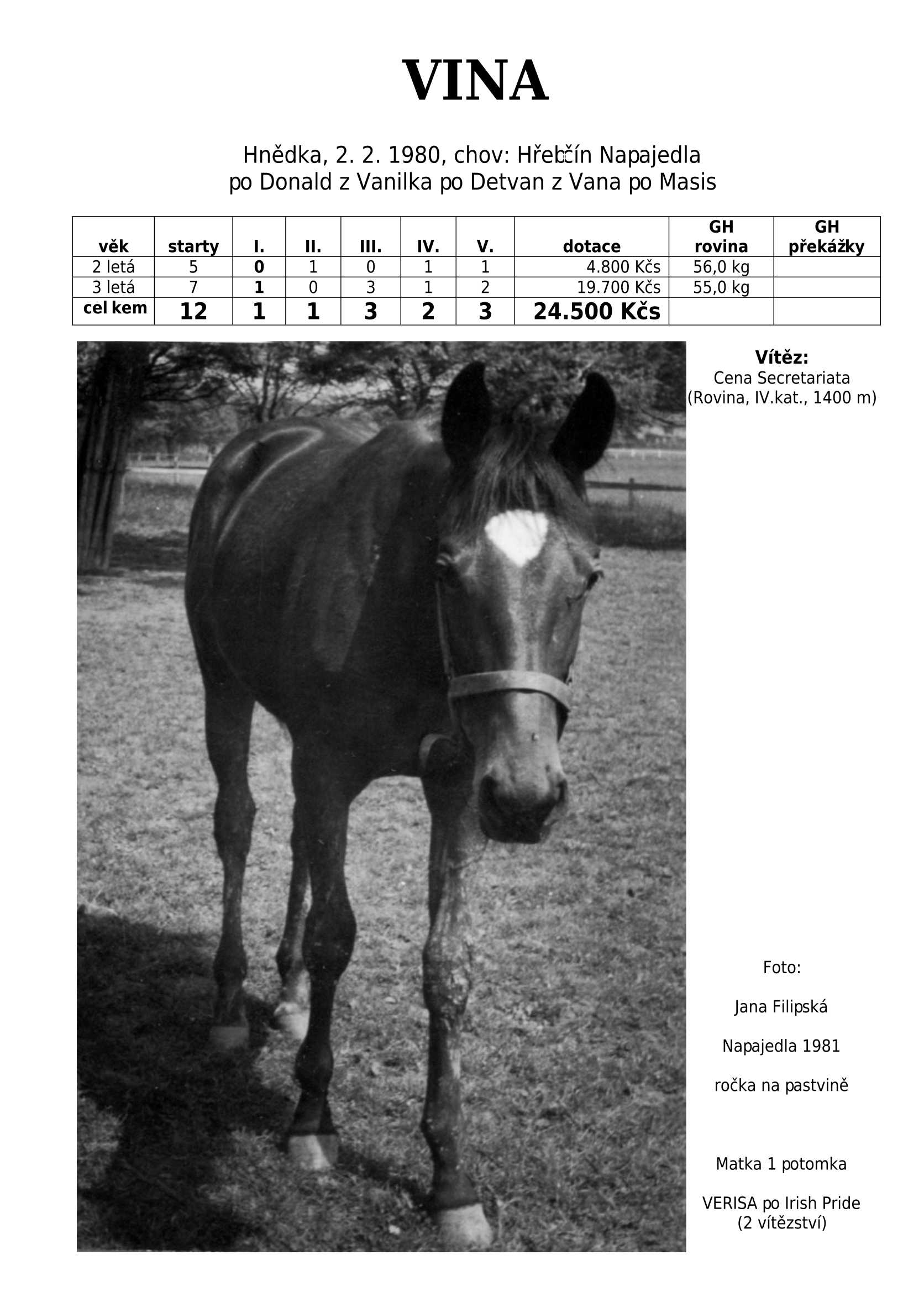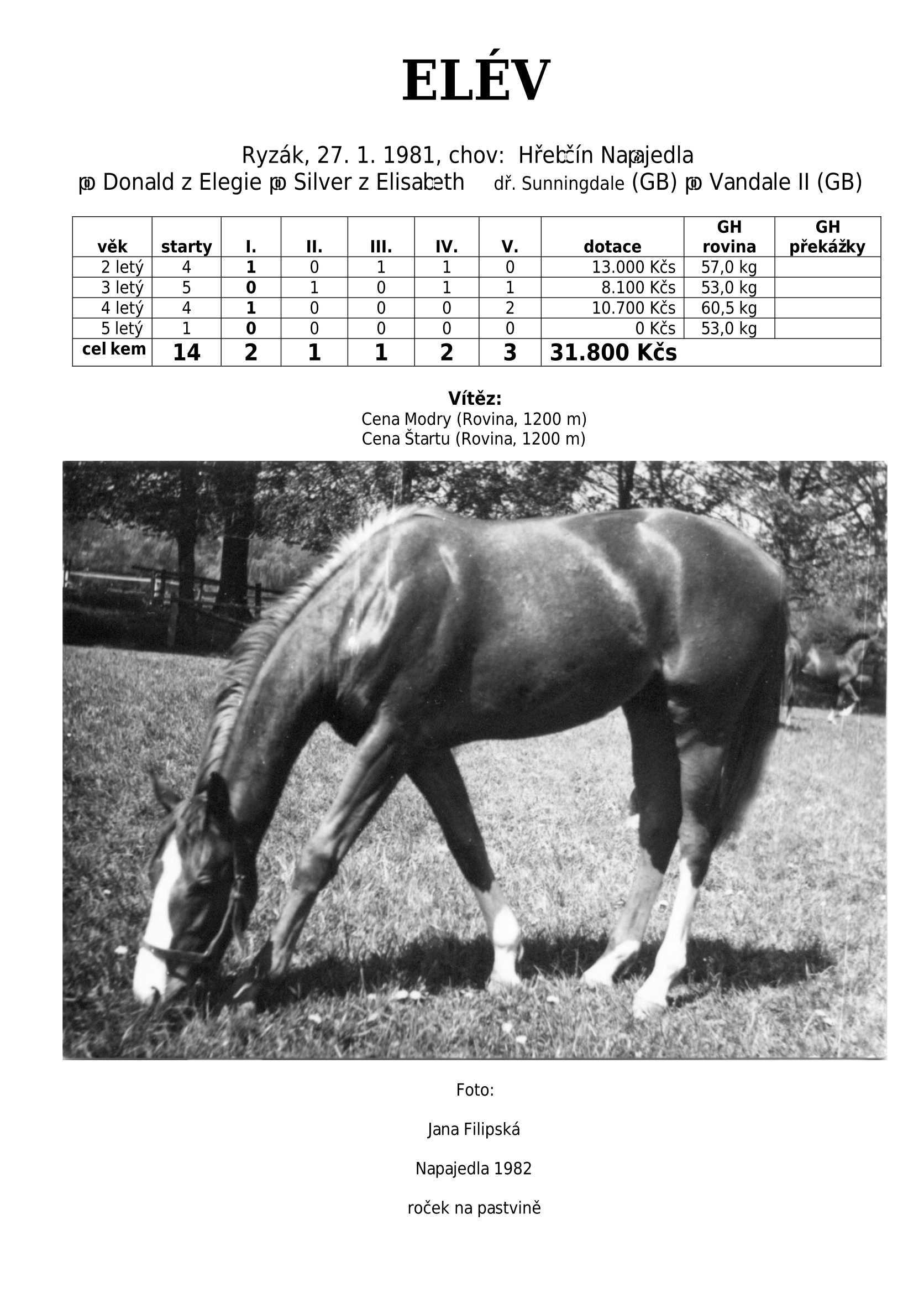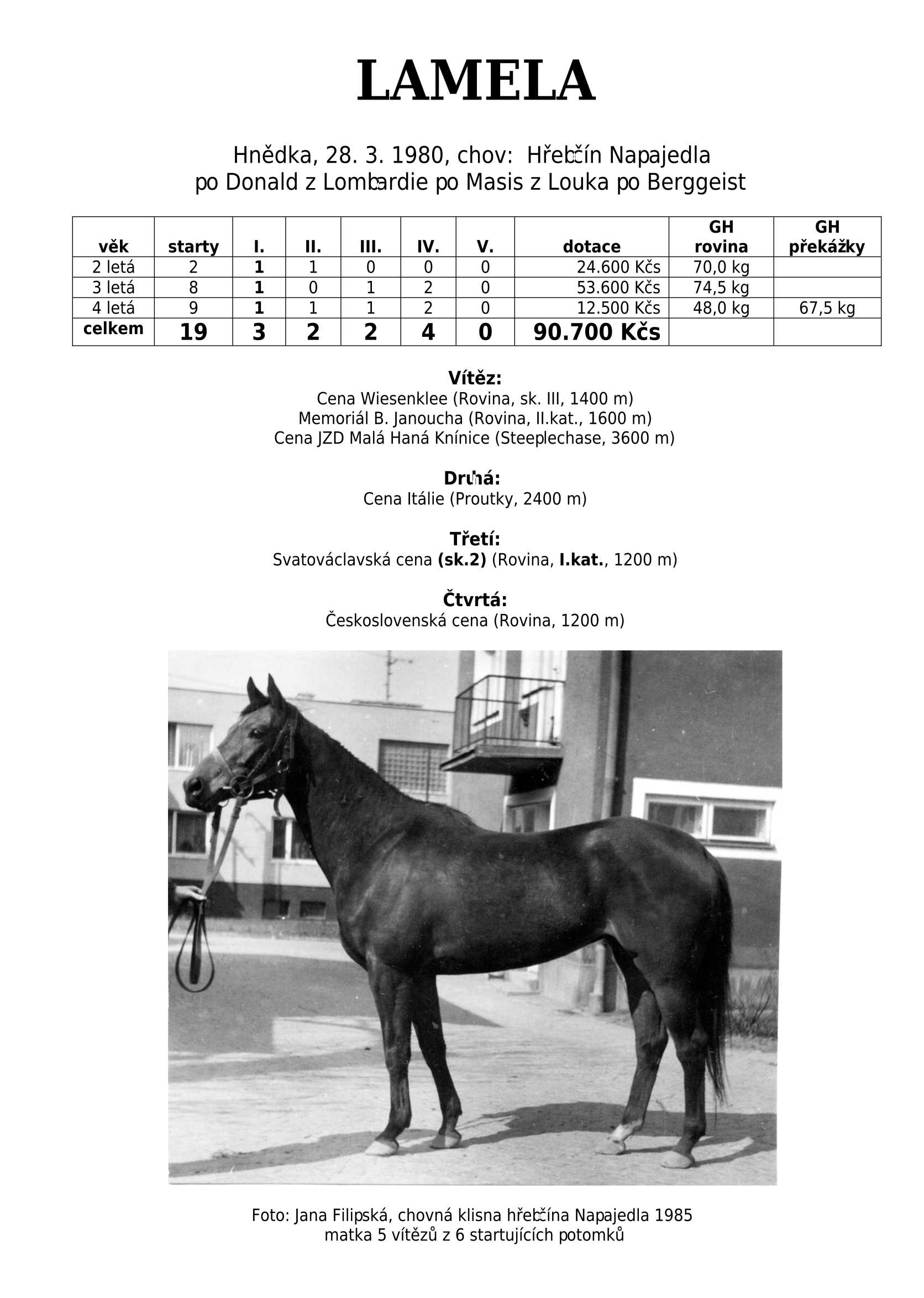 Ke konci dostihové sezóny jsem se pustila do aktualizace výsledků vítězných potomků. Každý plemeník bude mít své potomky na hlavní stránce, bez dalšího vyhledávání a klikání. Vše bude přehlednější, ale aktualizace bude z časových důvodů postupná. Přidáváni jsou potomci s ukončenou dostihovou kariérou.