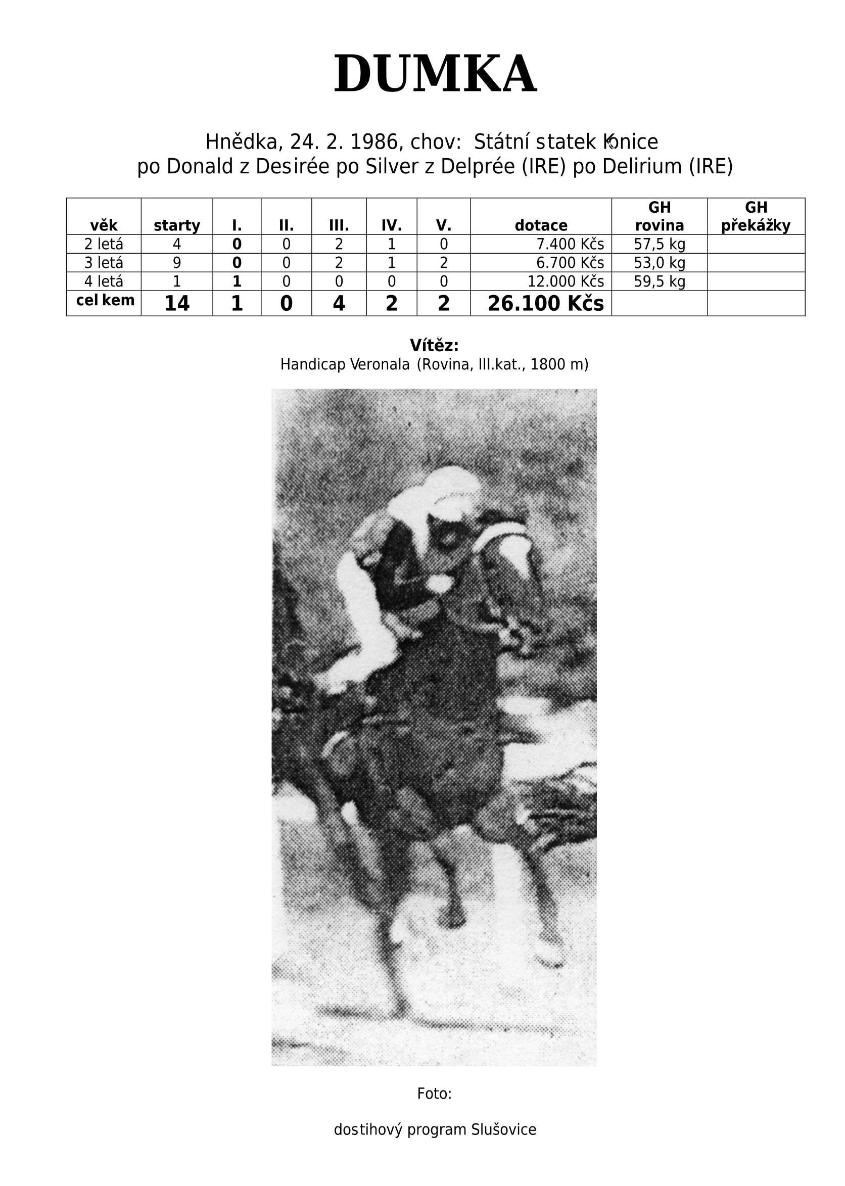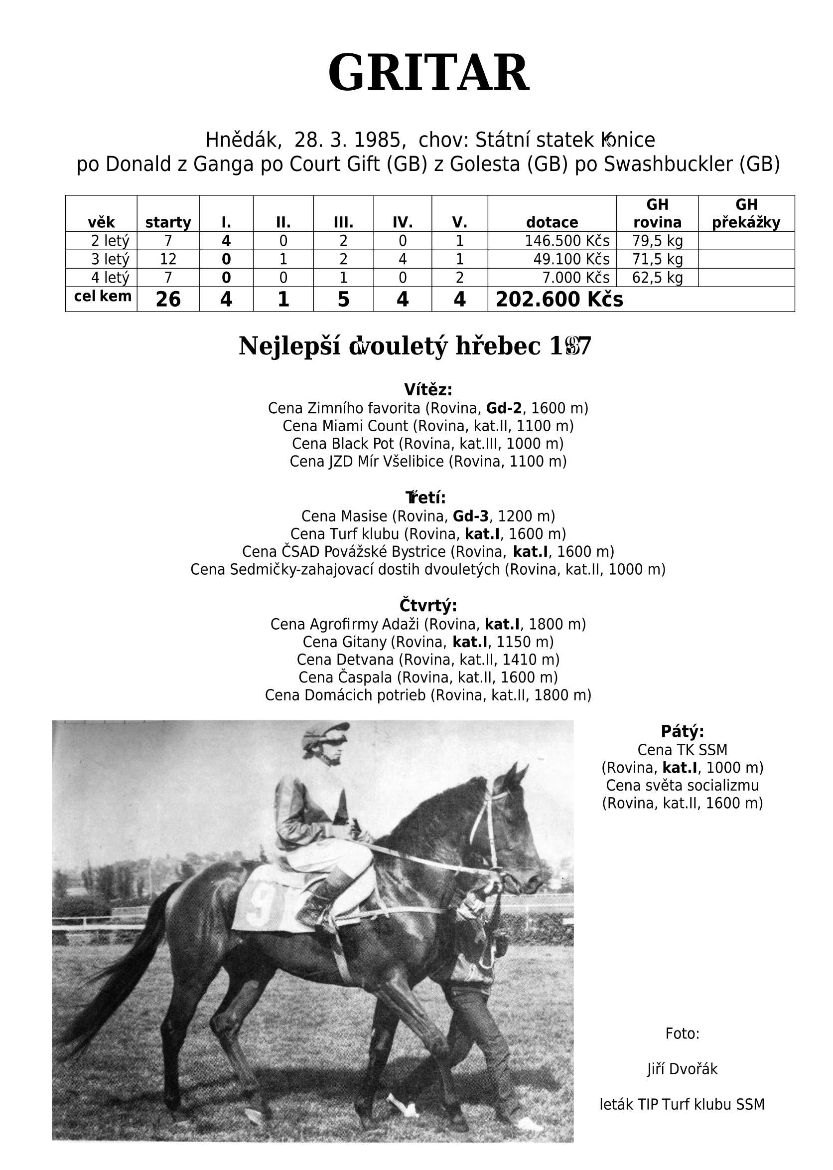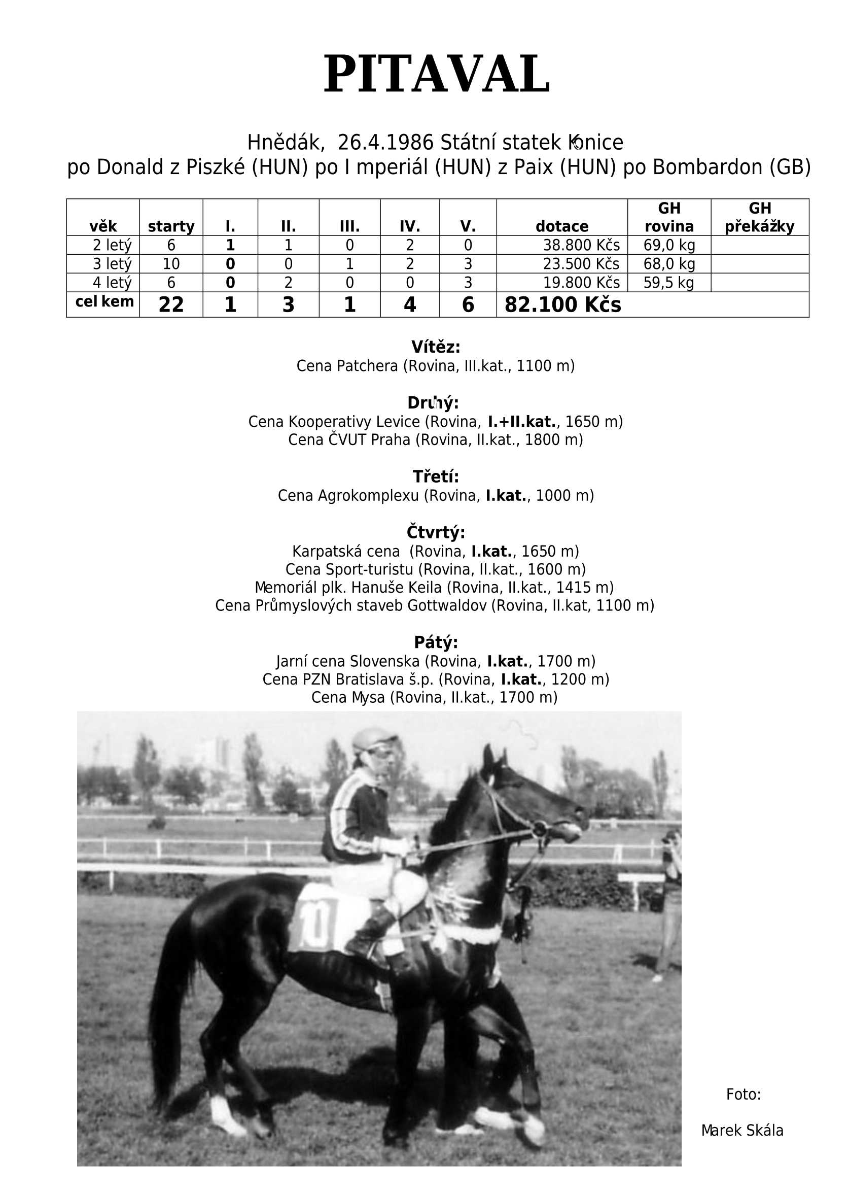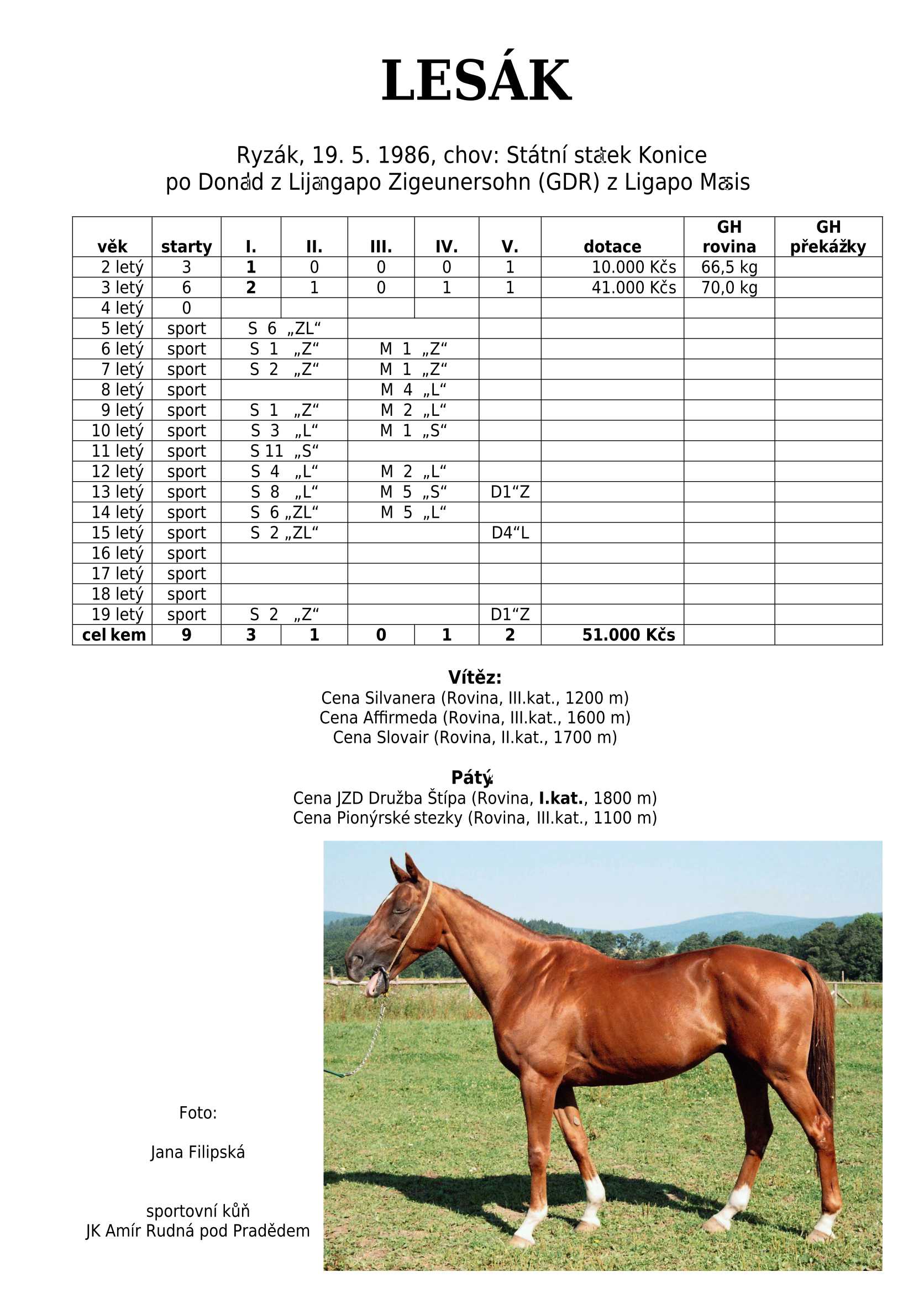 Ke konci dostihové sezóny jsem se pustila do aktualizace výsledků vítězných potomků. Každý plemeník bude mít své potomky na hlavní stránce, bez dalšího vyhledávání a klikání. Vše bude přehlednější, ale aktualizace bude z časových důvodů postupná. Přidáváni jsou potomci s ukončenou dostihovou kariérou.