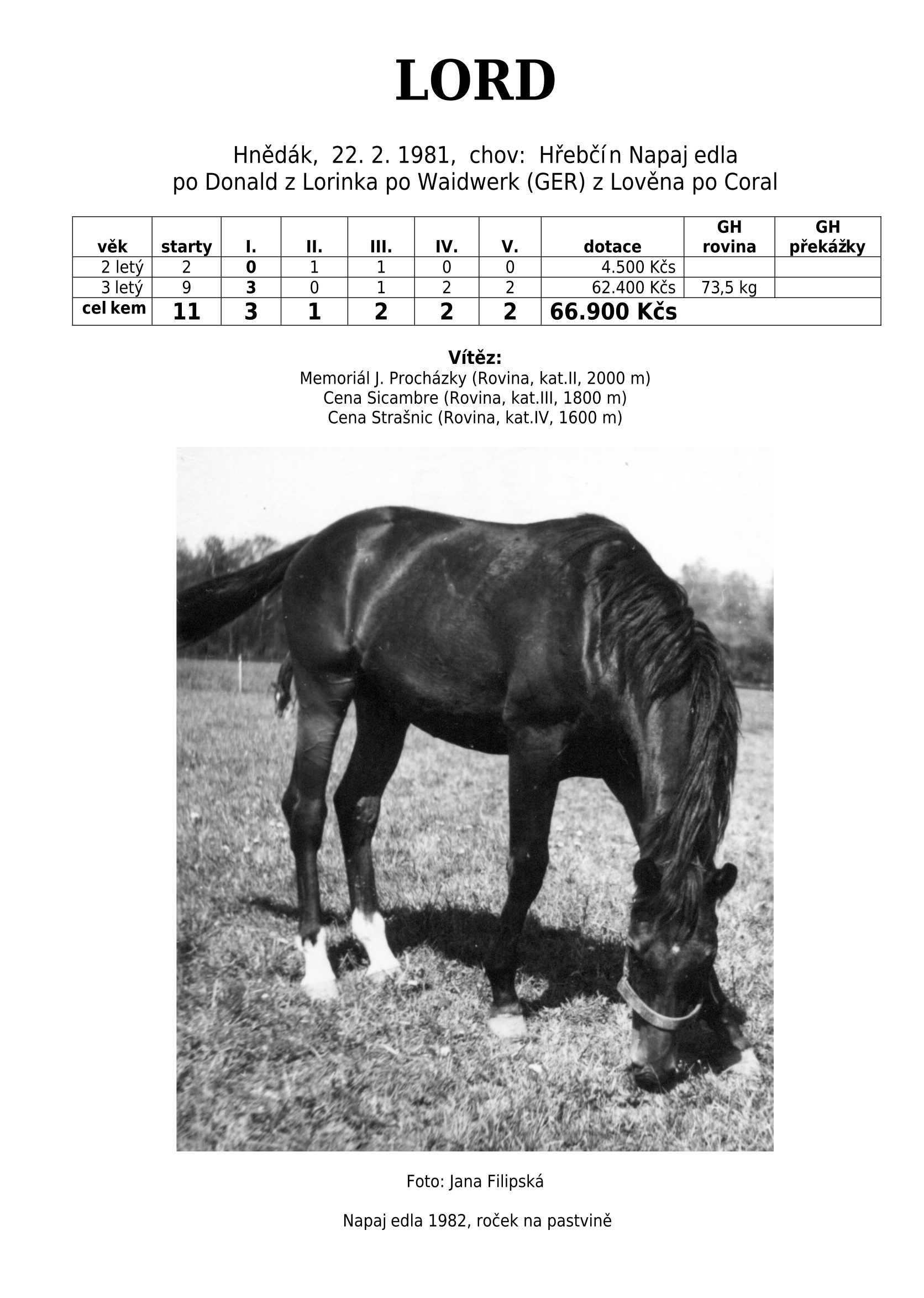 Takový miláček, jako je hrdina Velké pardubické steeplechase, SEXY LORD se u svého otce EGERTON objeví, až bude definitivně v dostihovém důchodu. Za sebe doufám, že se zcela uzdraví ze zranění a opět budeme moci bez dechu sledovat, jak se pere o vítězství. Nejen Sexy Lordovi, ale hlavně celému týmu kolem trénérky Růžičkové držím palce.
