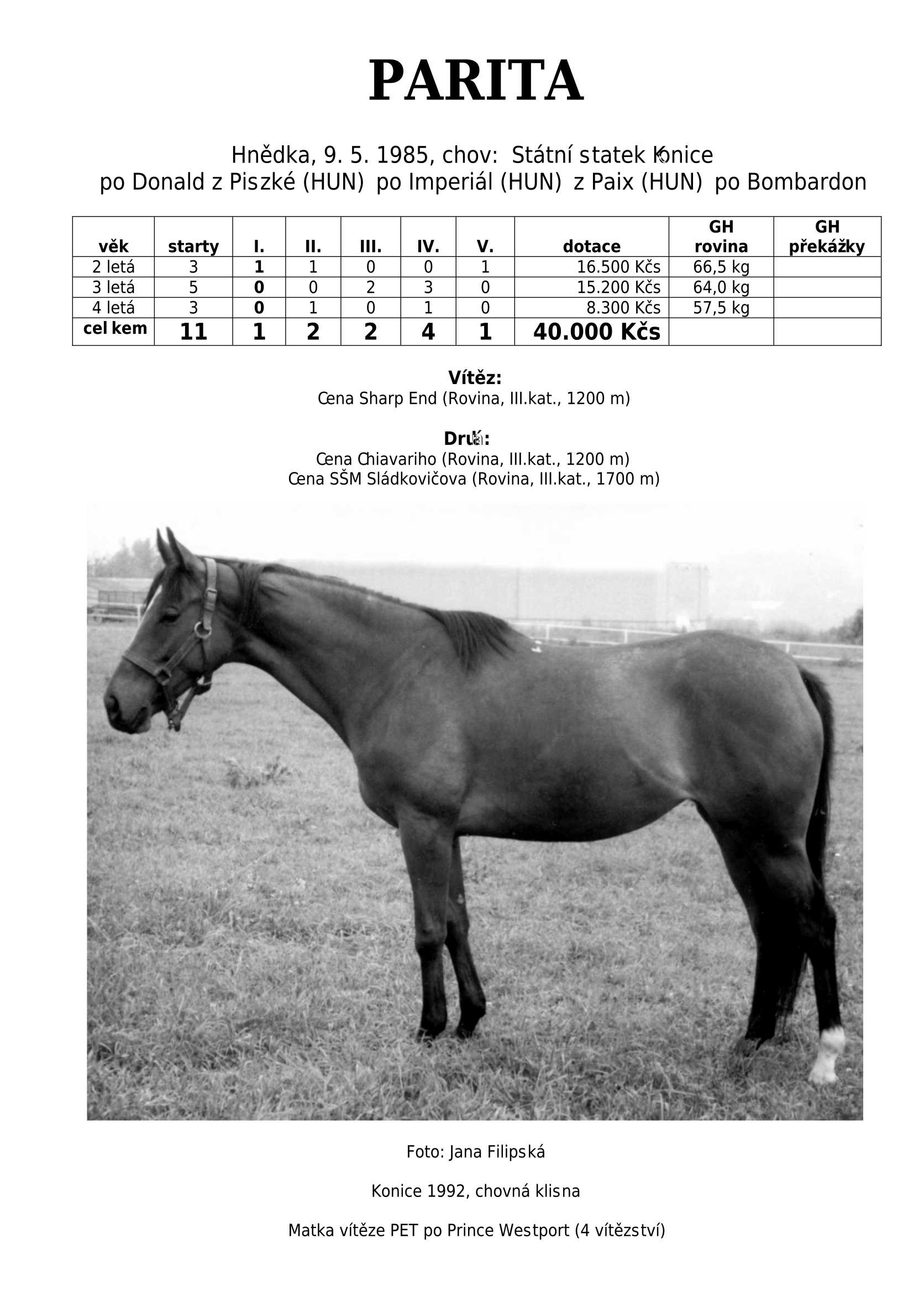 Trendem se ukazuje importování hotových koní. Stáda chovných klisen se stále tenčí, i když loňské úspěchy českých odchovanců byly excelentní, ale to už je jiná kapitola...