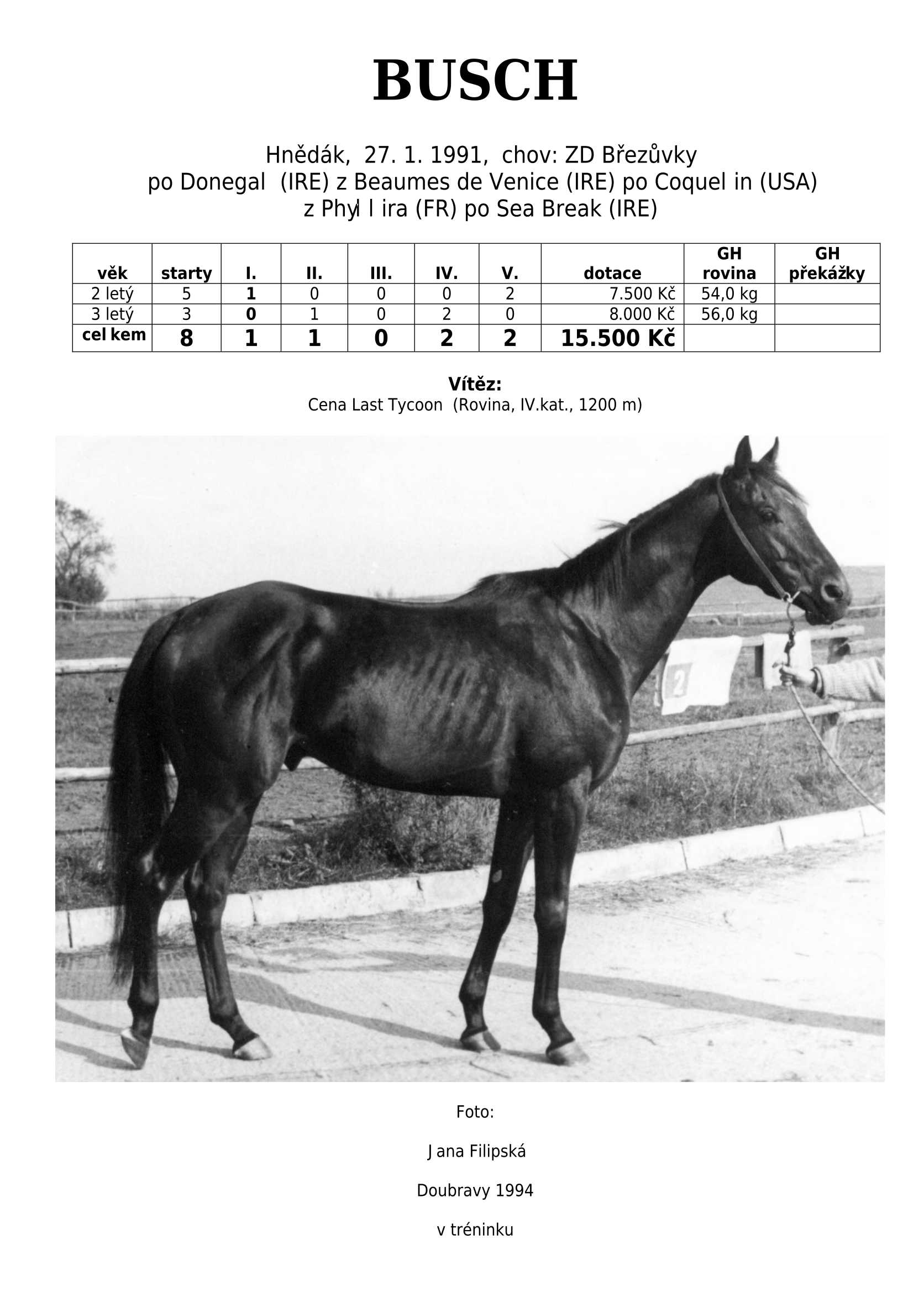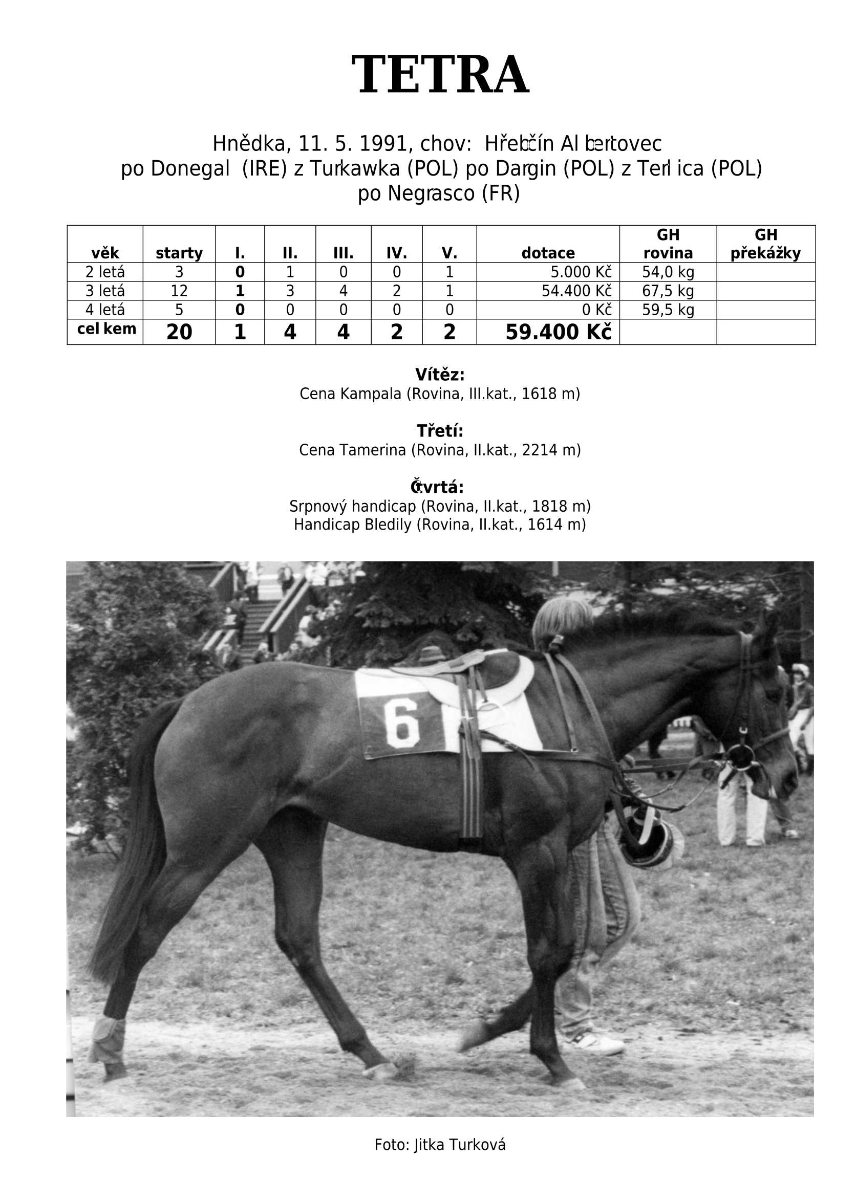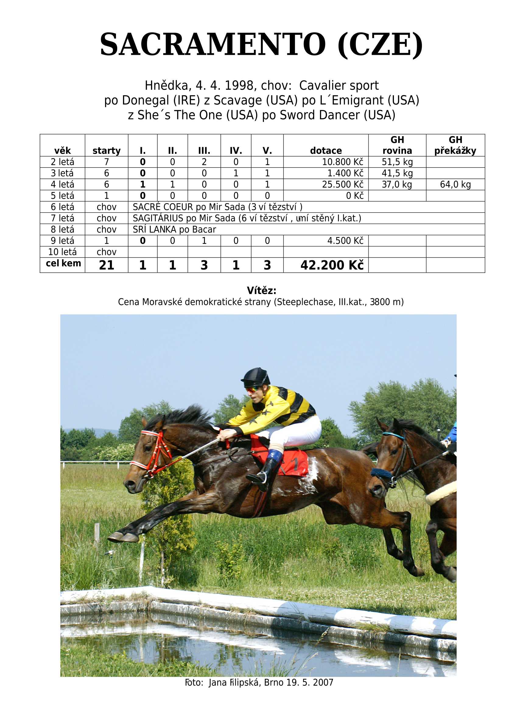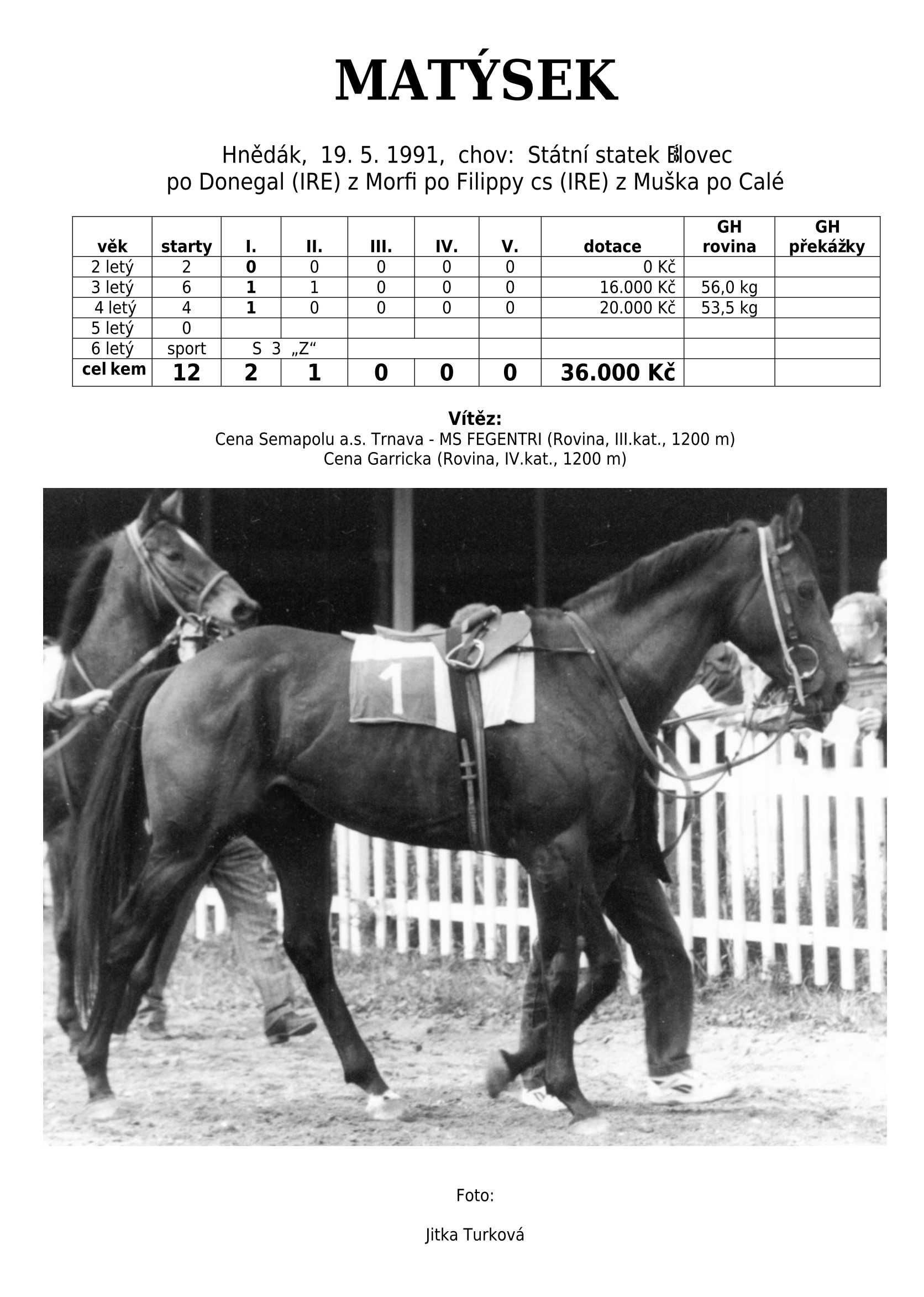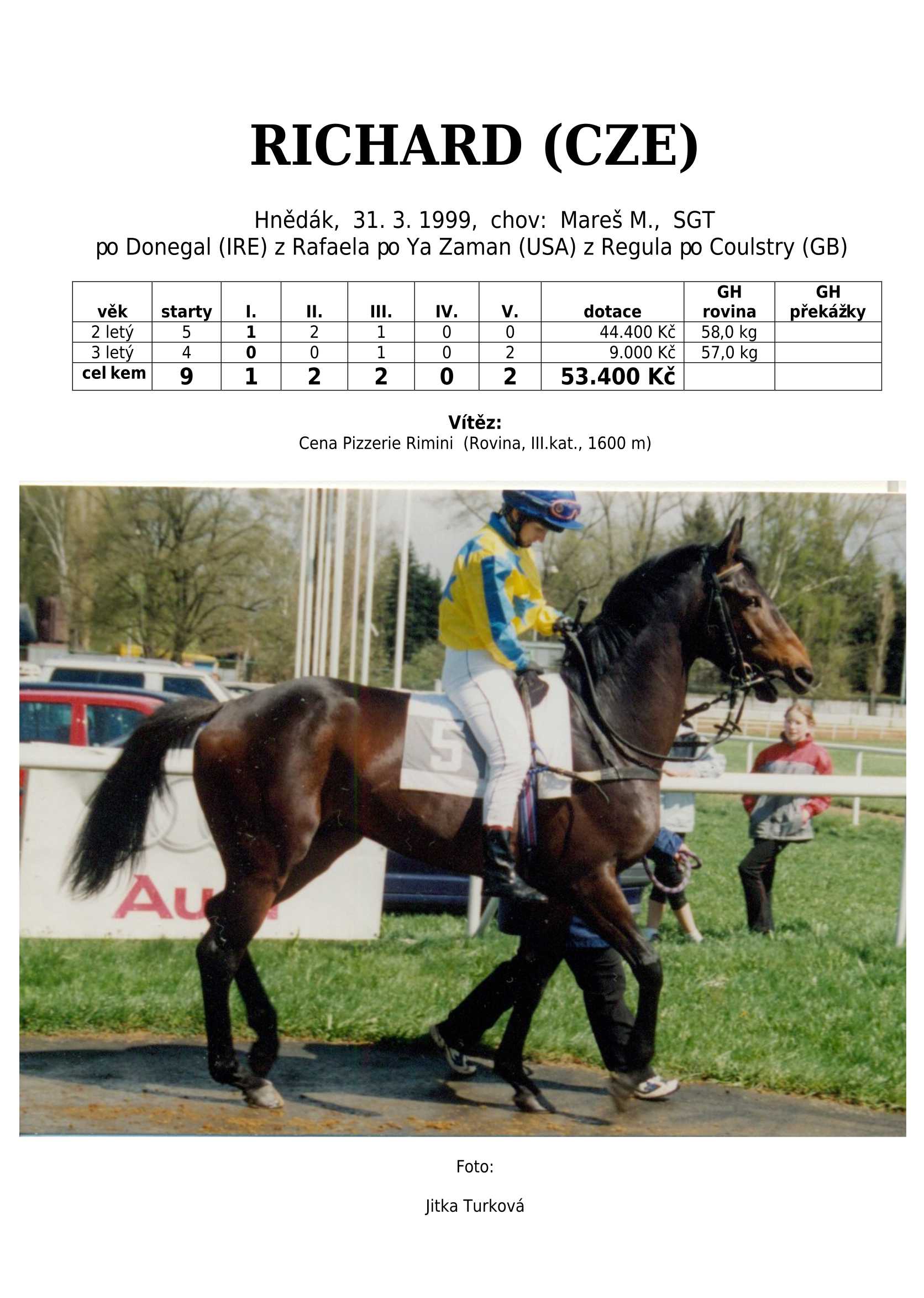HARD FIGHTER (CZE) po Tiger Cafe je českým odchovancem, který do našeho chovu vrací krev japonského super šampiona plemeníků Sunday Silence.