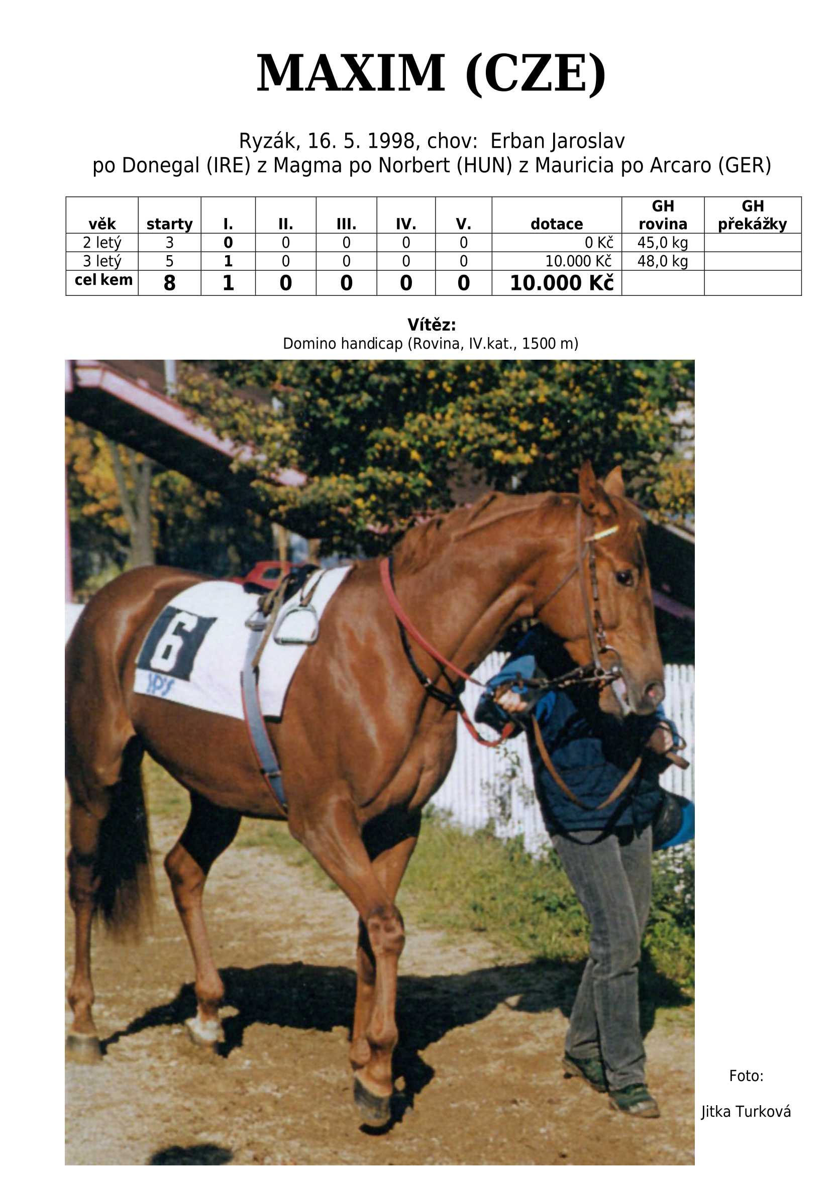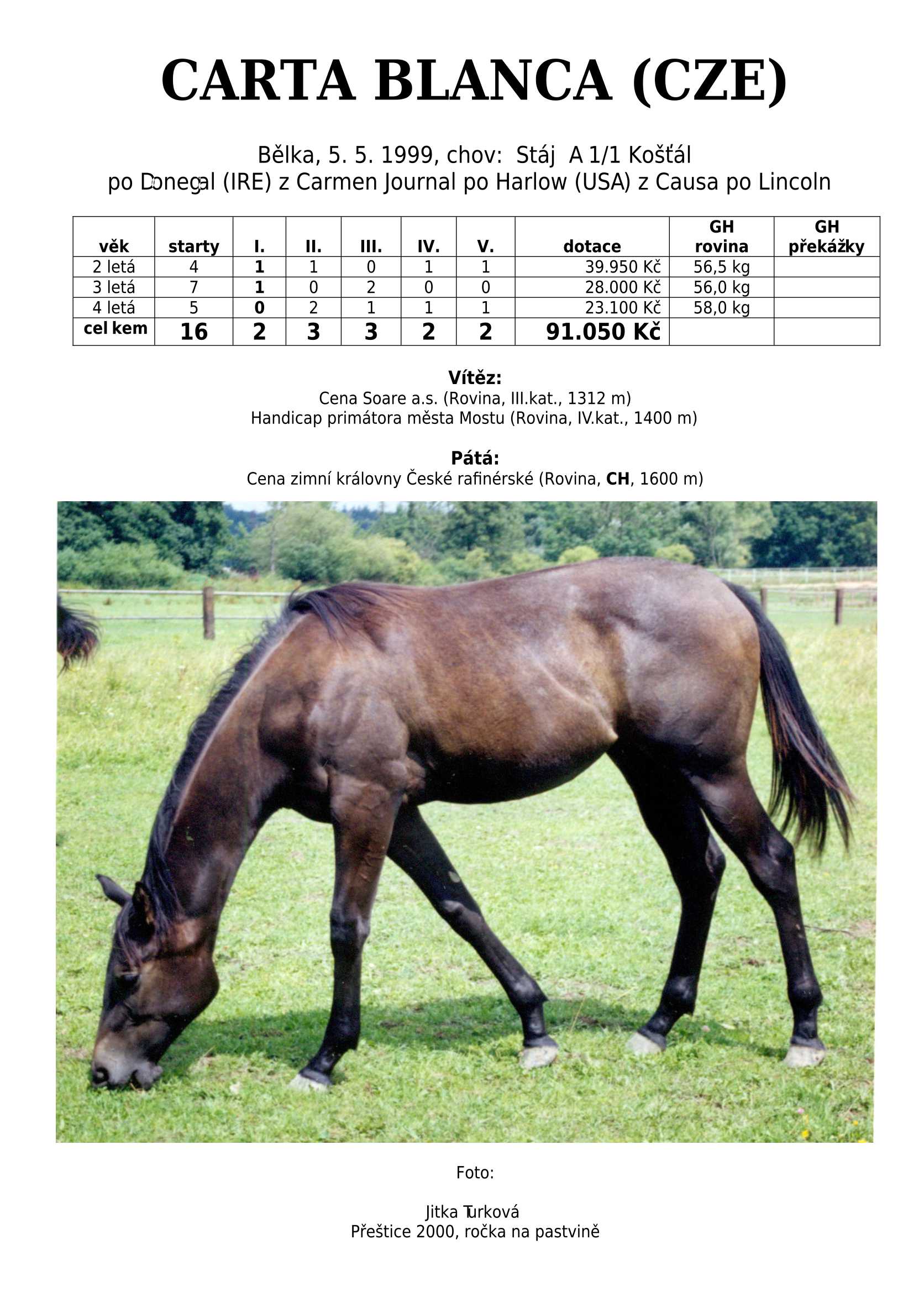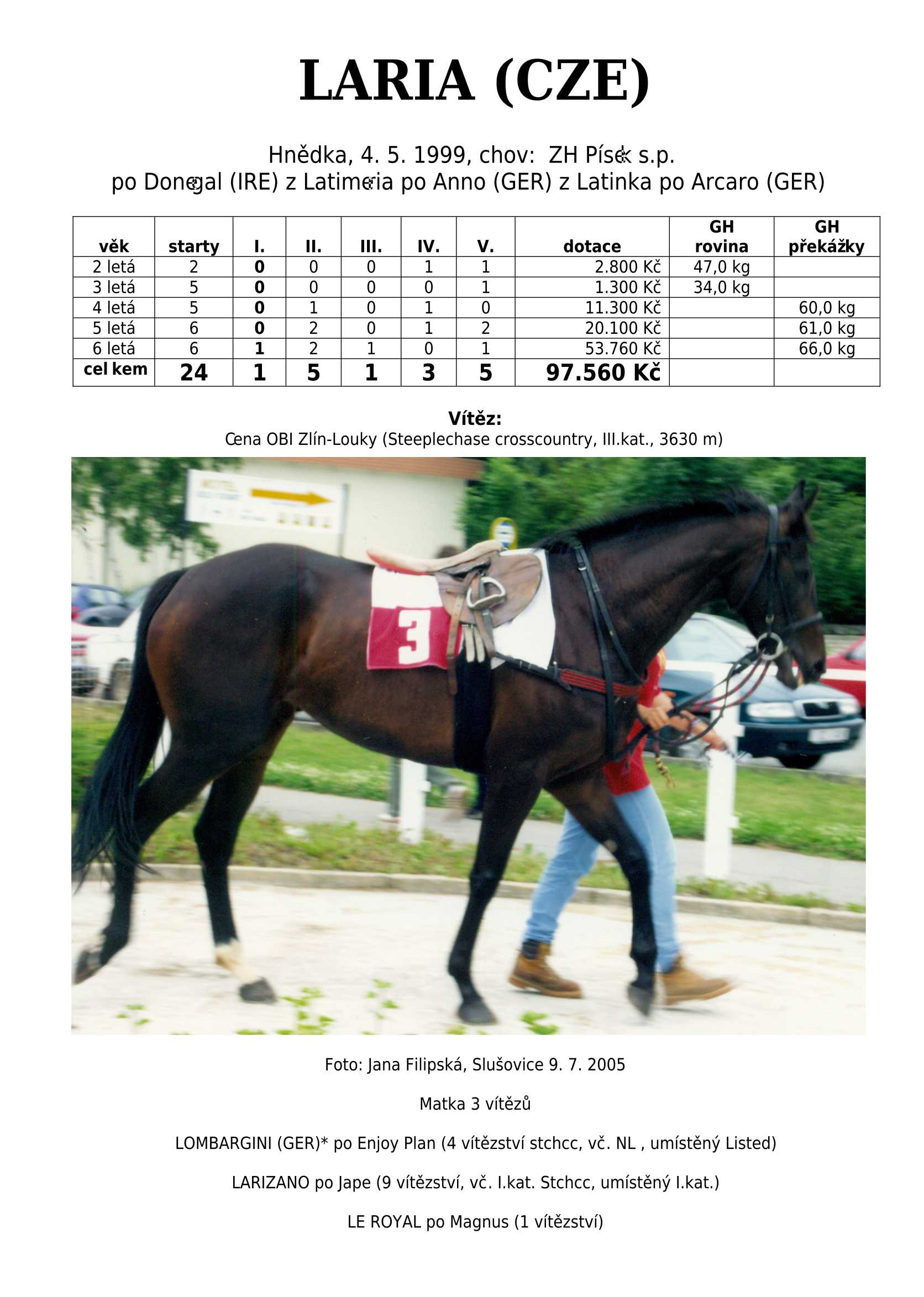 Ke konci dostihové sezóny jsem se pustila do aktualizace výsledků vítězných potomků. Každý plemeník bude mít své potomky na hlavní stránce, bez dalšího vyhledávání a klikání. Vše bude přehlednější, ale aktualizace bude z časových důvodů postupná. Přidáváni jsou potomci s ukončenou dostihovou kariérou.