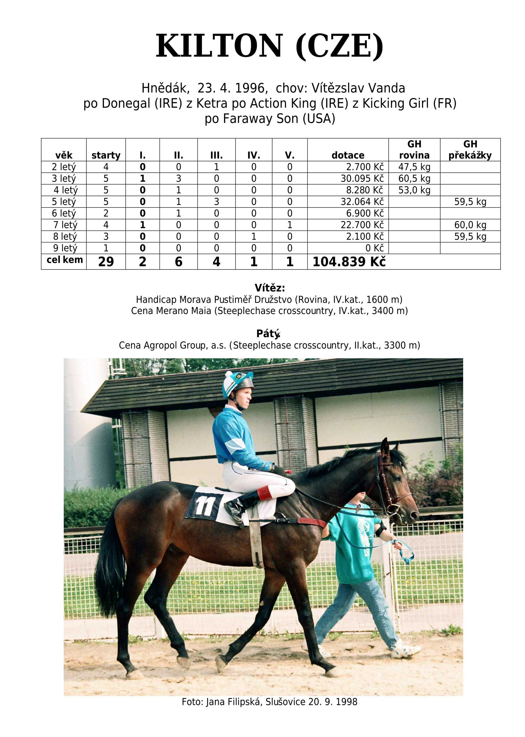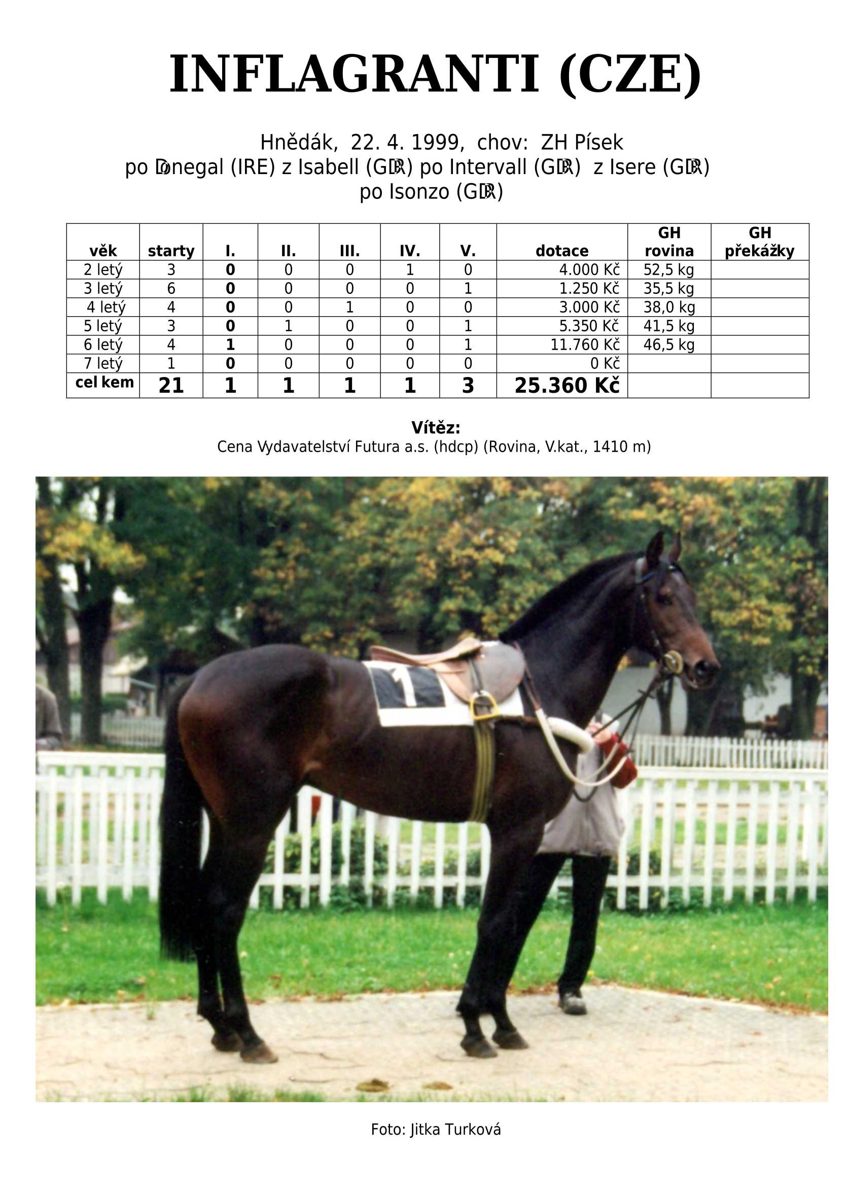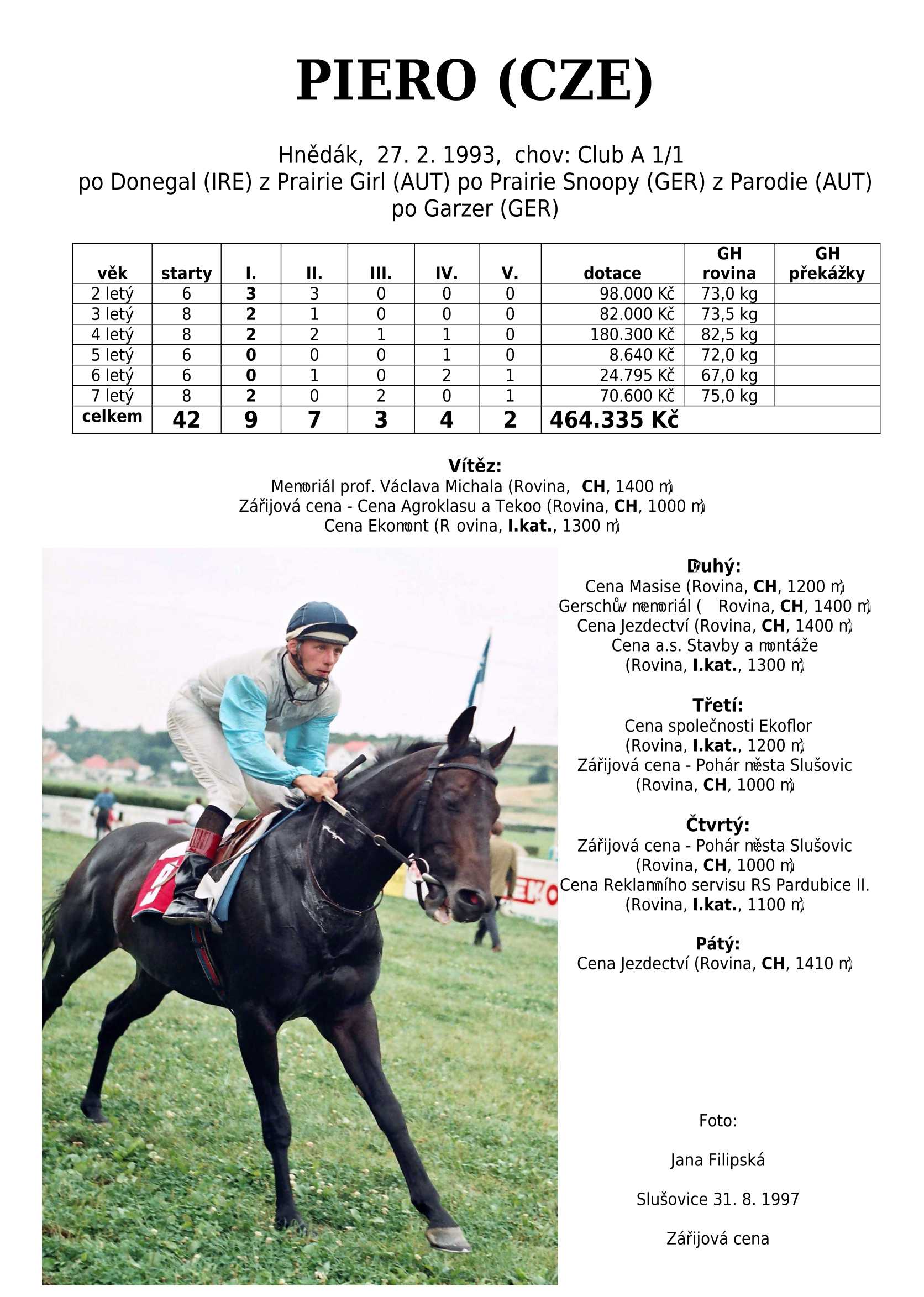 Ke konci dostihové sezóny jsem se pustila do aktualizace výsledků vítězných potomků. Každý plemeník bude mít své potomky na hlavní stránce, bez dalšího vyhledávání a klikání. Vše bude přehlednější, ale aktualizace bude z časových důvodů postupná. Přidáváni jsou potomci s ukončenou dostihovou kariérou.