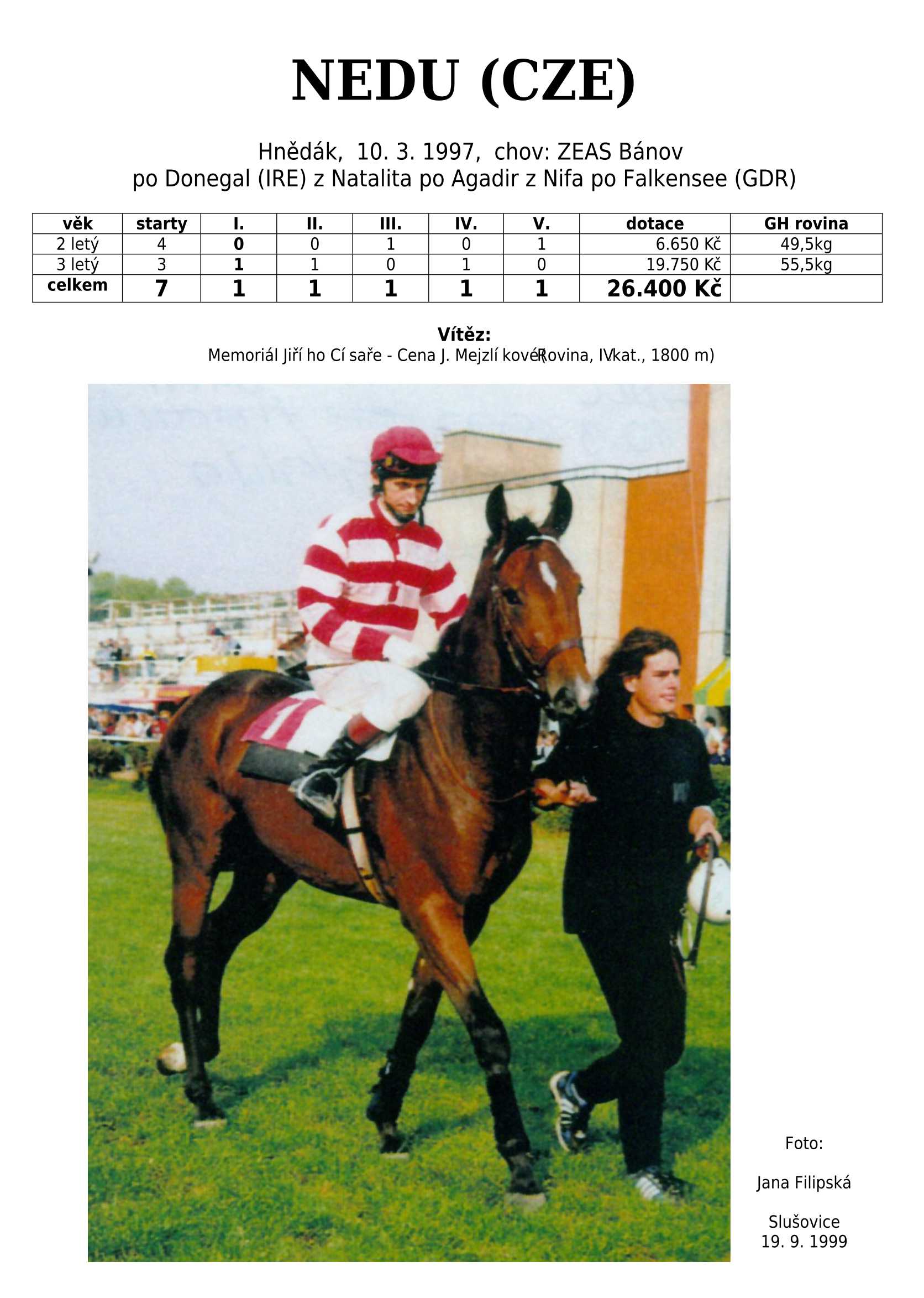 Takový miláček, jako je hrdina Velké pardubické steeplechase, SEXY LORD se u svého otce EGERTON objeví, až bude definitivně v dostihovém důchodu. Za sebe doufám, že se zcela uzdraví ze zranění a opět budeme moci bez dechu sledovat, jak se pere o vítězství. Nejen Sexy Lordovi, ale hlavně celému týmu kolem trénérky Růžičkové držím palce.
