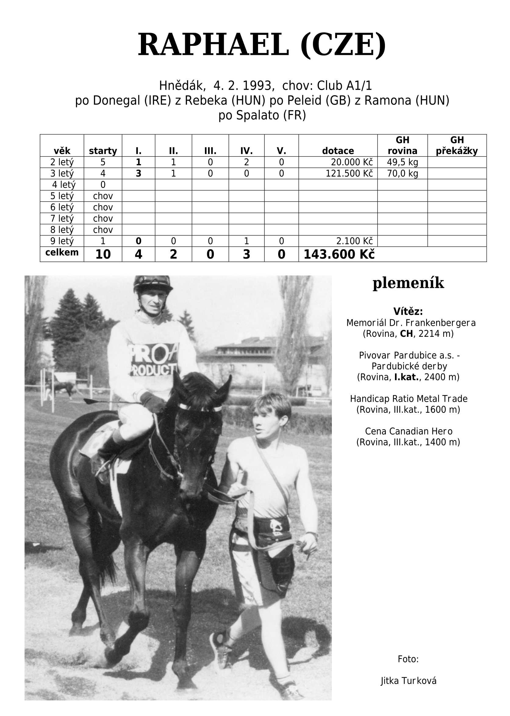 Otec PIERO, BAJKA, RAPHAEL (plemeník), VOLT, ILION aj.