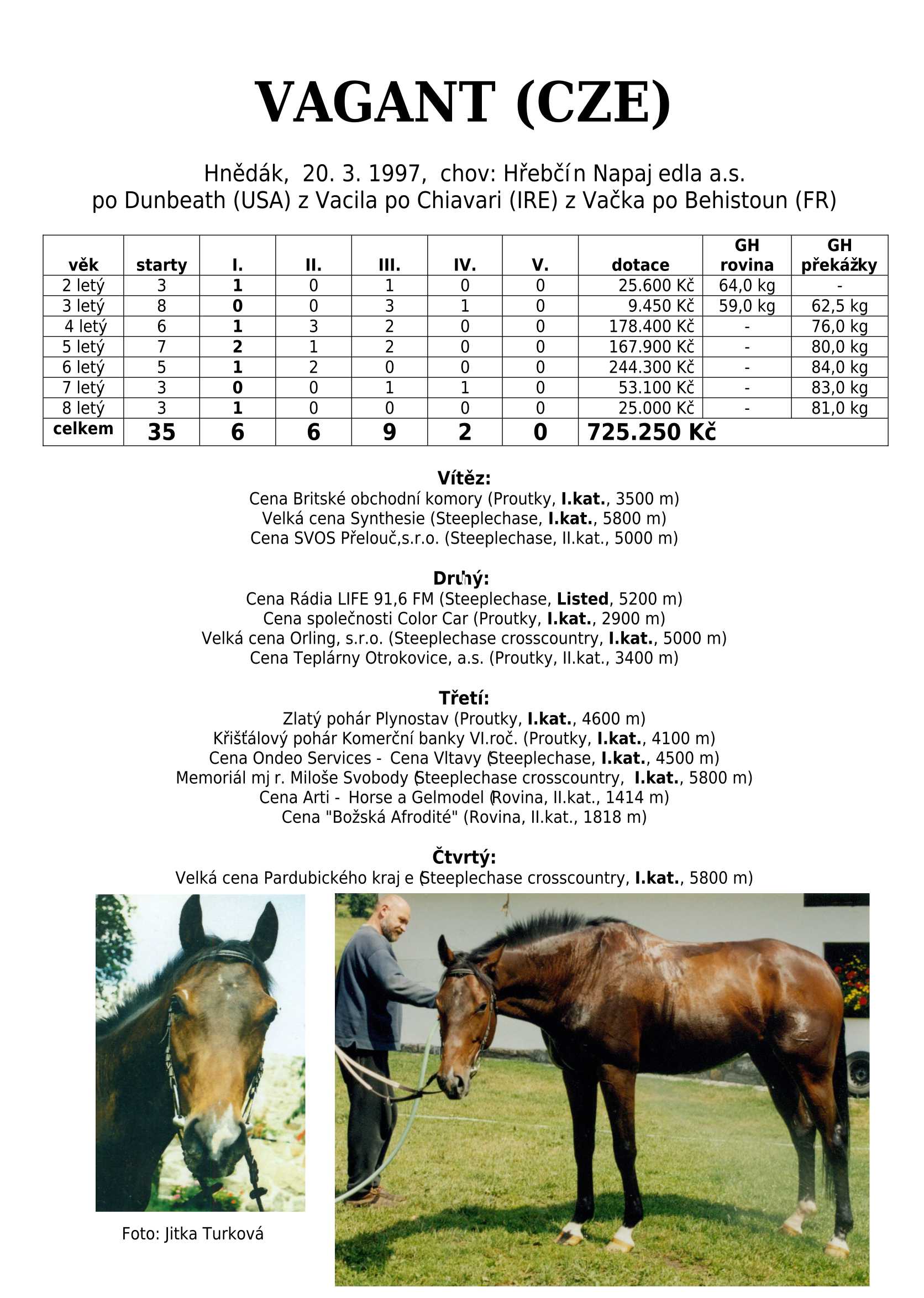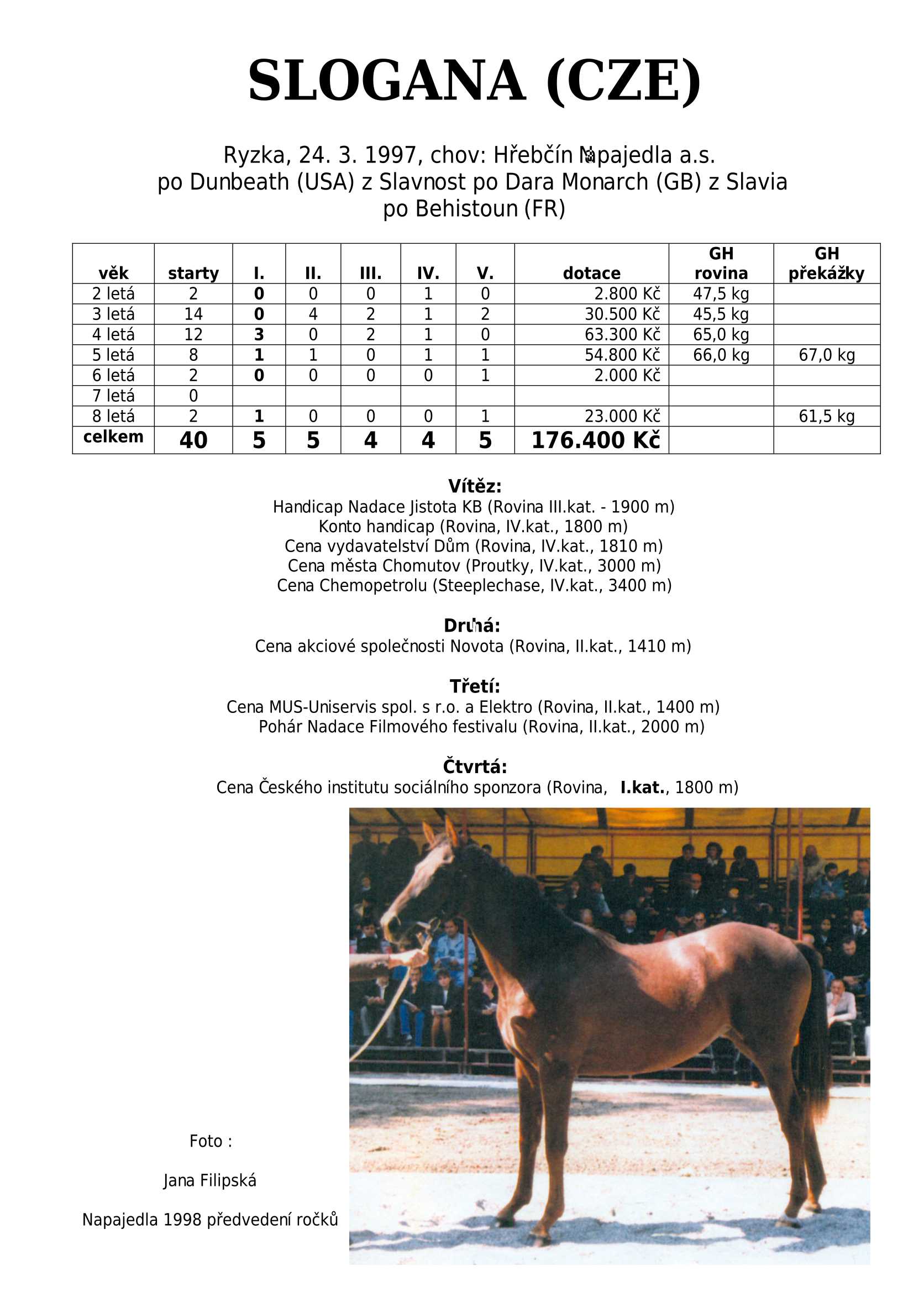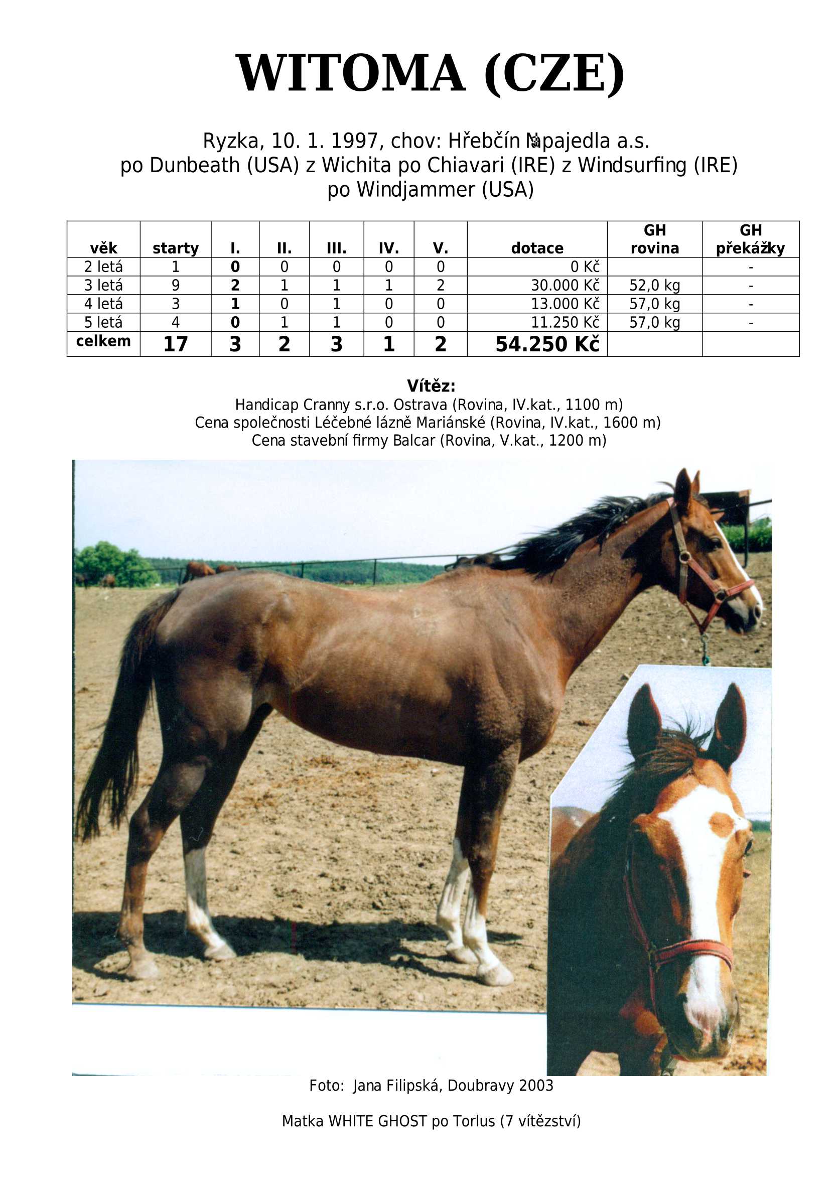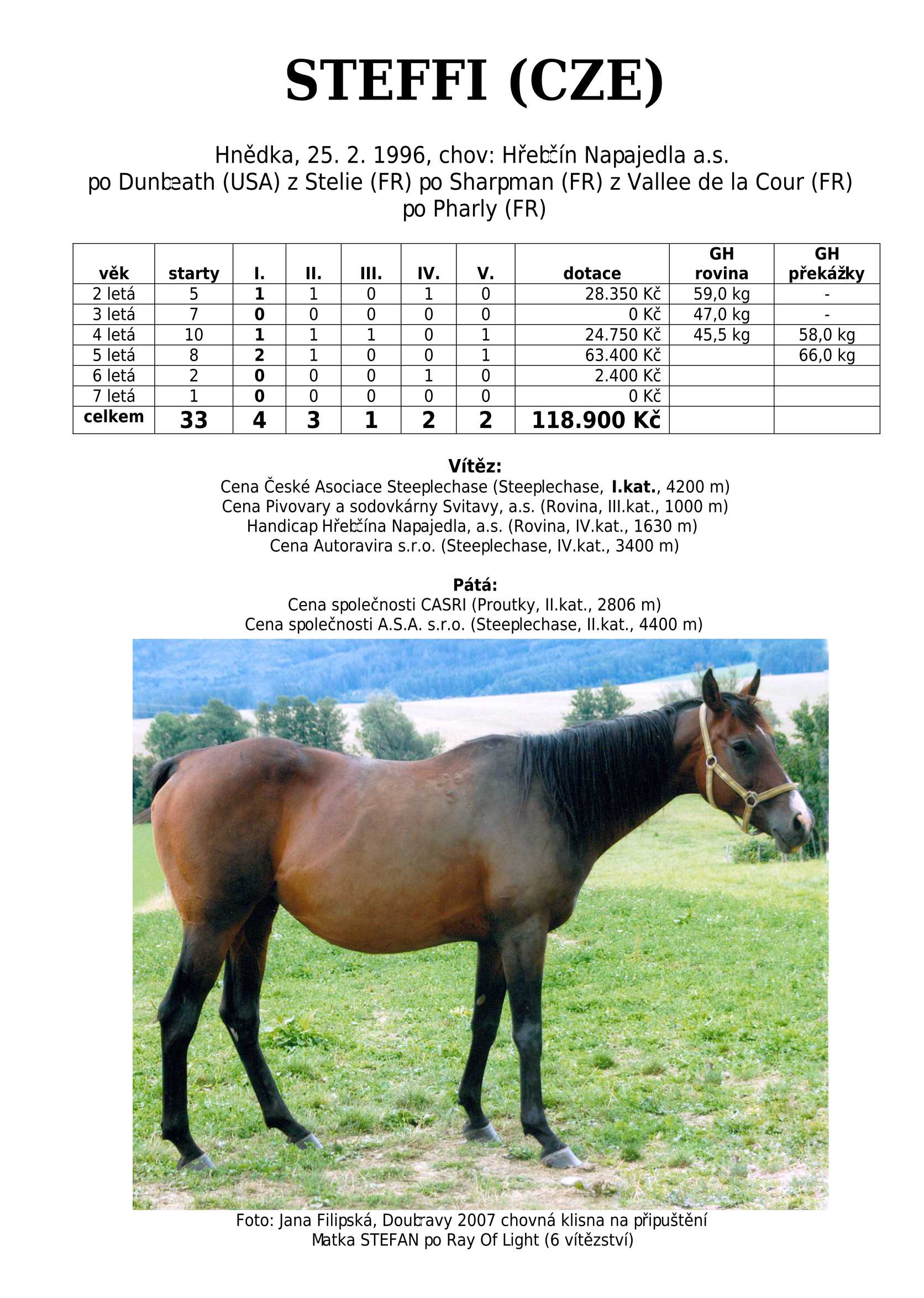 Ke konci dostihové sezóny jsem se pustila do aktualizace výsledků vítězných potomků. Každý plemeník bude mít své potomky na hlavní stránce, bez dalšího vyhledávání a klikání. Vše bude přehlednější, ale aktualizace bude z časových důvodů postupná. Přidáváni jsou potomci s ukončenou dostihovou kariérou.