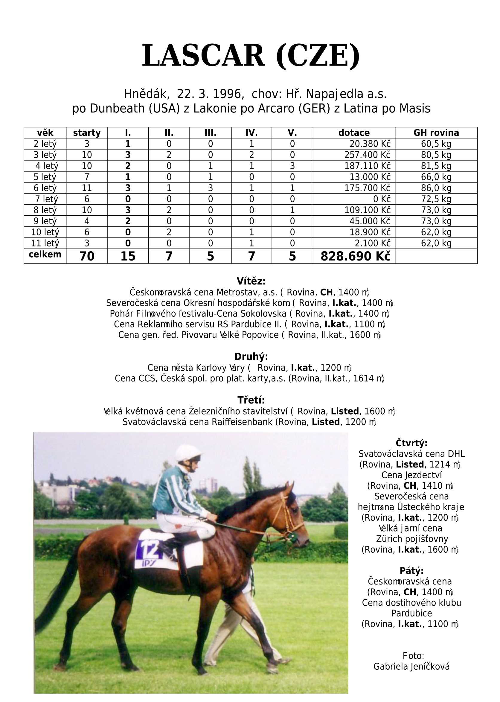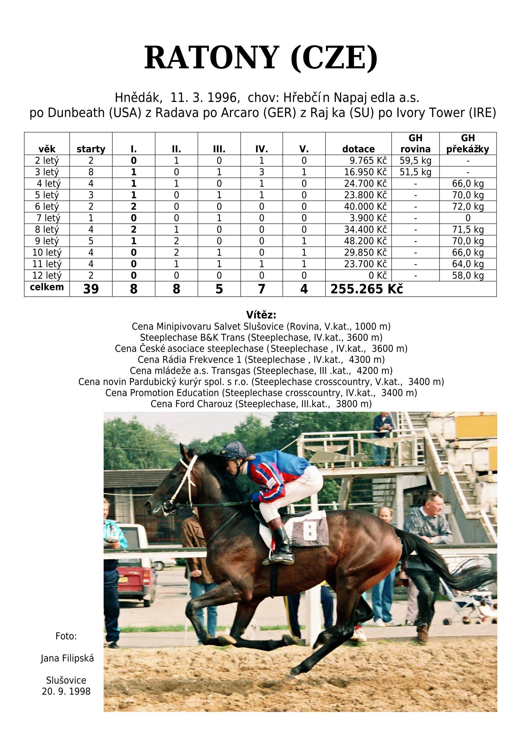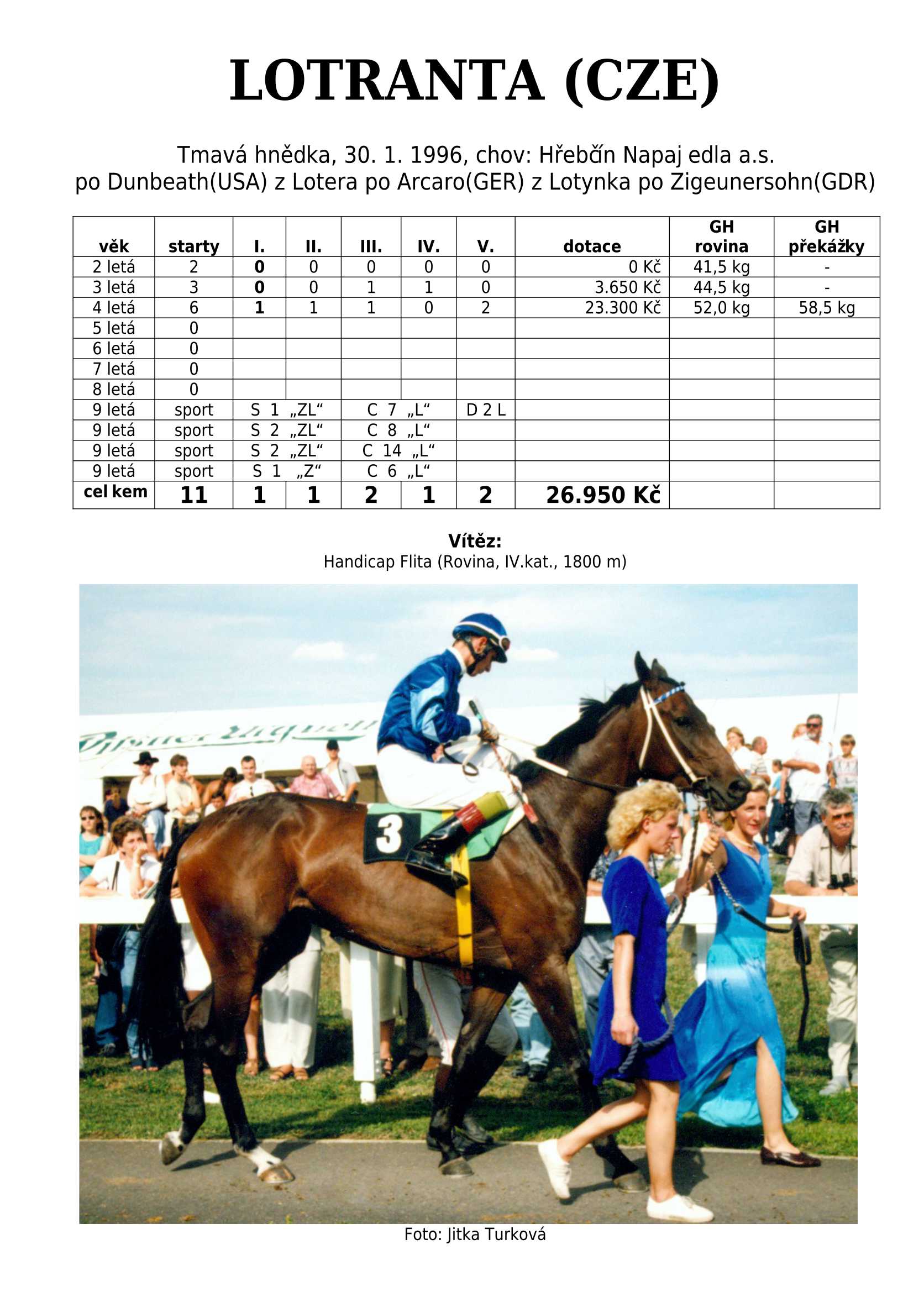Ke konci dostihové sezóny jsem se pustila do aktualizace výsledků vítězných potomků. Každý plemeník bude mít své potomky na hlavní stránce, bez dalšího vyhledávání a klikání. Vše bude přehlednější, ale aktualizace bude z časových důvodů postupná. Přidáváni jsou potomci s ukončenou dostihovou kariérou.