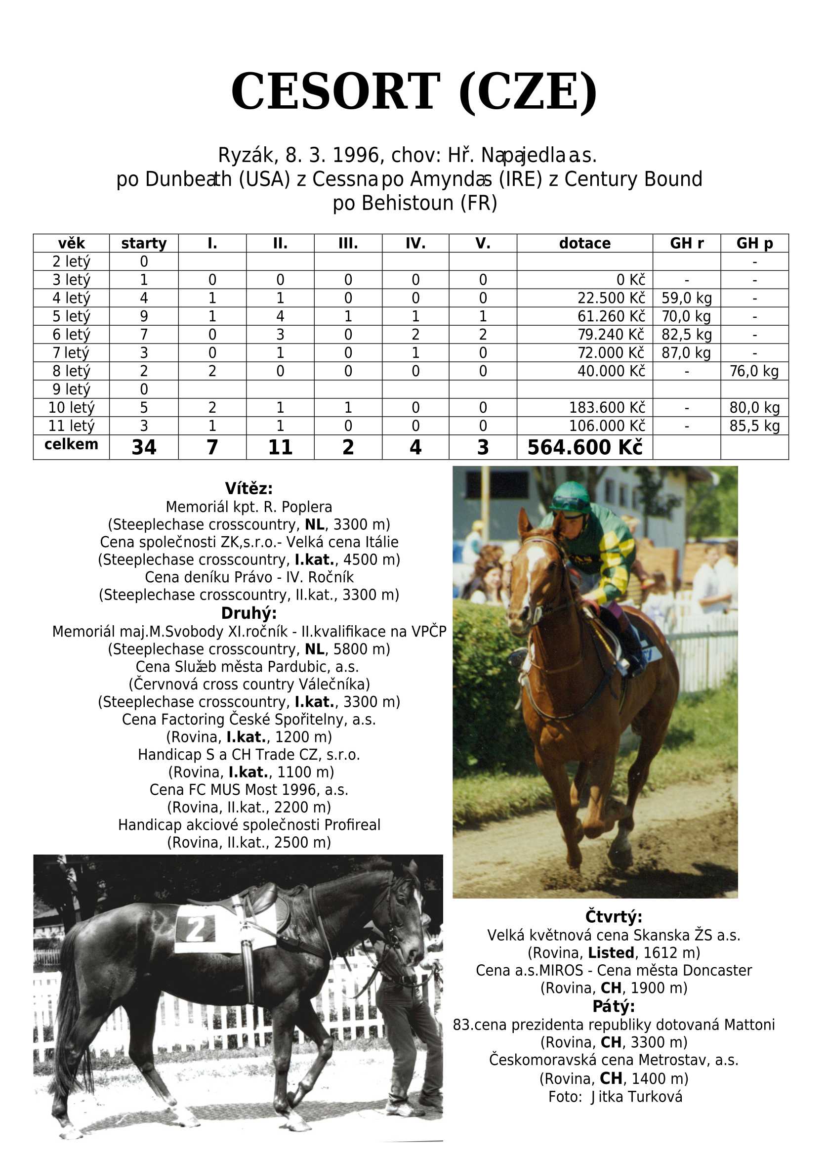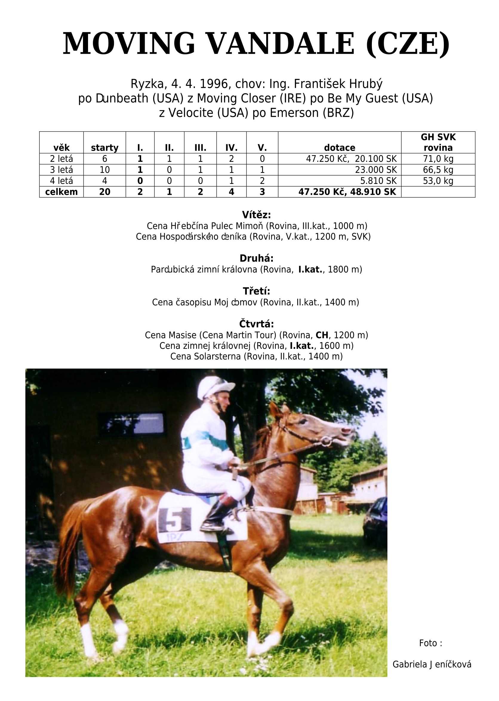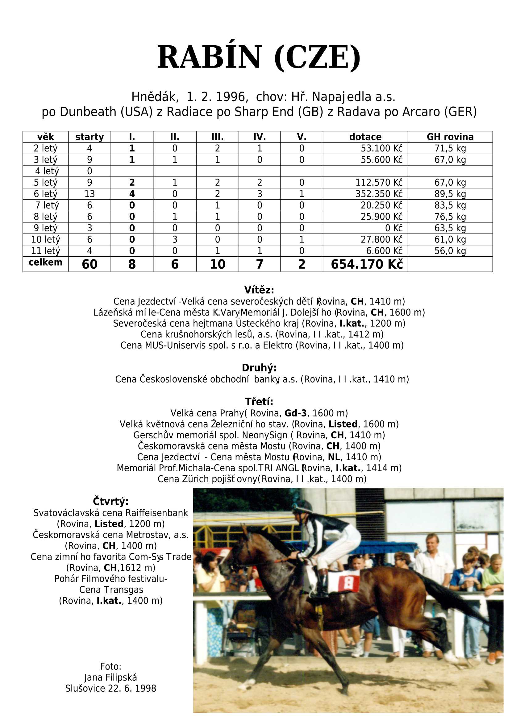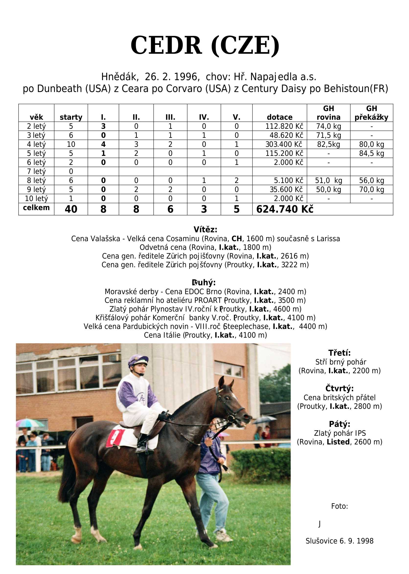 Ke konci dostihové sezóny jsem se pustila do aktualizace výsledků vítězných potomků. Každý plemeník bude mít své potomky na hlavní stránce, bez dalšího vyhledávání a klikání. Vše bude přehlednější, ale aktualizace bude z časových důvodů postupná. Přidáváni jsou potomci s ukončenou dostihovou kariérou.