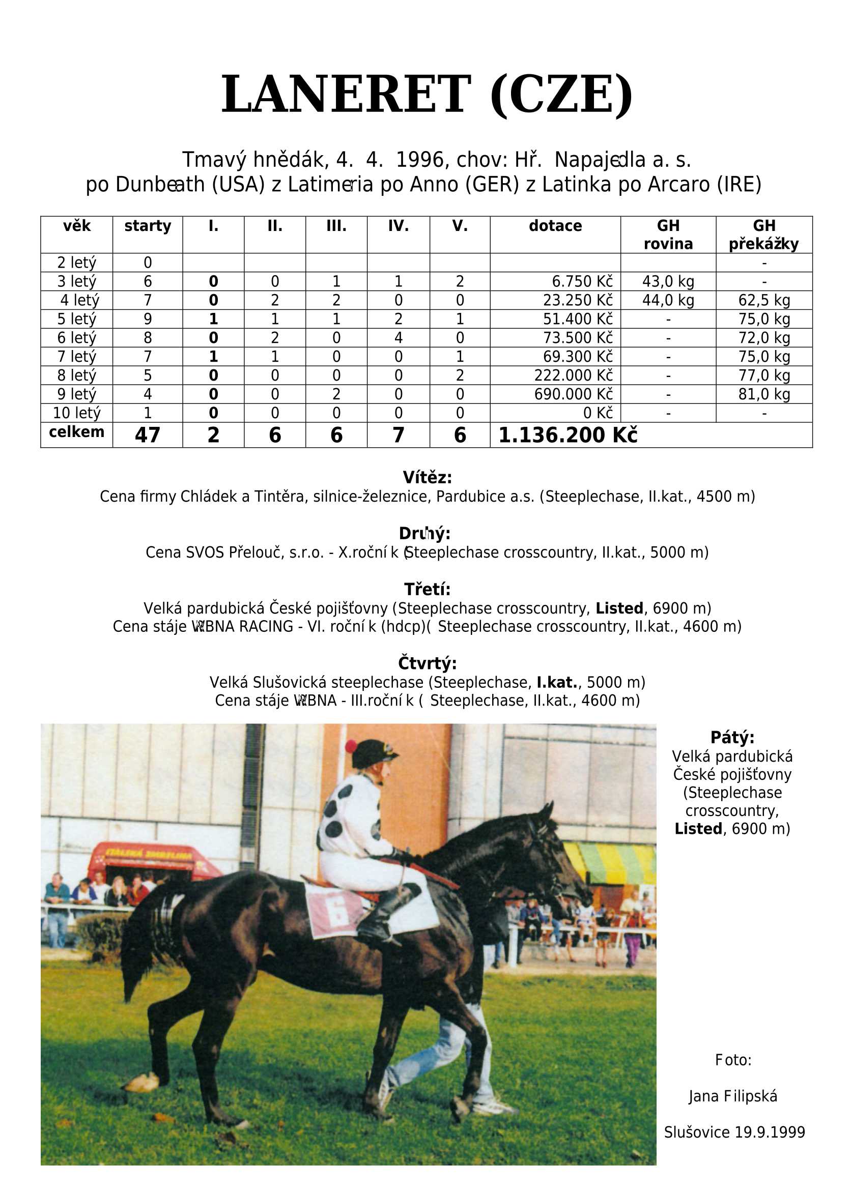Neděle 9.10. patřila největšímu dostihovému svátku u nás, či-li 132.Velké pardubické steeplechase se Slavia pojišťovnou. Loňský vítěz TALENT (Egerton) sice vítězství neobhájil, ale vybojoval si místo druhé. Což je opět úžasný výsledek. 2.-6. dotované místo uhájili koně českého chovu.