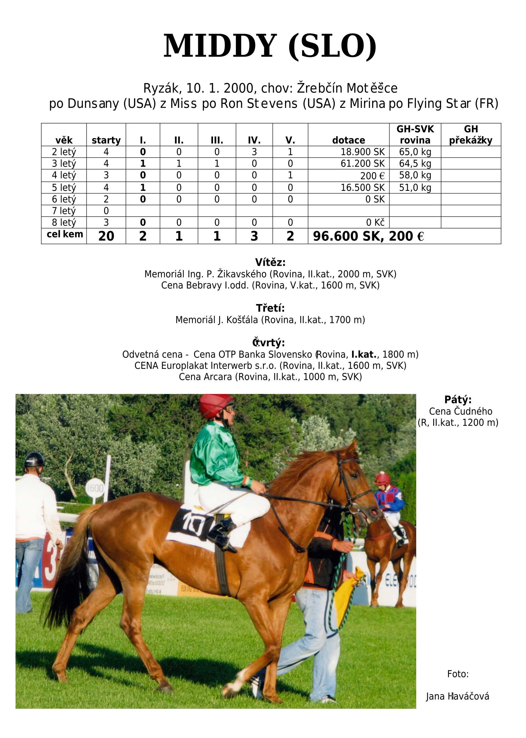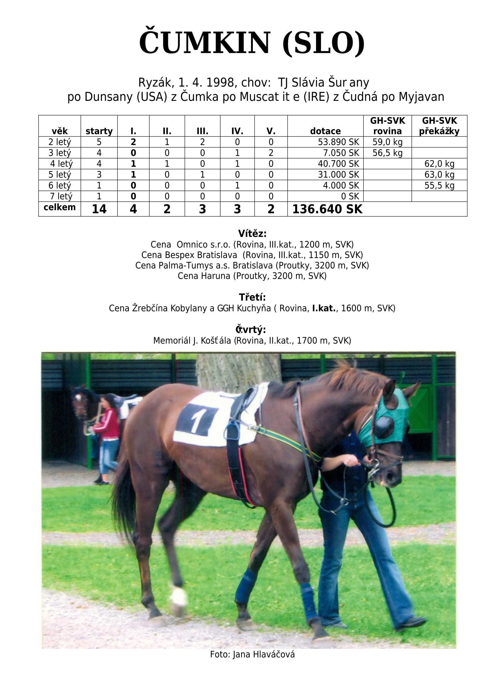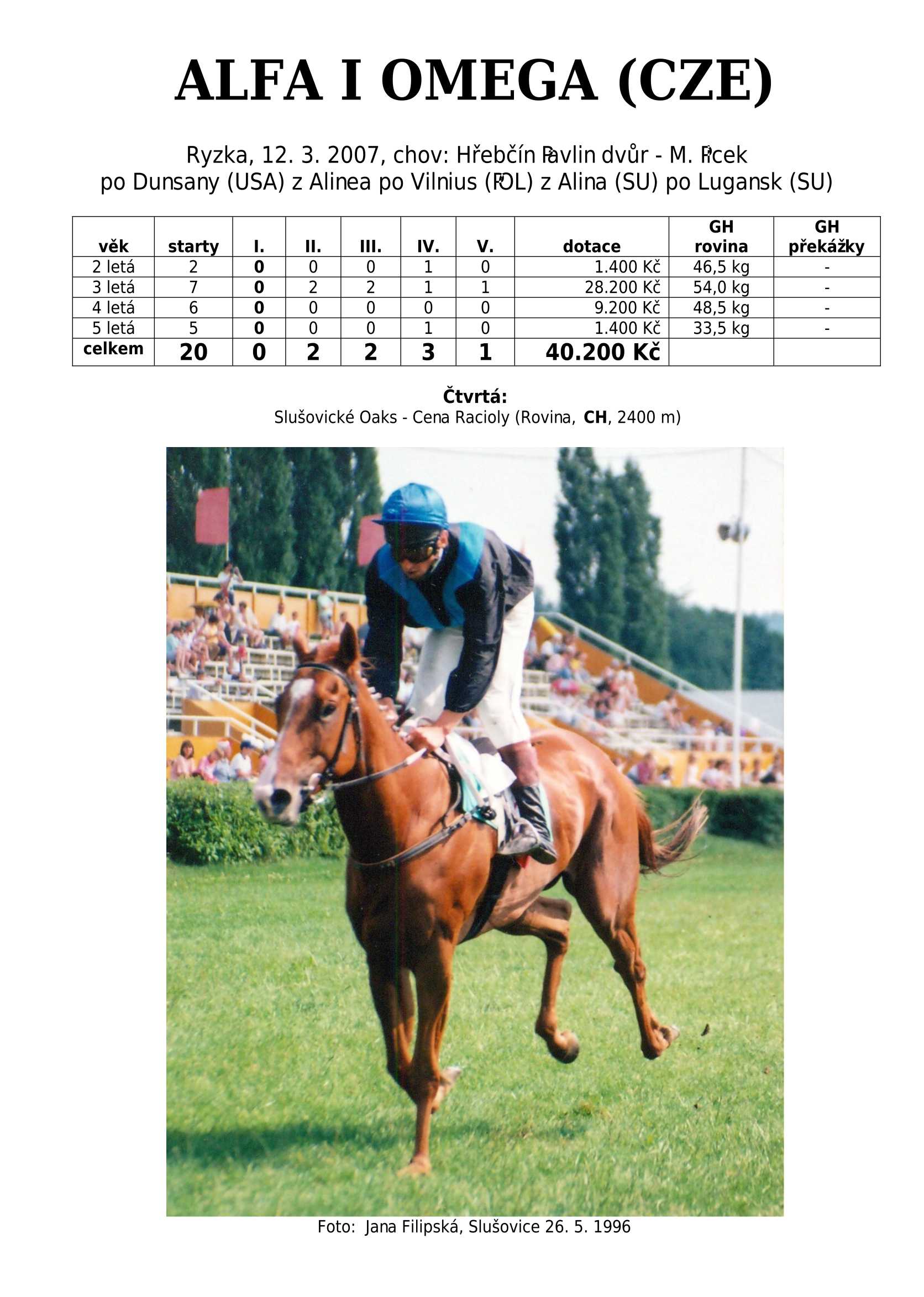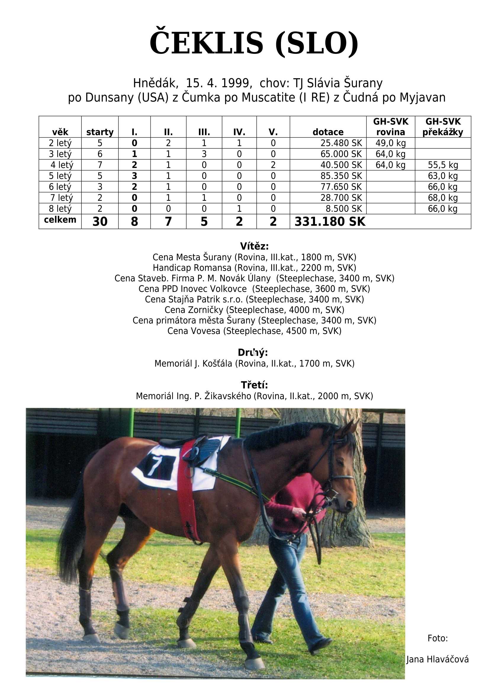 Ke konci dostihové sezóny jsem se pustila do aktualizace výsledků vítězných potomků. Každý plemeník bude mít své potomky na hlavní stránce, bez dalšího vyhledávání a klikání. Vše bude přehlednější, ale aktualizace bude z časových důvodů postupná. Přidáváni jsou potomci s ukončenou dostihovou kariérou.