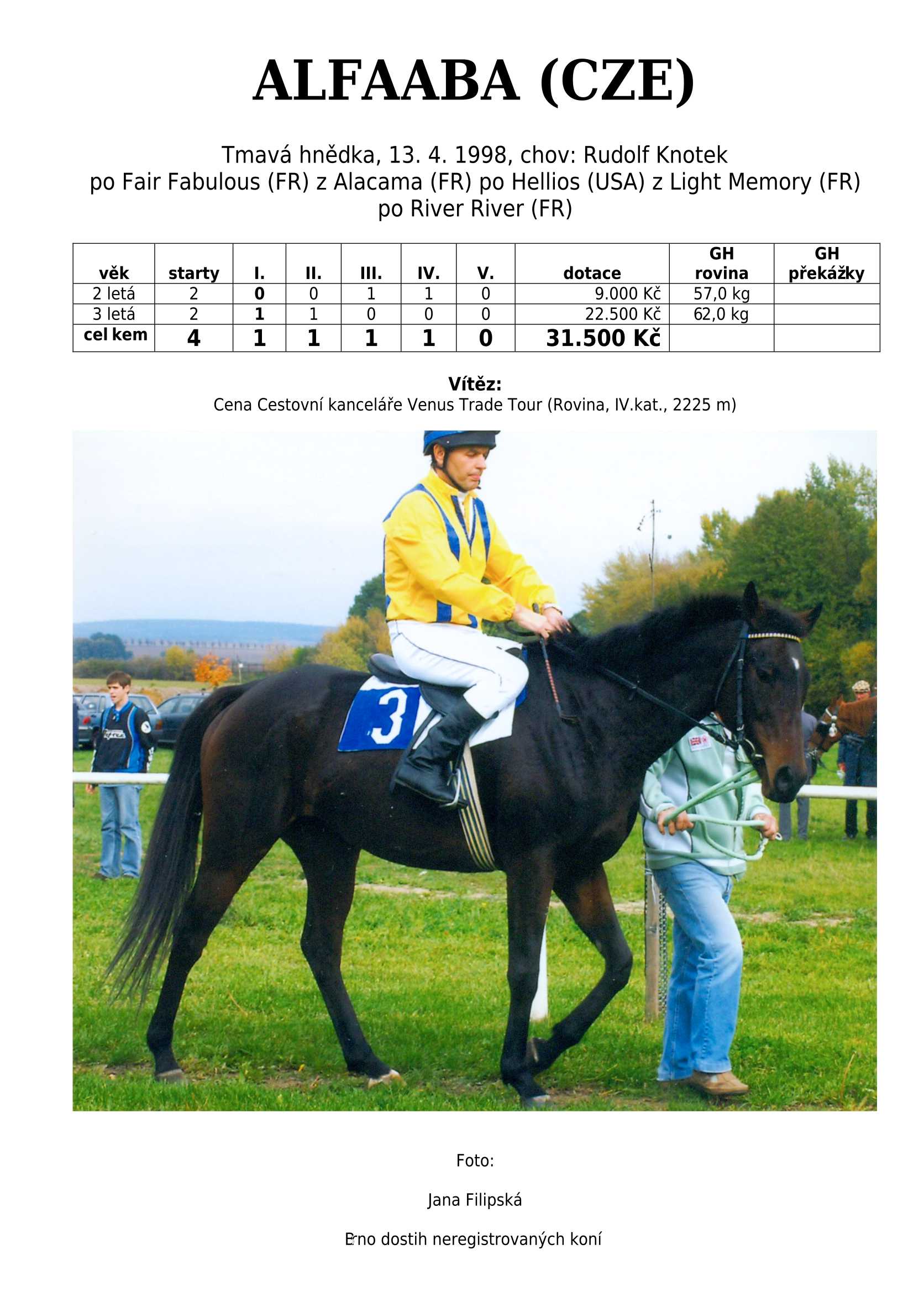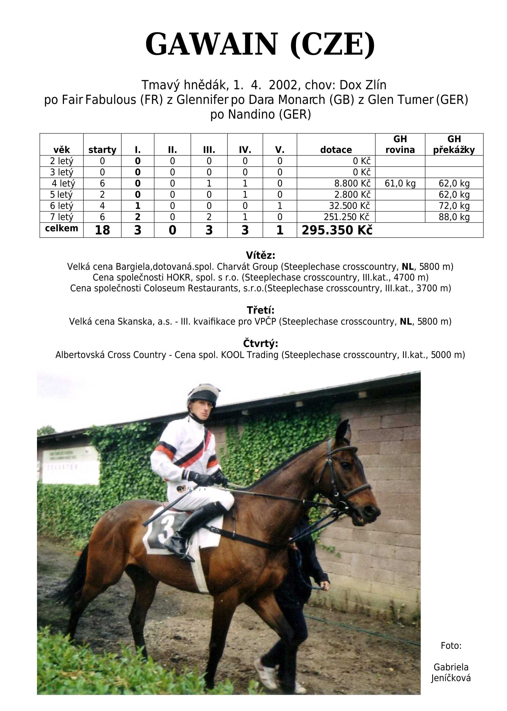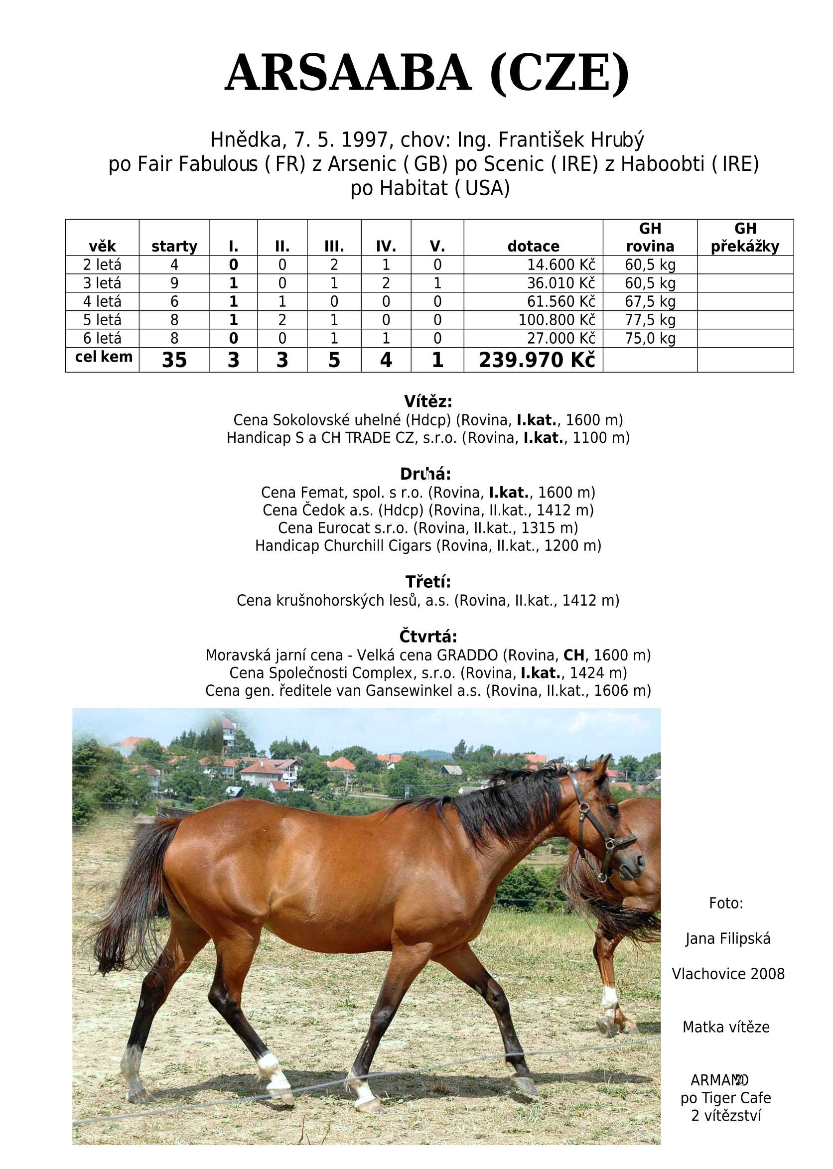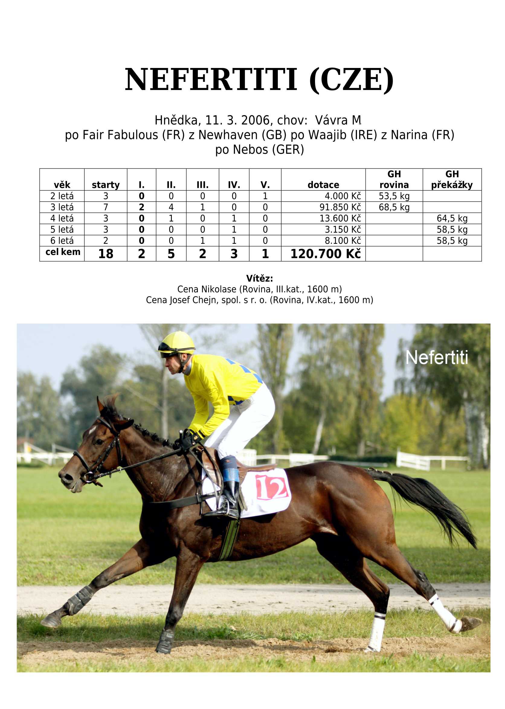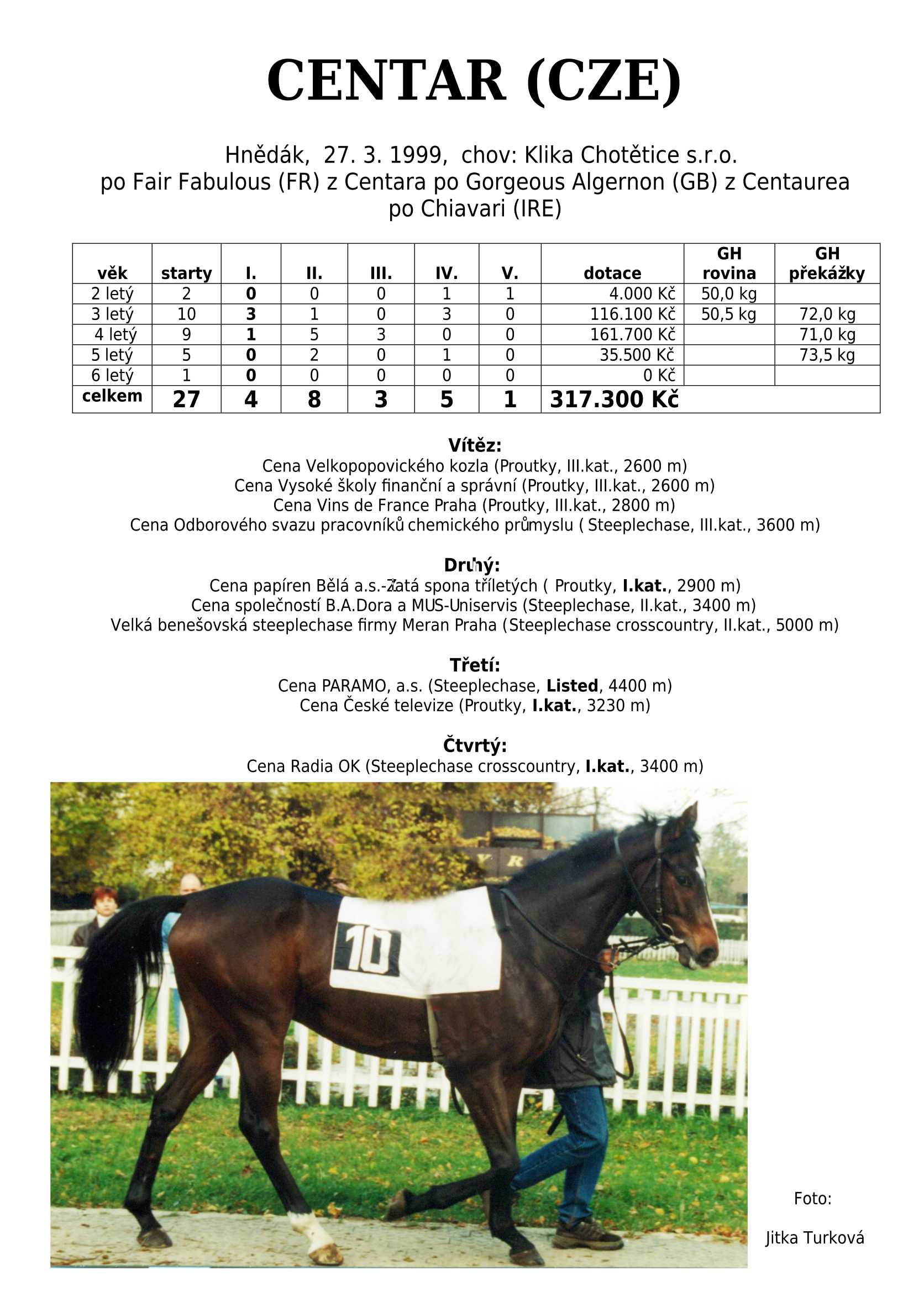 Ke konci dostihové sezóny jsem se pustila do aktualizace výsledků vítězných potomků. Každý plemeník bude mít své potomky na hlavní stránce, bez dalšího vyhledávání a klikání. Vše bude přehlednější, ale aktualizace bude z časových důvodů postupná. Přidáváni jsou potomci s ukončenou dostihovou kariérou.