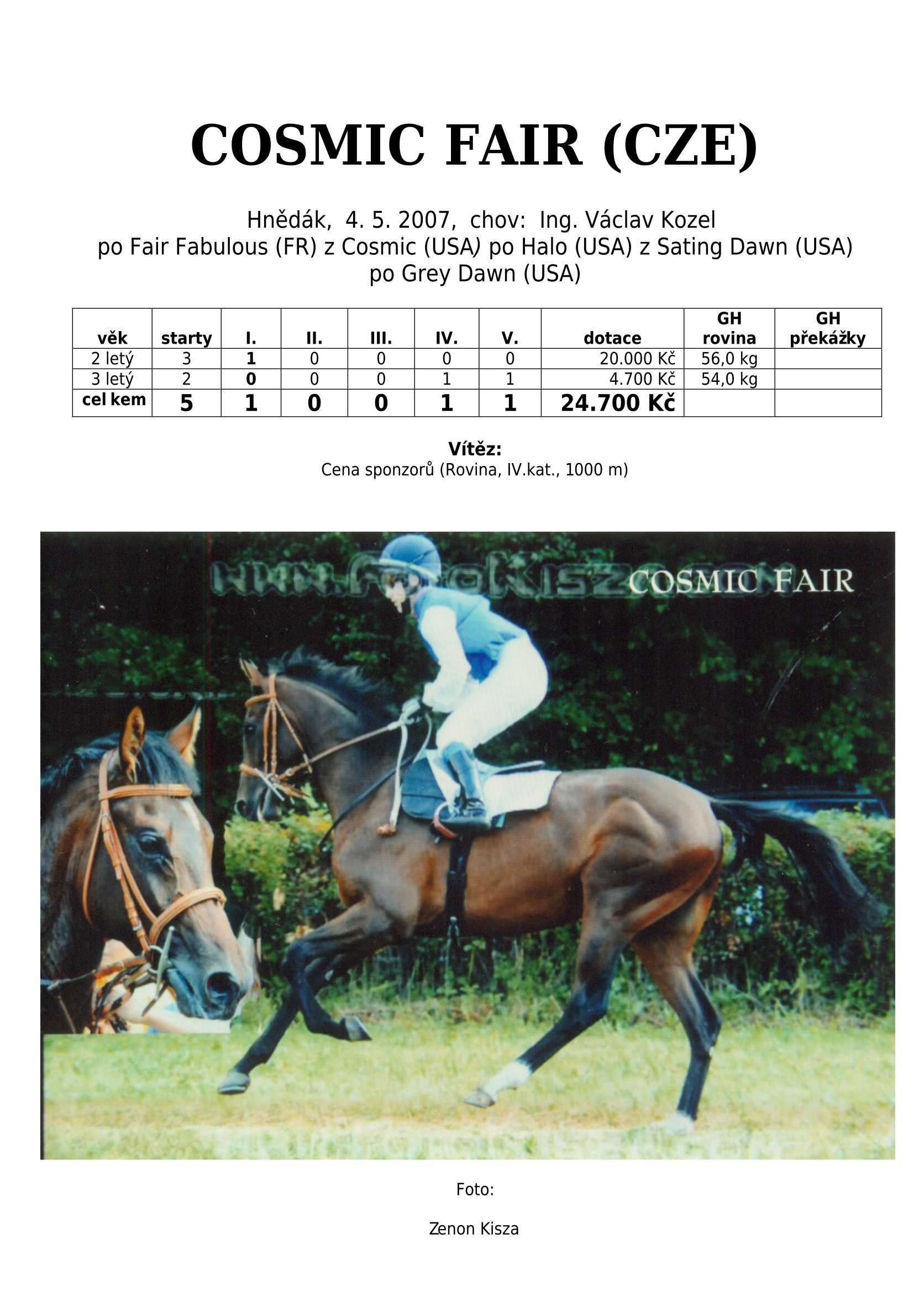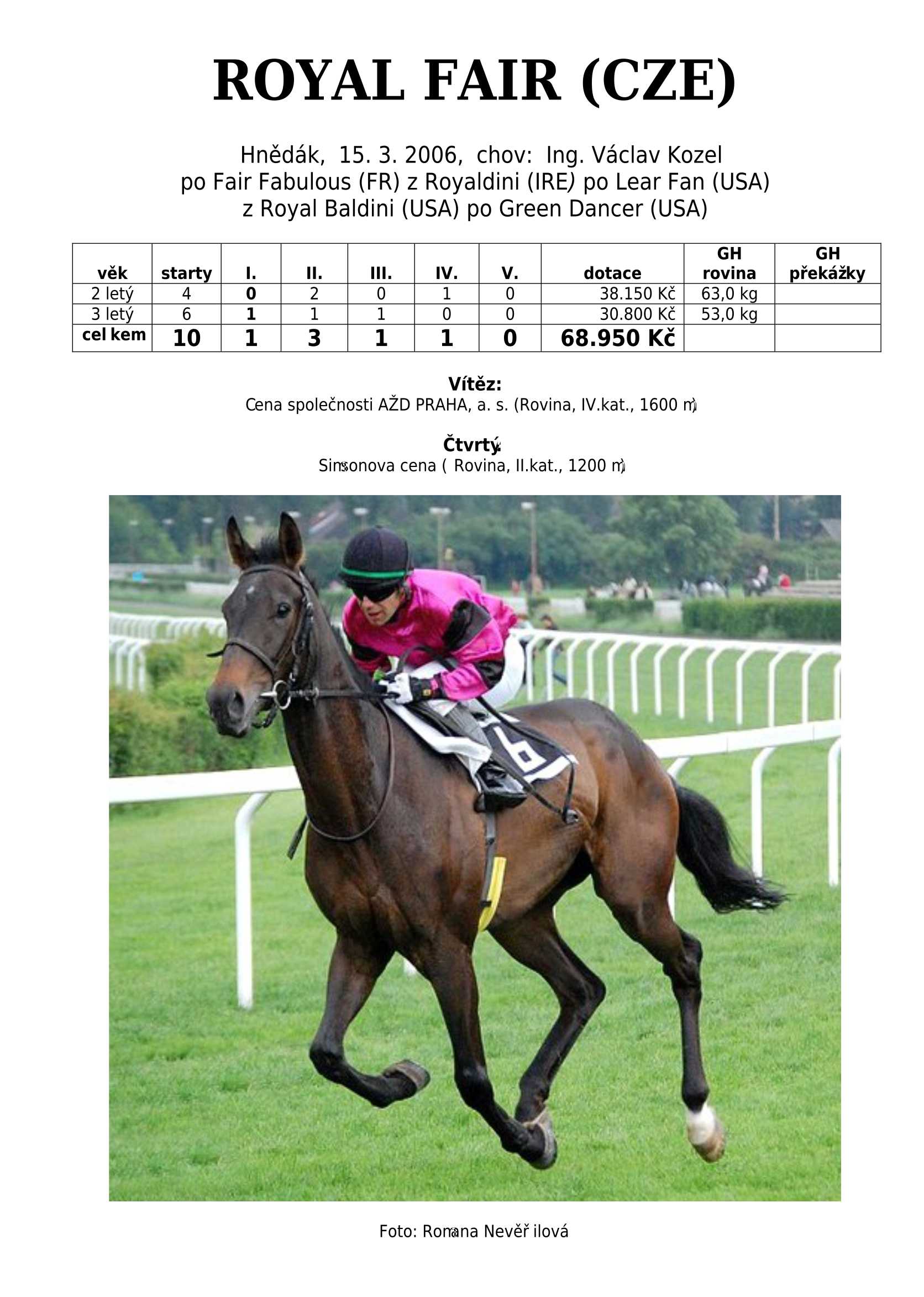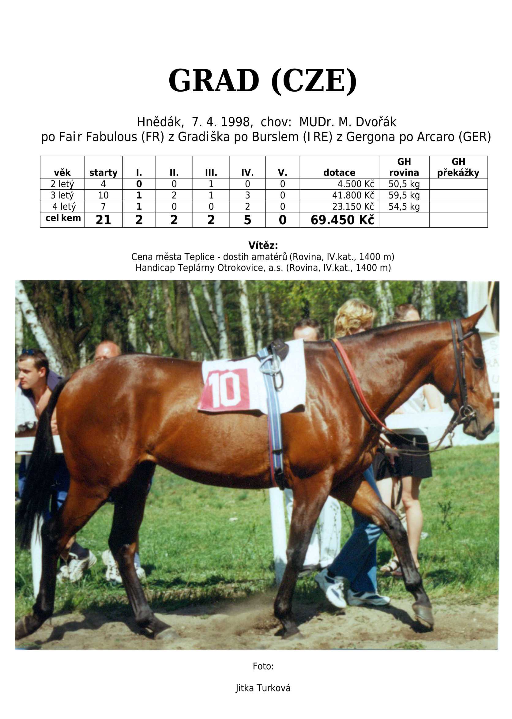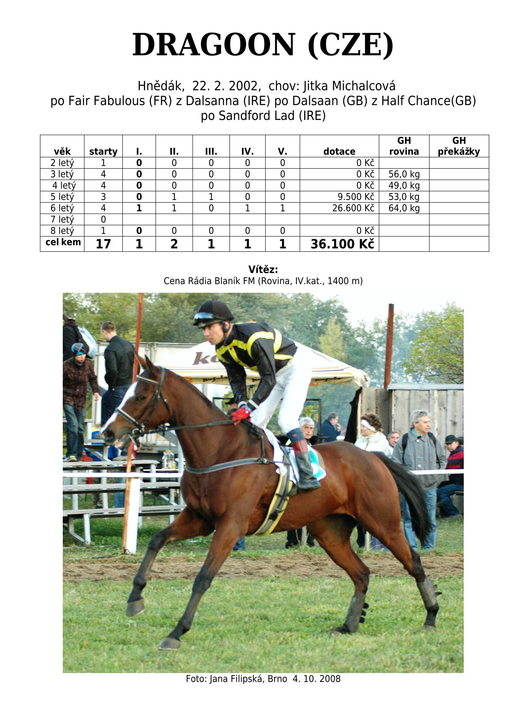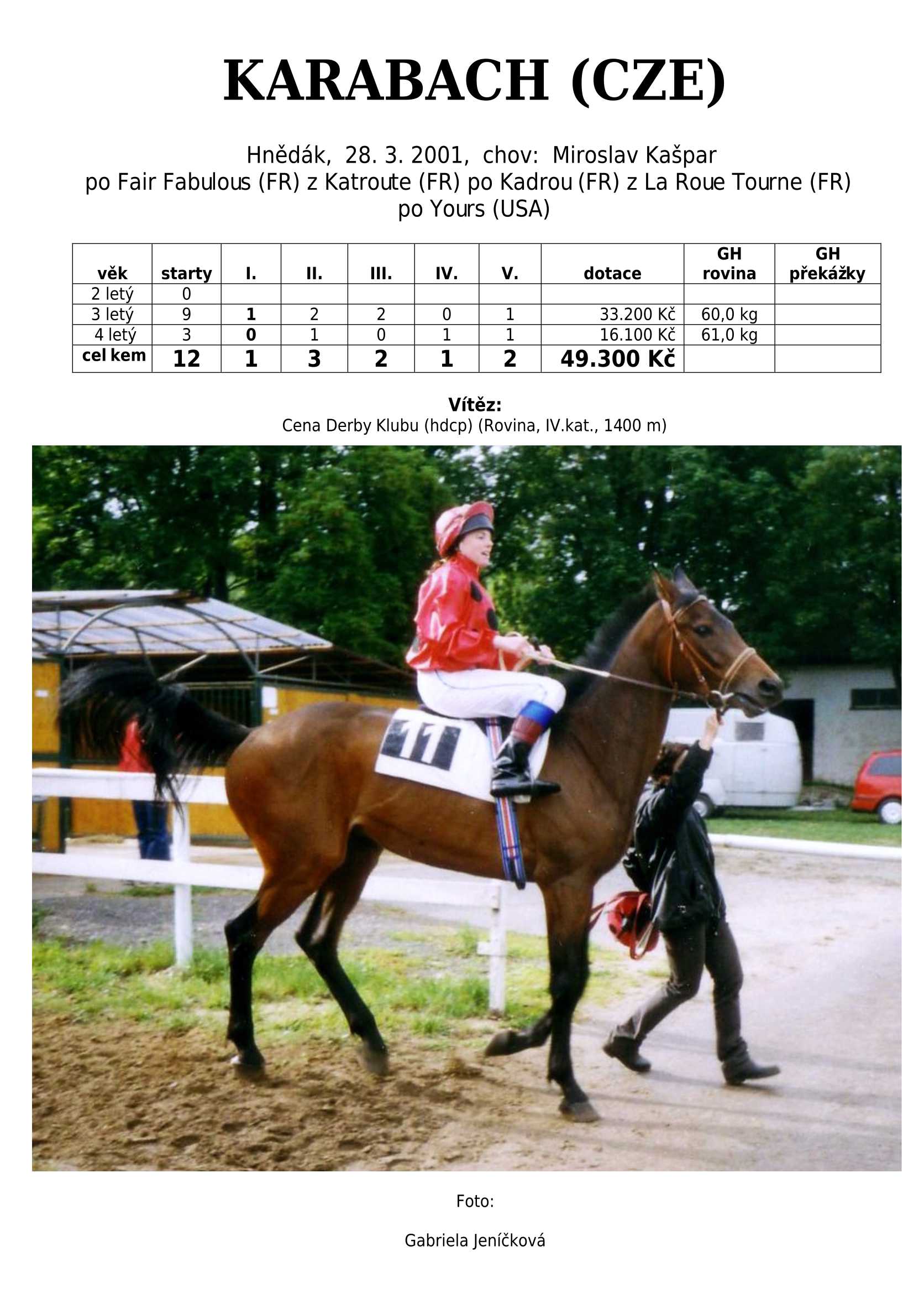 Ke konci dostihové sezóny jsem se pustila do aktualizace výsledků vítězných potomků. Každý plemeník bude mít své potomky na hlavní stránce, bez dalšího vyhledávání a klikání. Vše bude přehlednější, ale aktualizace bude z časových důvodů postupná. Přidáváni jsou potomci s ukončenou dostihovou kariérou.