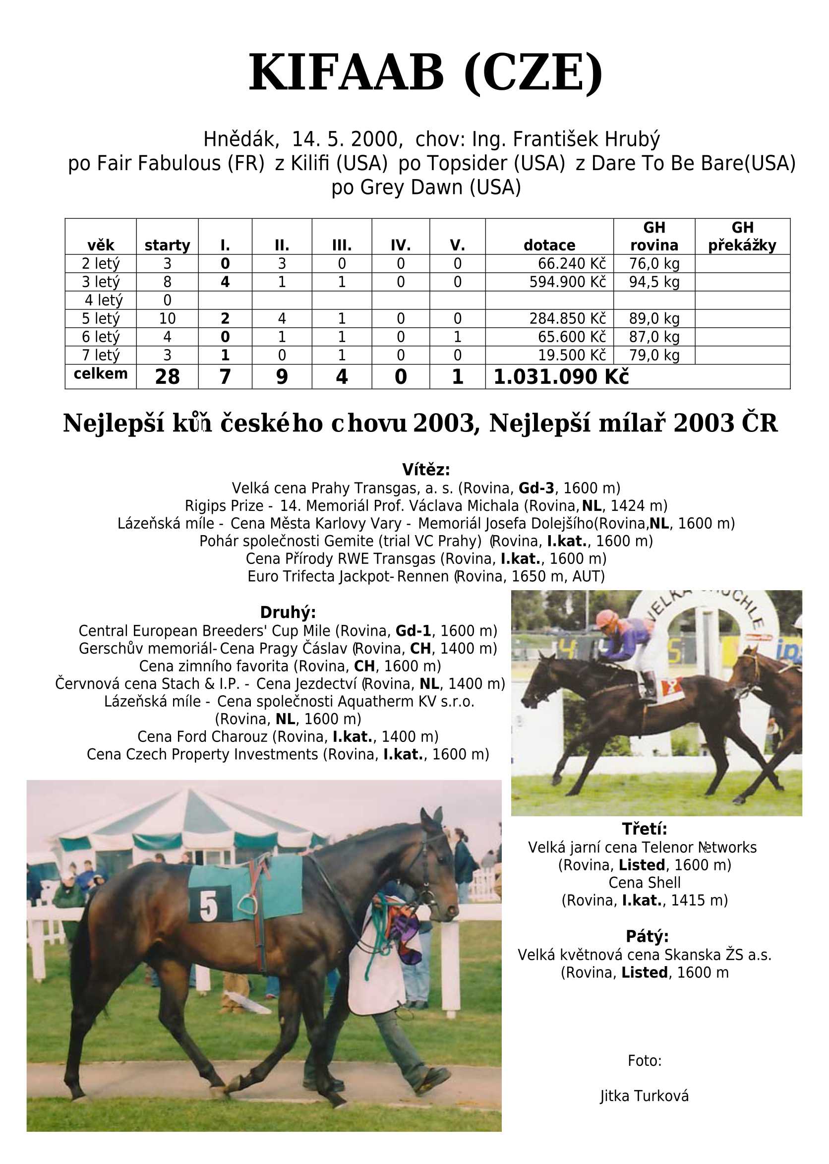 Otec nejlepšího koně českého chovu 2003 KIFAAB.