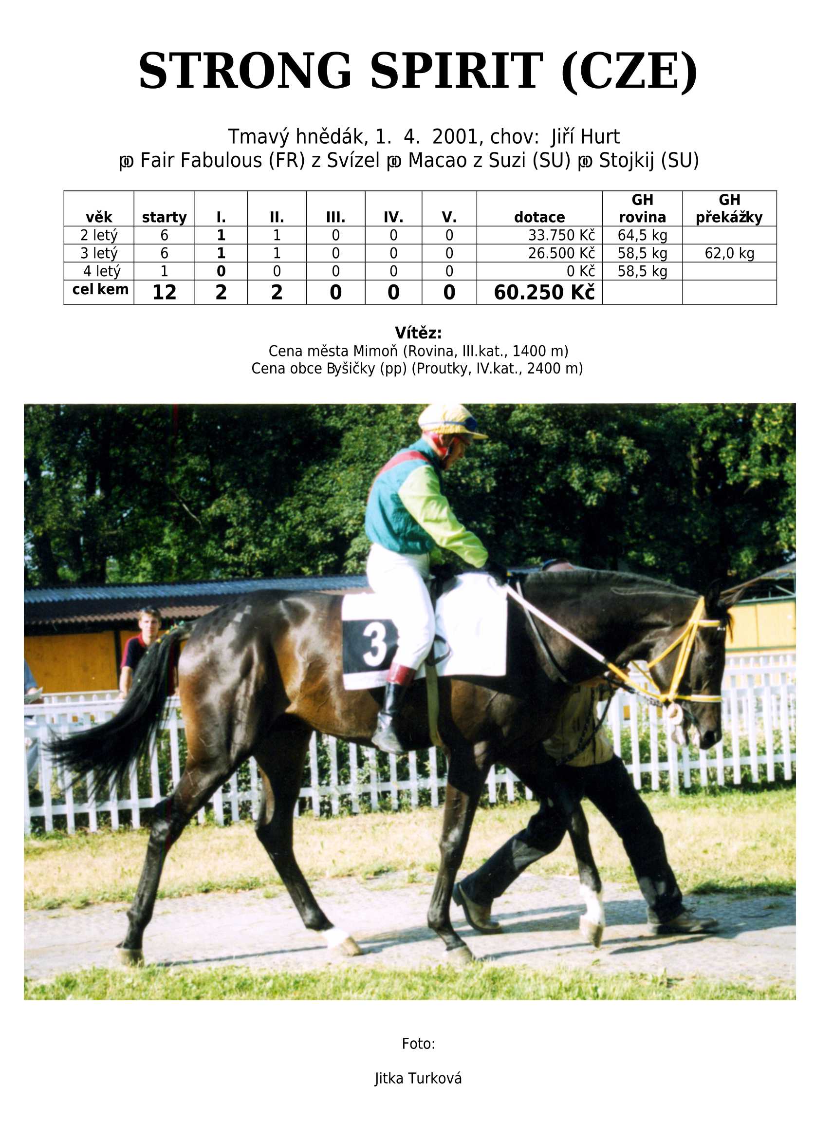 HARD FIGHTER (CZE) po Tiger Cafe je českým odchovancem, který do našeho chovu vrací krev japonského super šampiona plemeníků Sunday Silence.