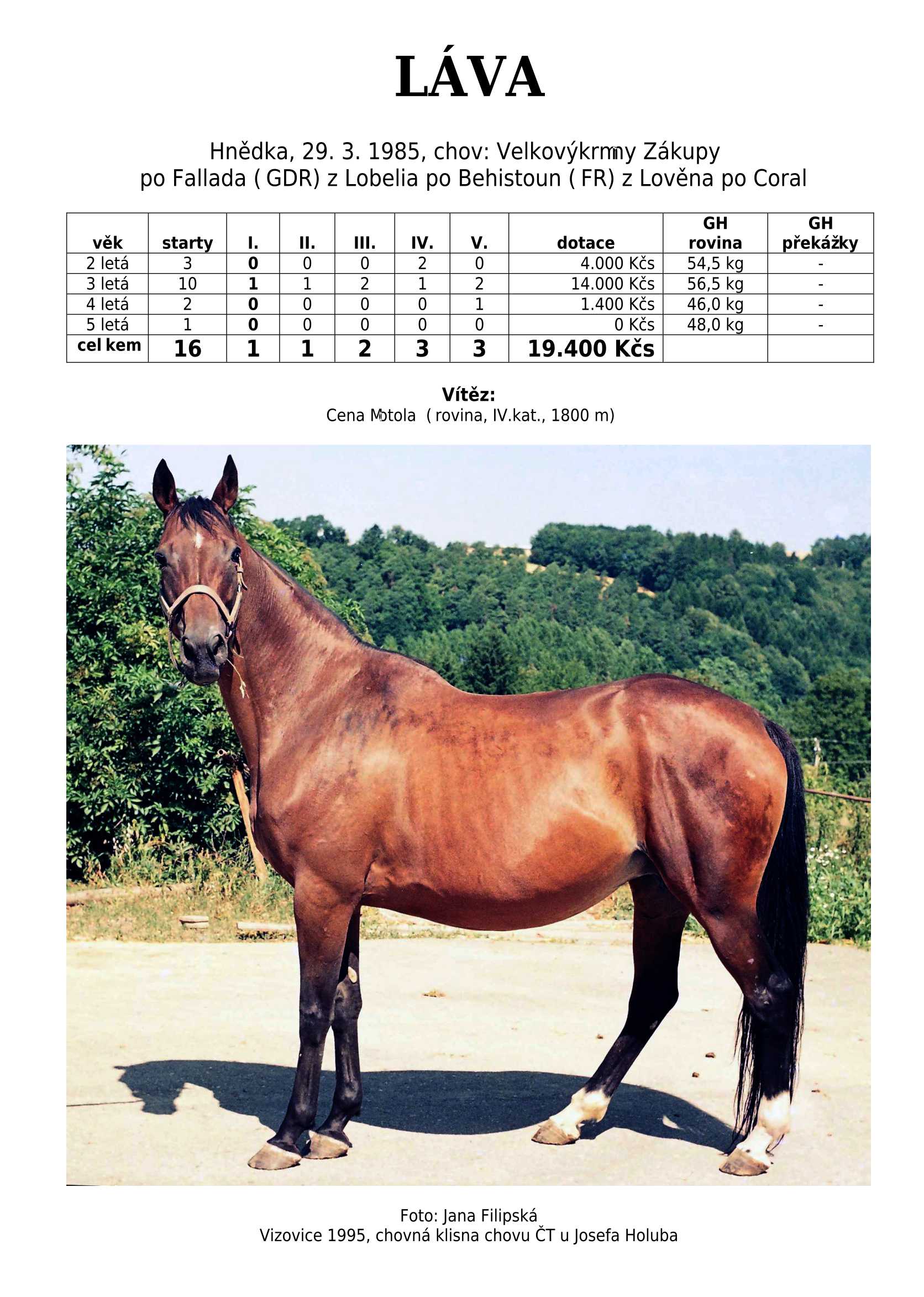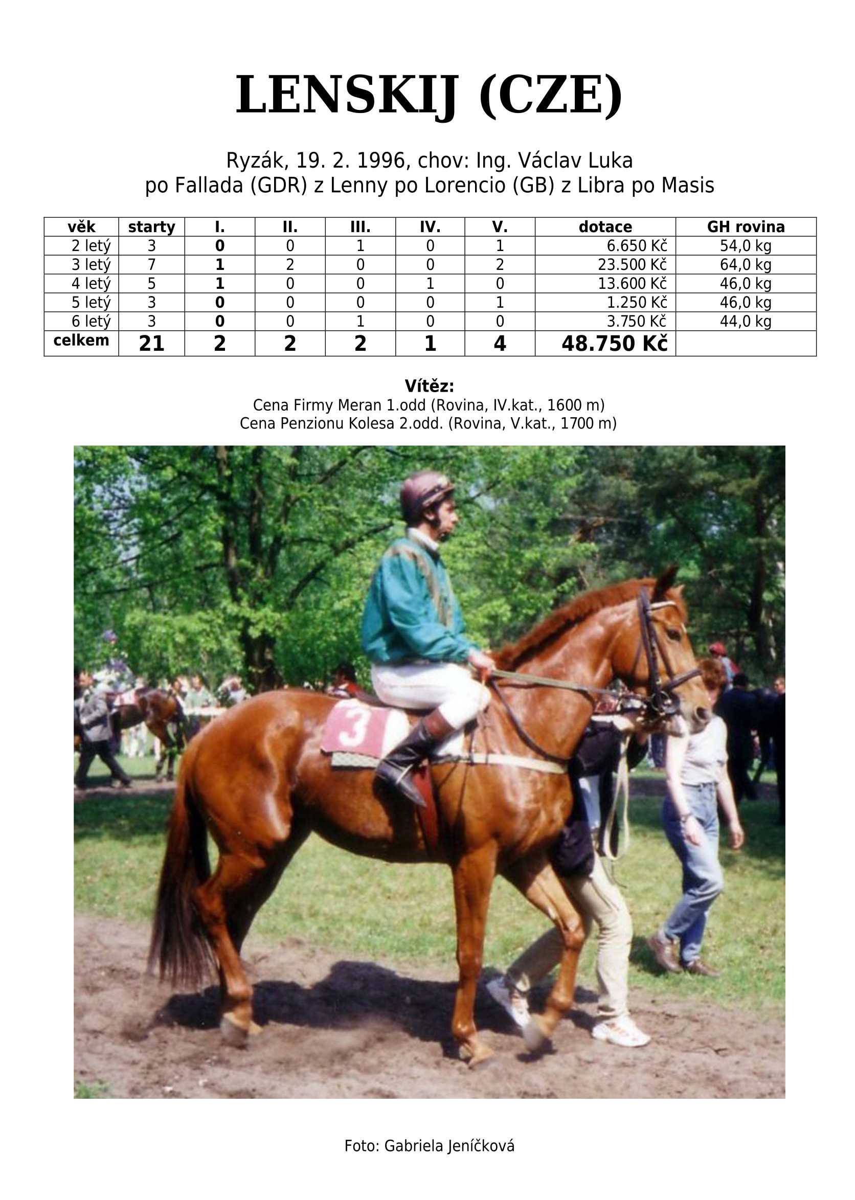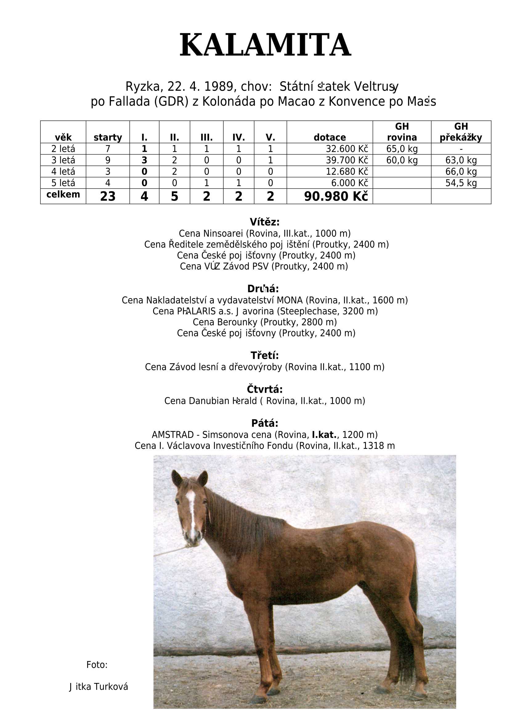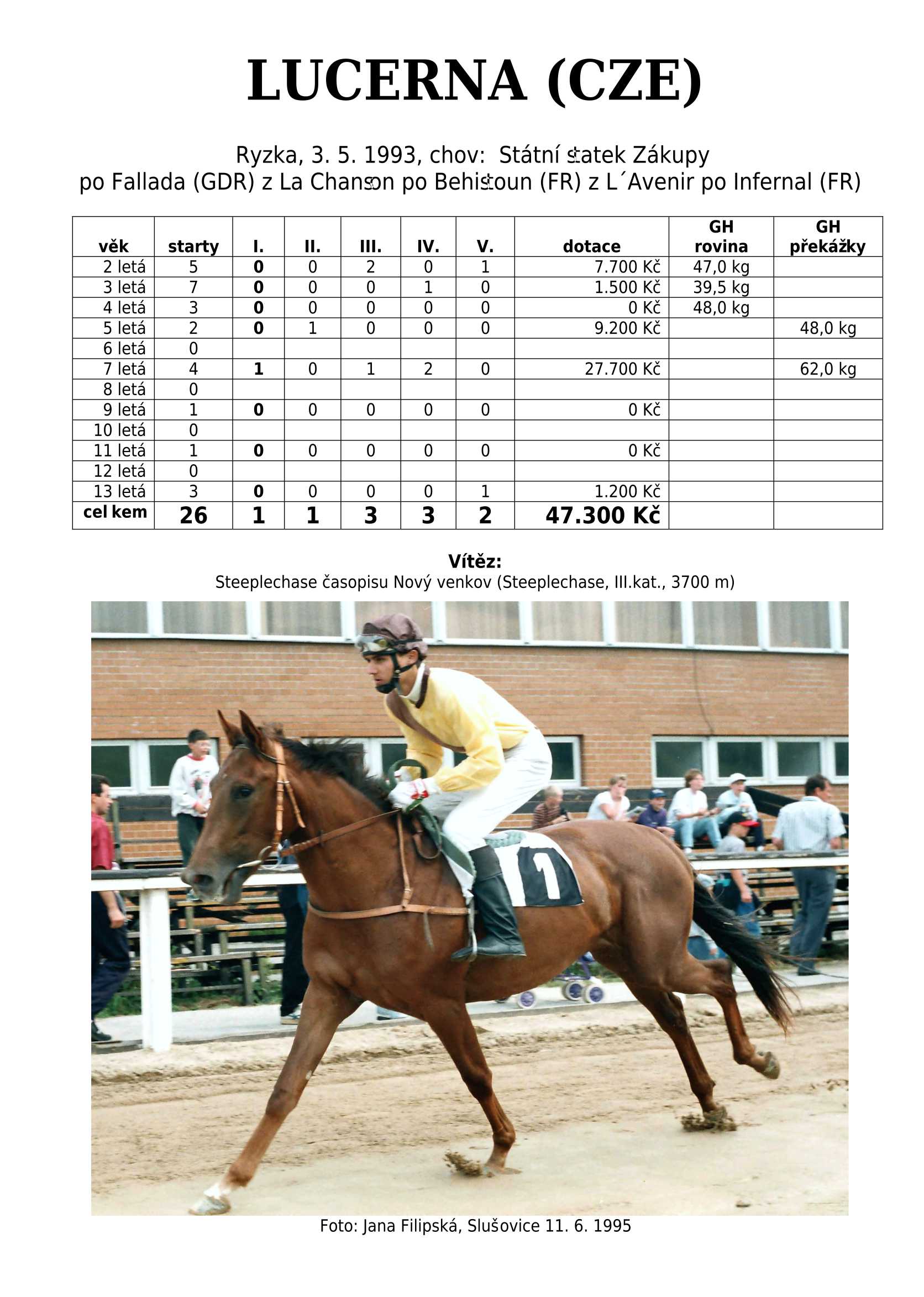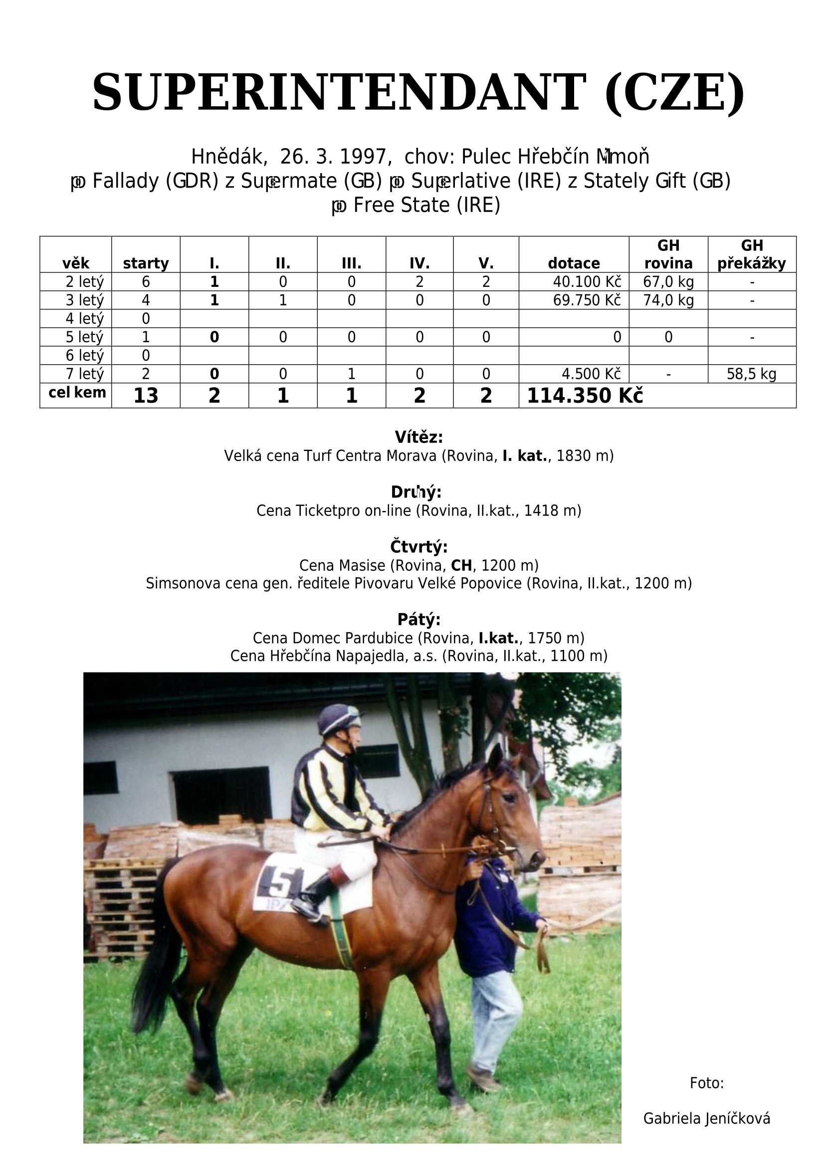 Ke konci dostihové sezóny jsem se pustila do aktualizace výsledků vítězných potomků. Každý plemeník bude mít své potomky na hlavní stránce, bez dalšího vyhledávání a klikání. Vše bude přehlednější, ale aktualizace bude z časových důvodů postupná. Přidáváni jsou potomci s ukončenou dostihovou kariérou.
