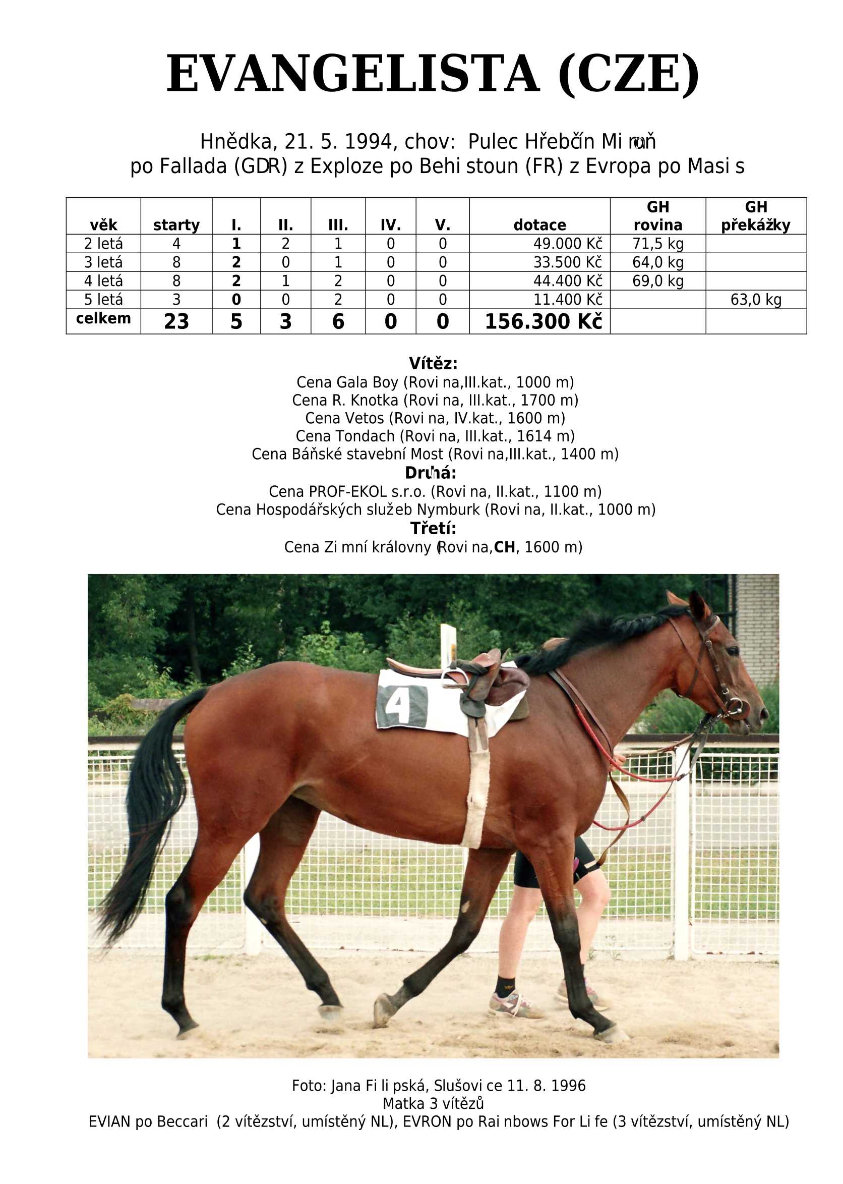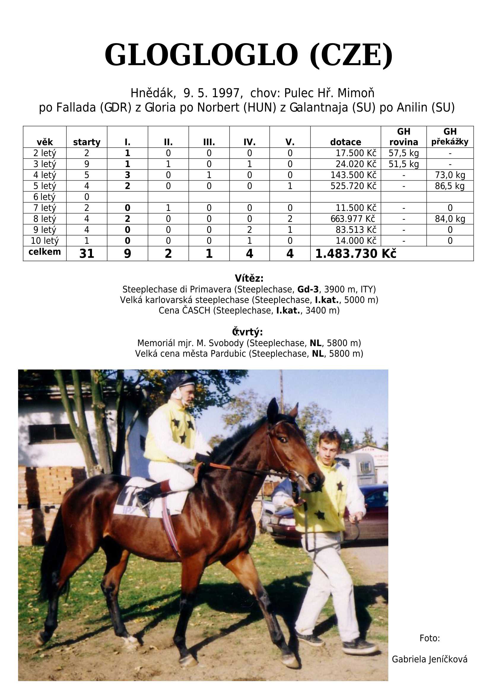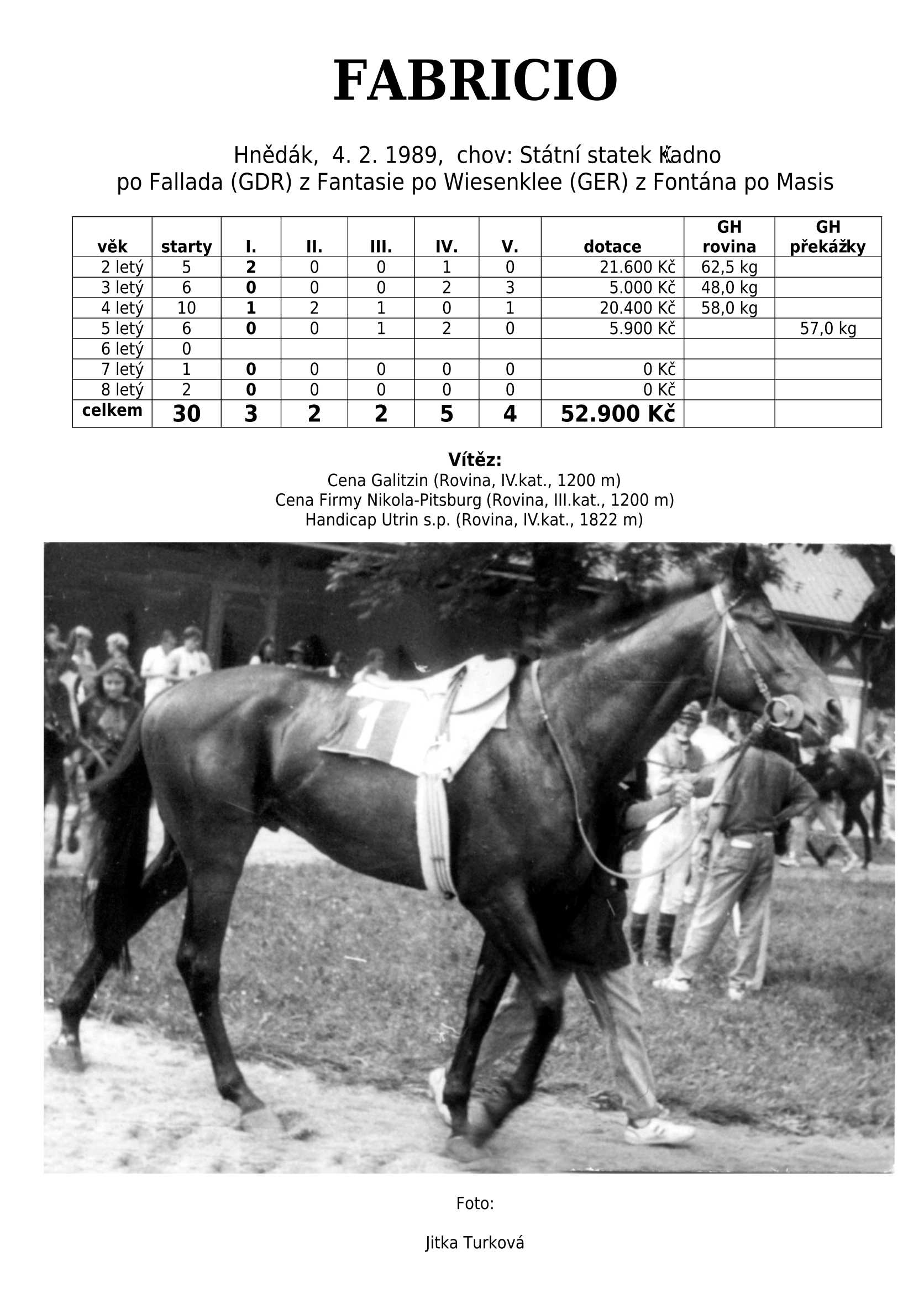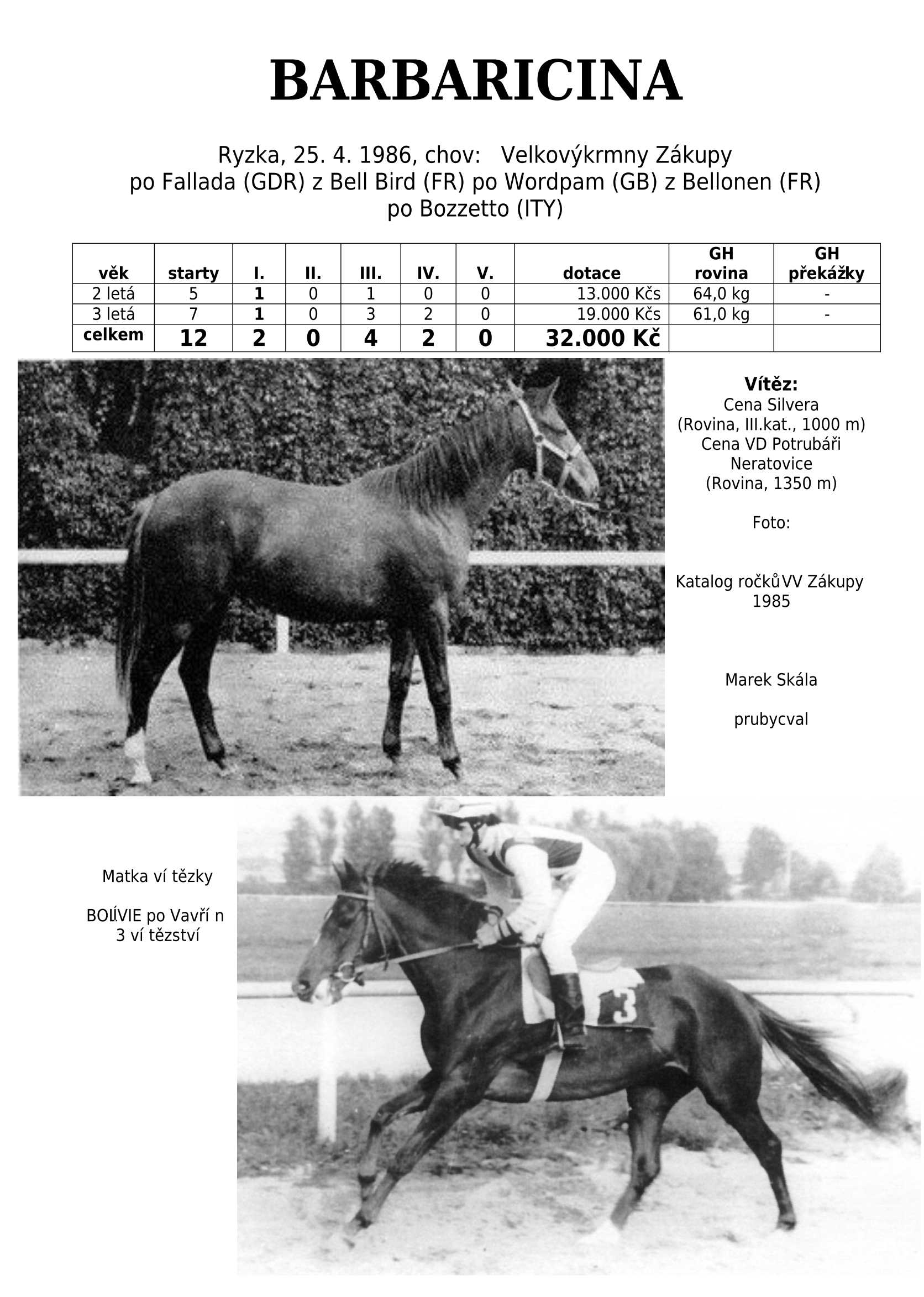 Ke konci dostihové sezóny jsem se pustila do aktualizace výsledků vítězných potomků. Každý plemeník bude mít své potomky na hlavní stránce, bez dalšího vyhledávání a klikání. Vše bude přehlednější, ale aktualizace bude z časových důvodů postupná. Přidáváni jsou potomci s ukončenou dostihovou kariérou.