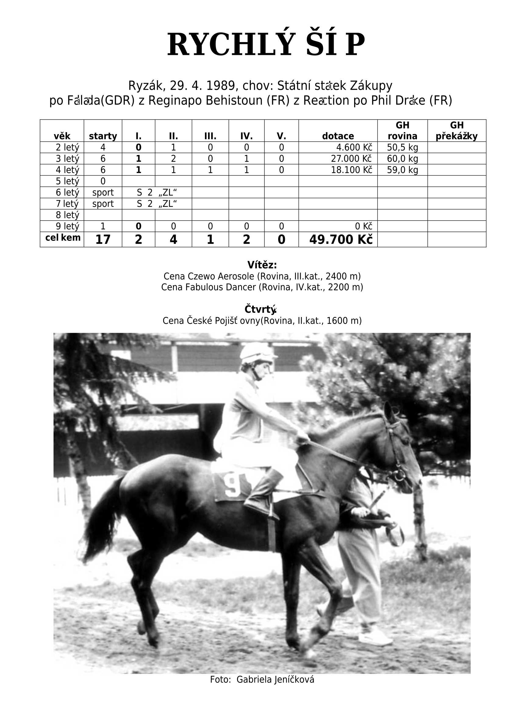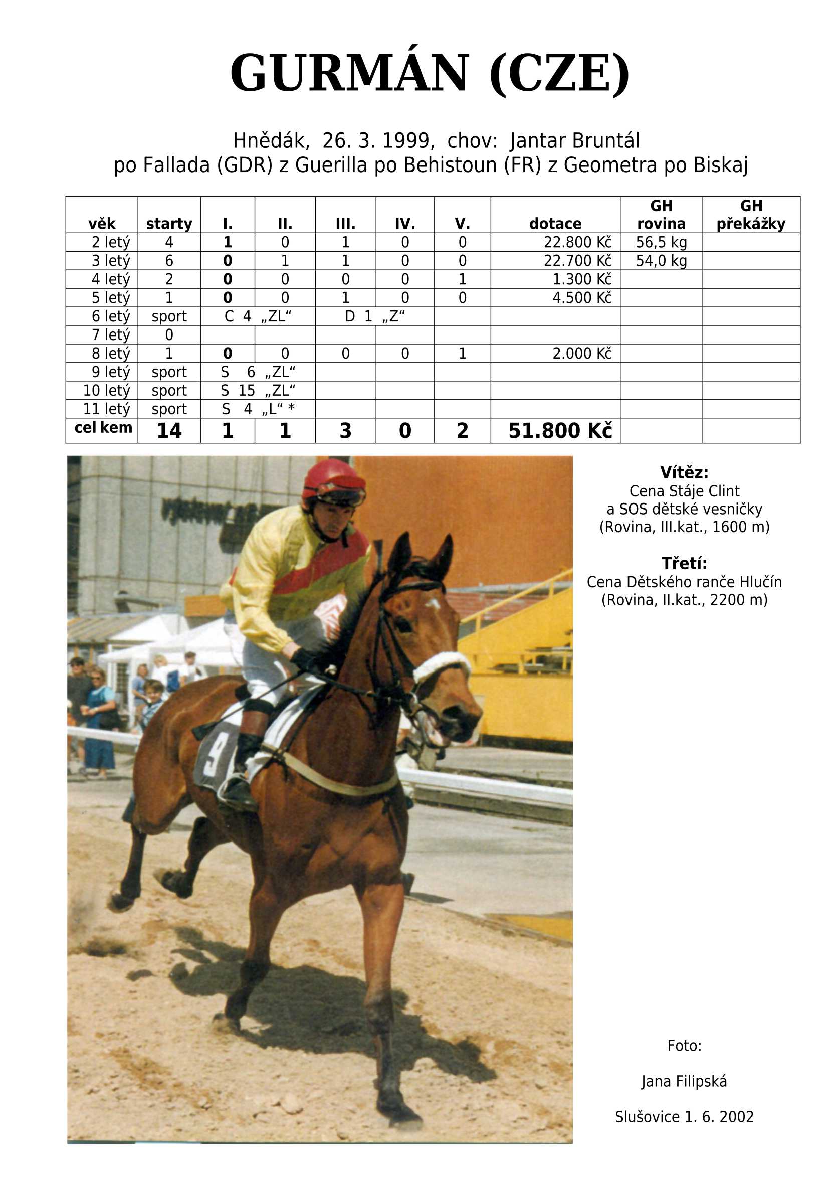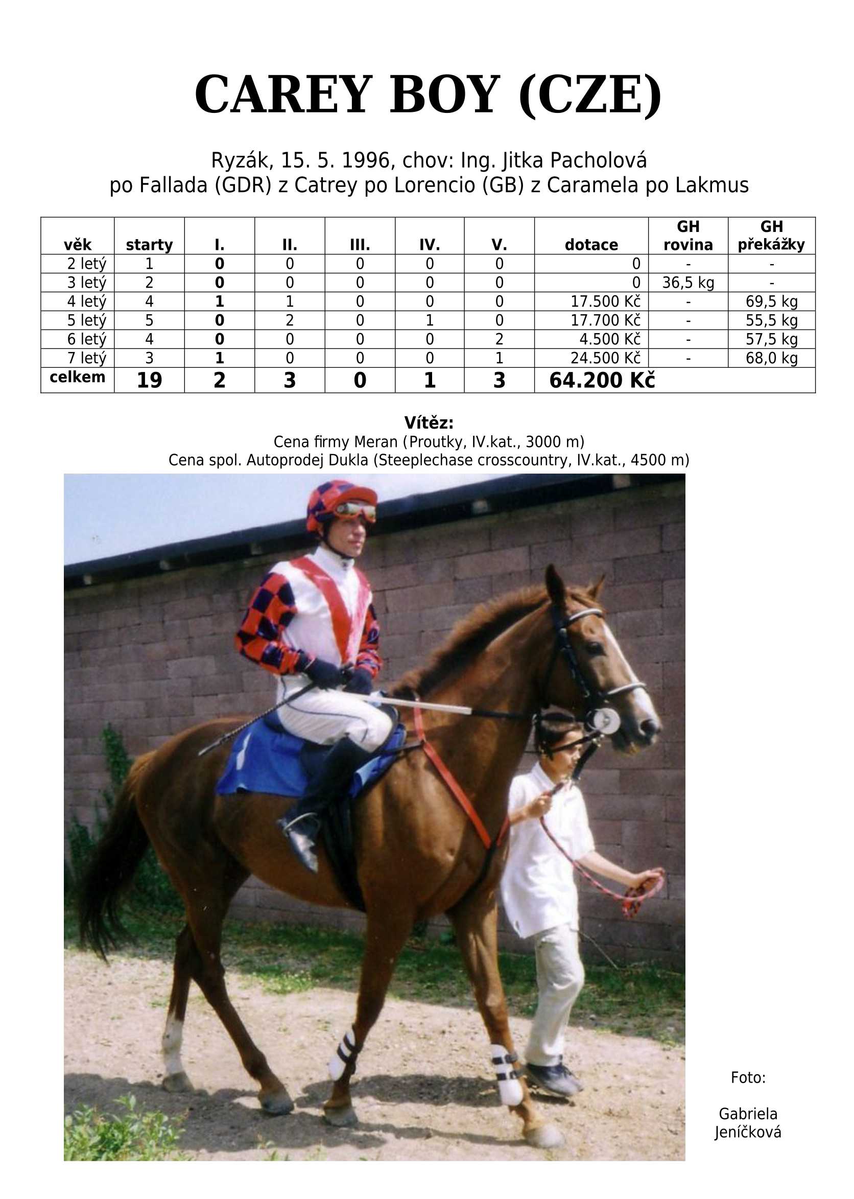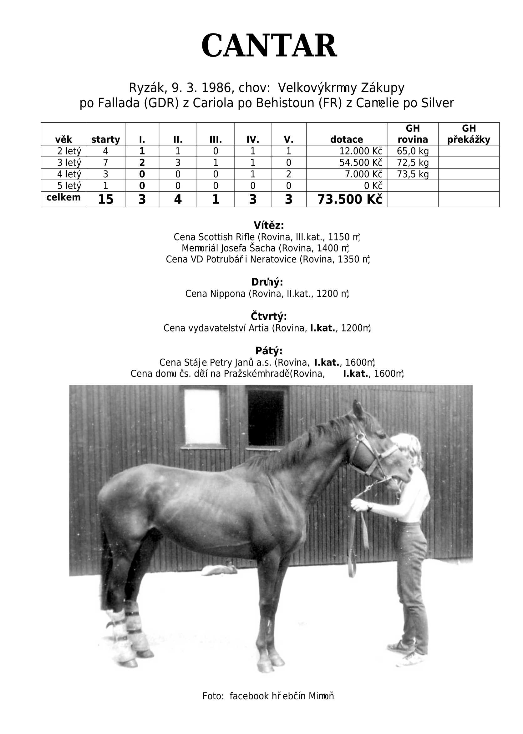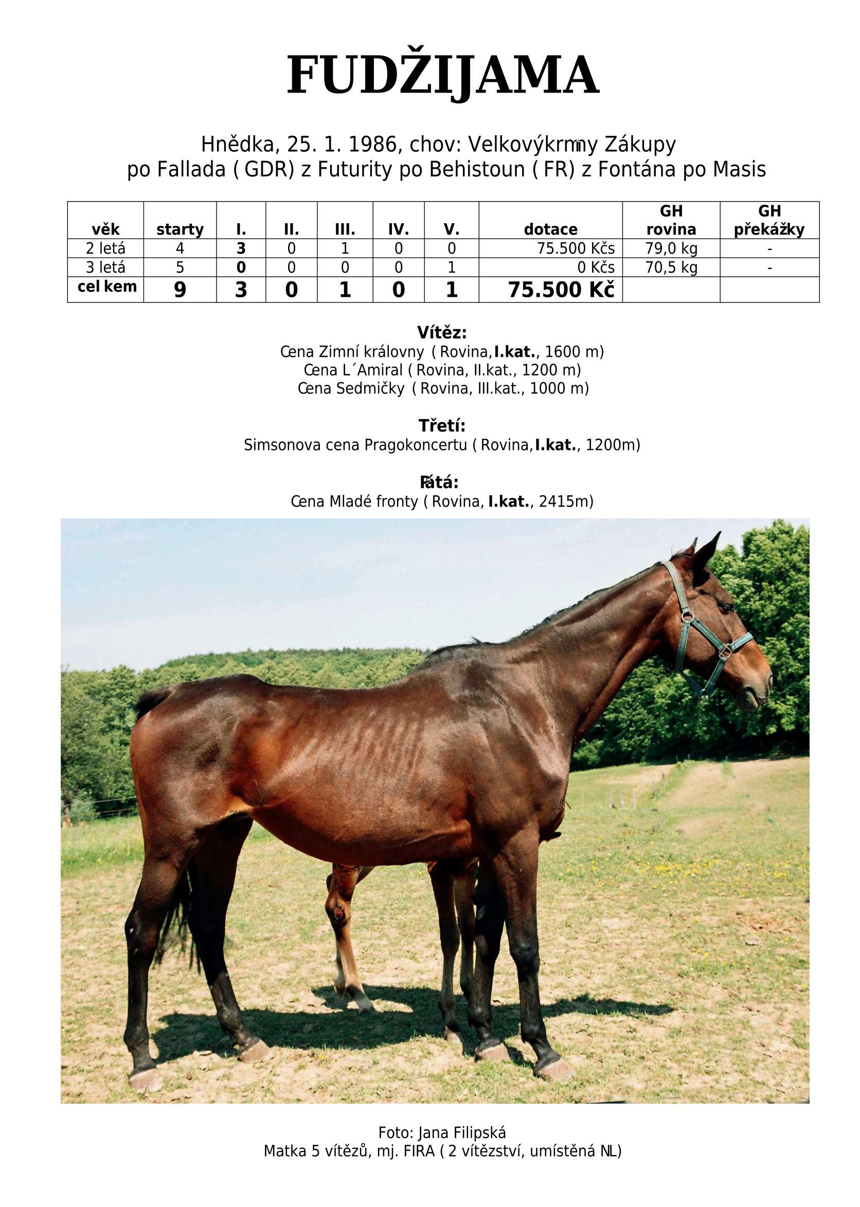 Ke konci dostihové sezóny jsem se pustila do aktualizace výsledků vítězných potomků. Každý plemeník bude mít své potomky na hlavní stránce, bez dalšího vyhledávání a klikání. Vše bude přehlednější, ale aktualizace bude z časových důvodů postupná. Přidáváni jsou potomci s ukončenou dostihovou kariérou.