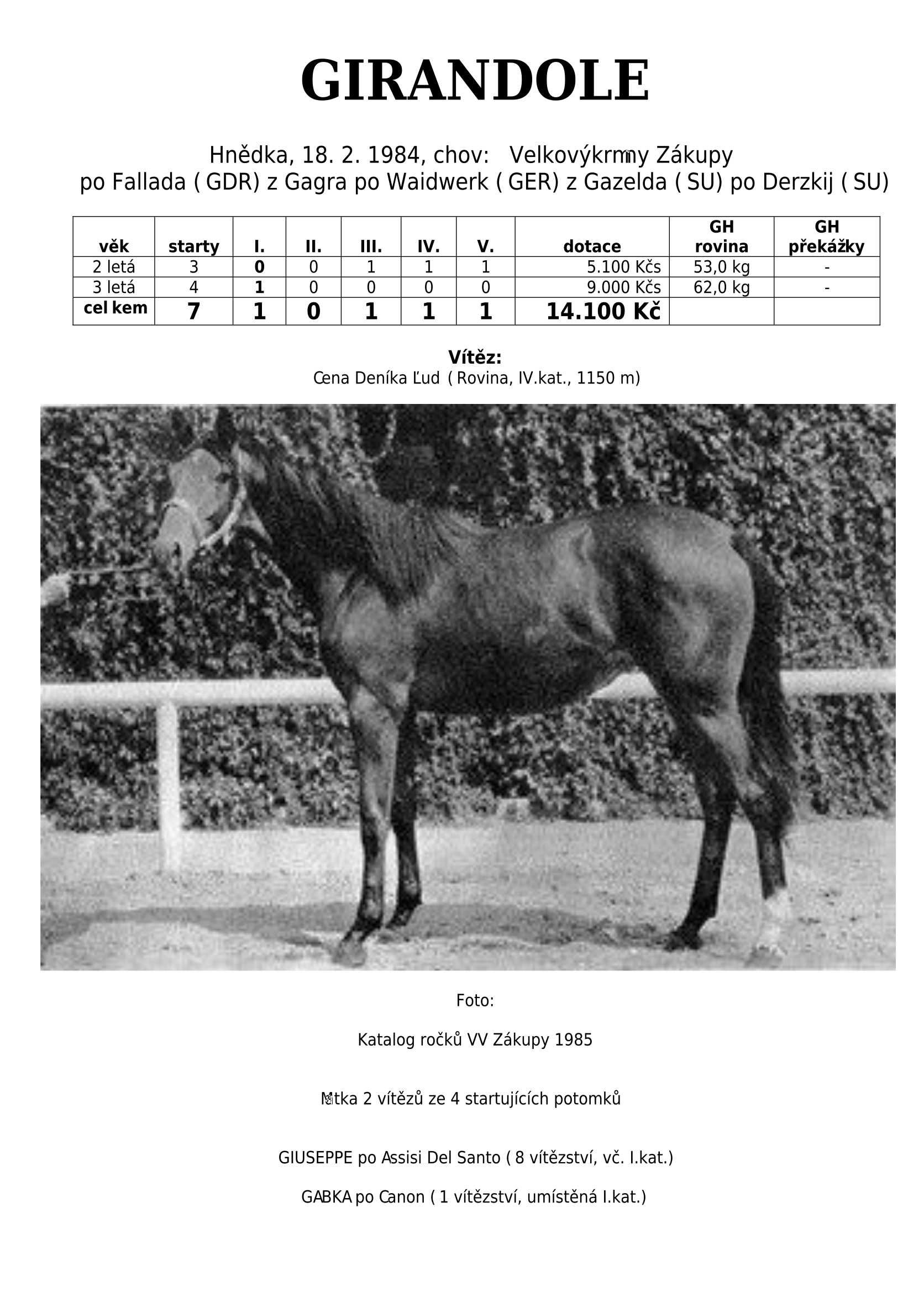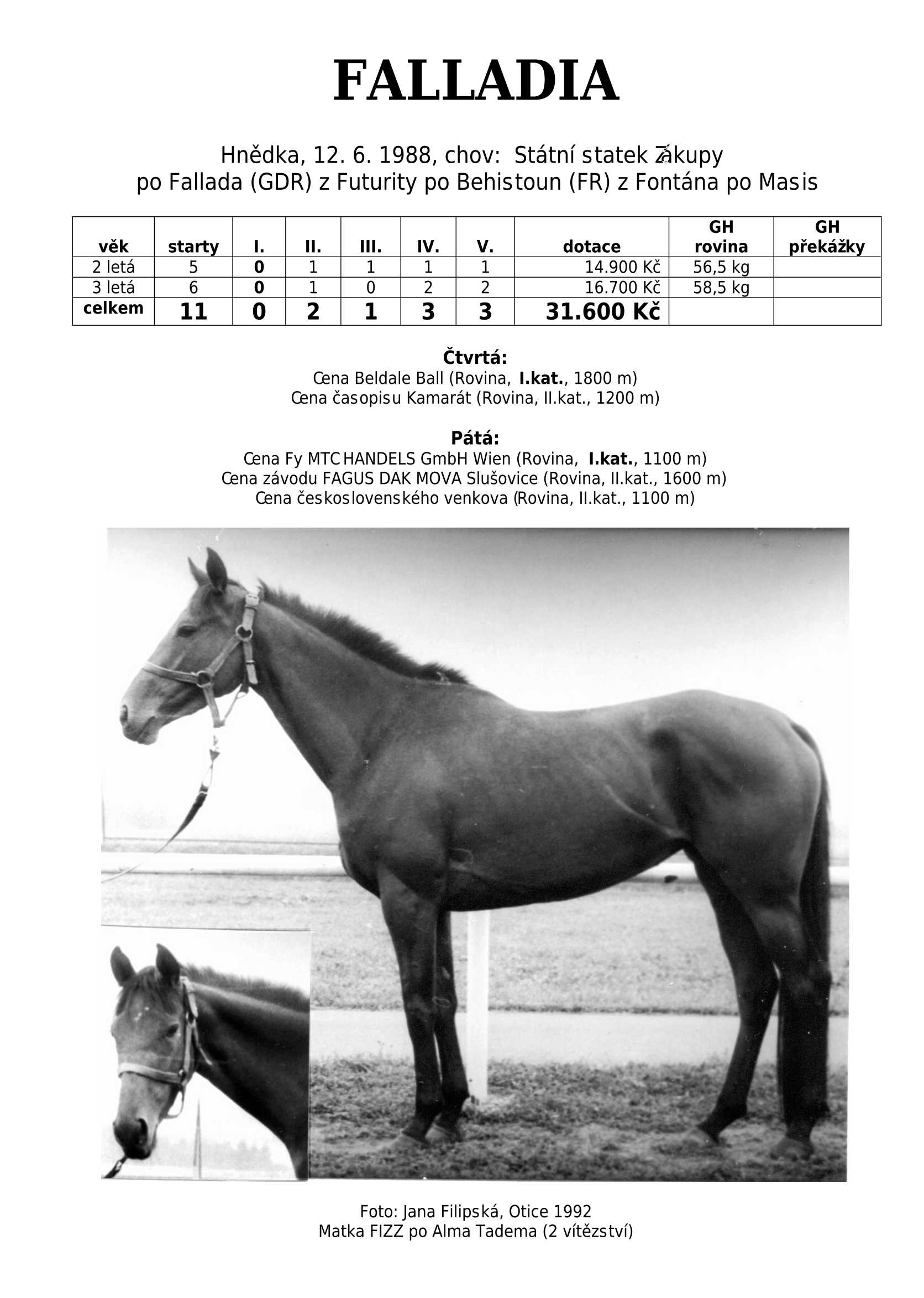 Otec FALUN (plemeník), FUDŽIJAMA, VÁLEČNÍK, VILARD, QADALCHAN, EVANGELISTA, VERY BUSY, MARIE STUARTOVNA, GIRANDOLE, FABRICIO, QUDALCANAL, SUPERINTENDANT aj.