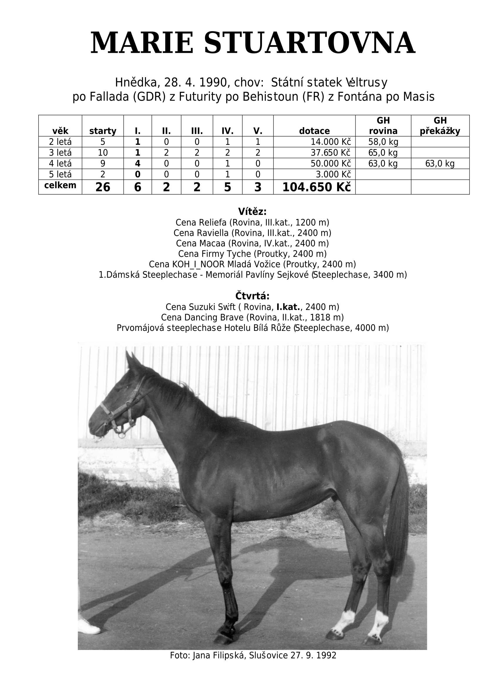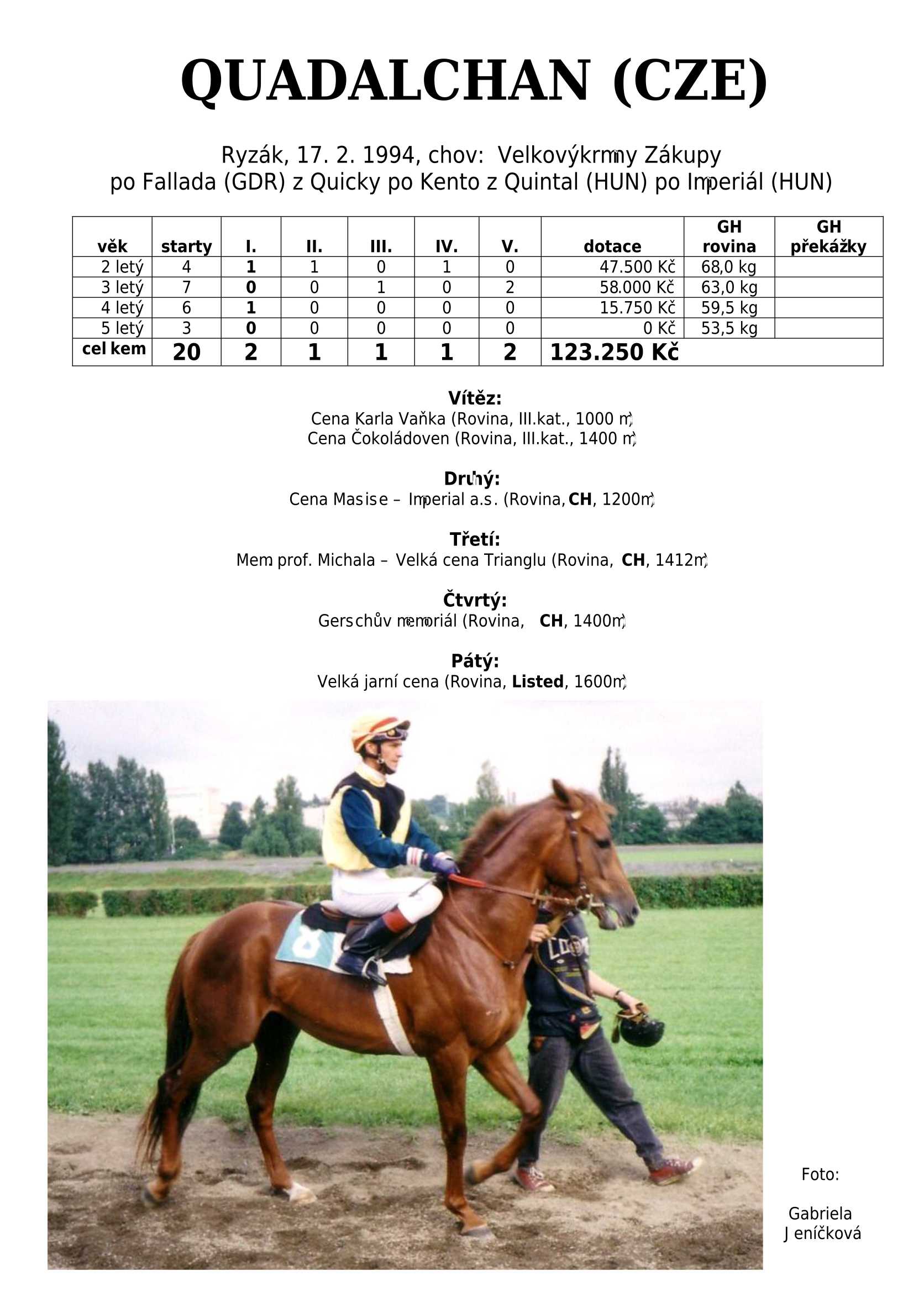 Trendem se ukazuje importování hotových koní. Stáda chovných klisen se stále tenčí, i když loňské úspěchy českých odchovanců byly excelentní, ale to už je jiná kapitola...
