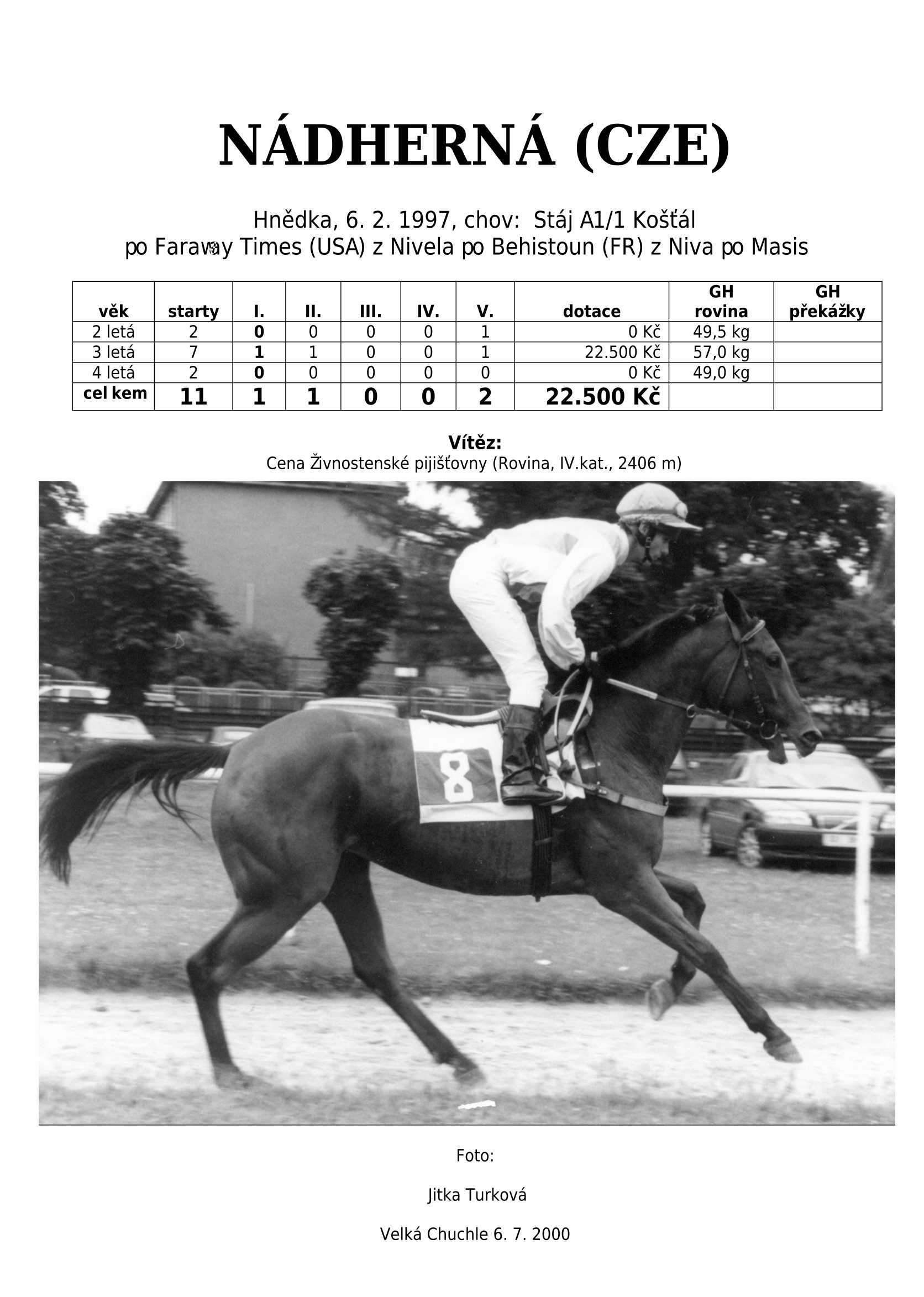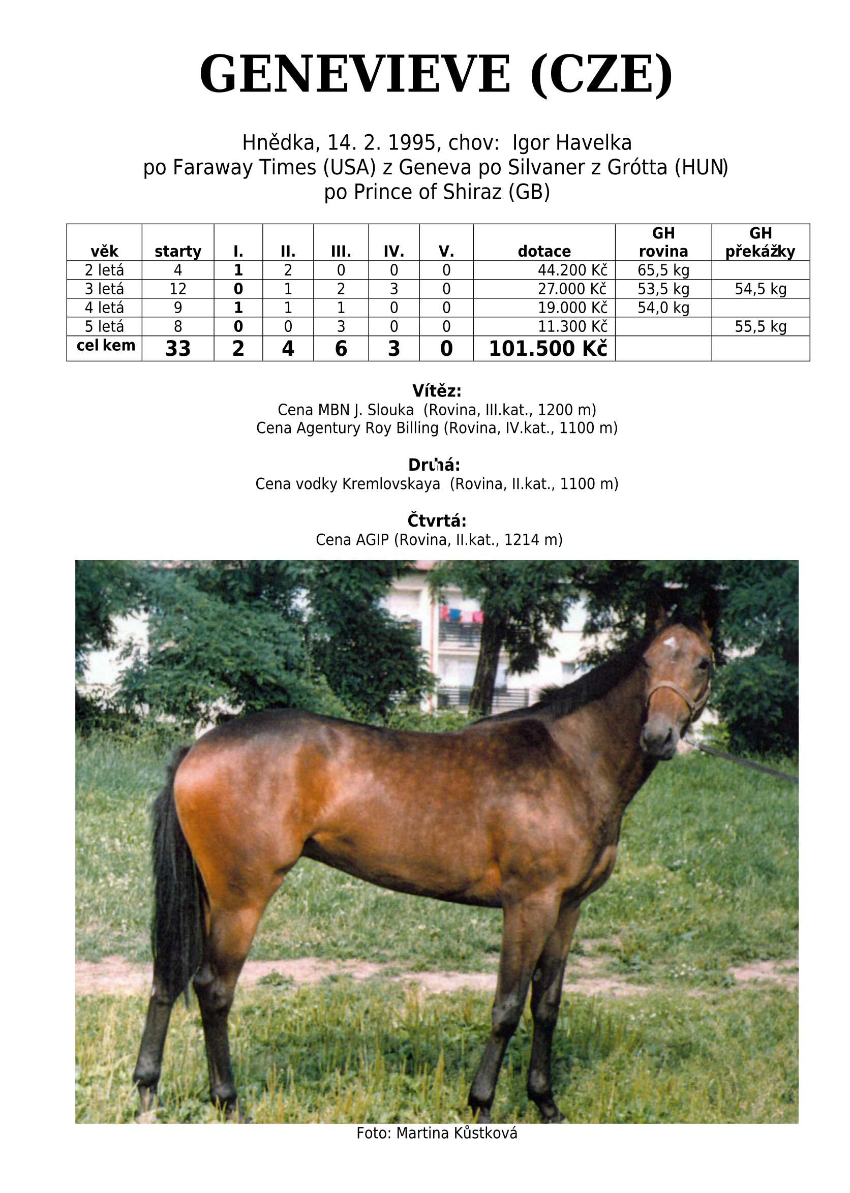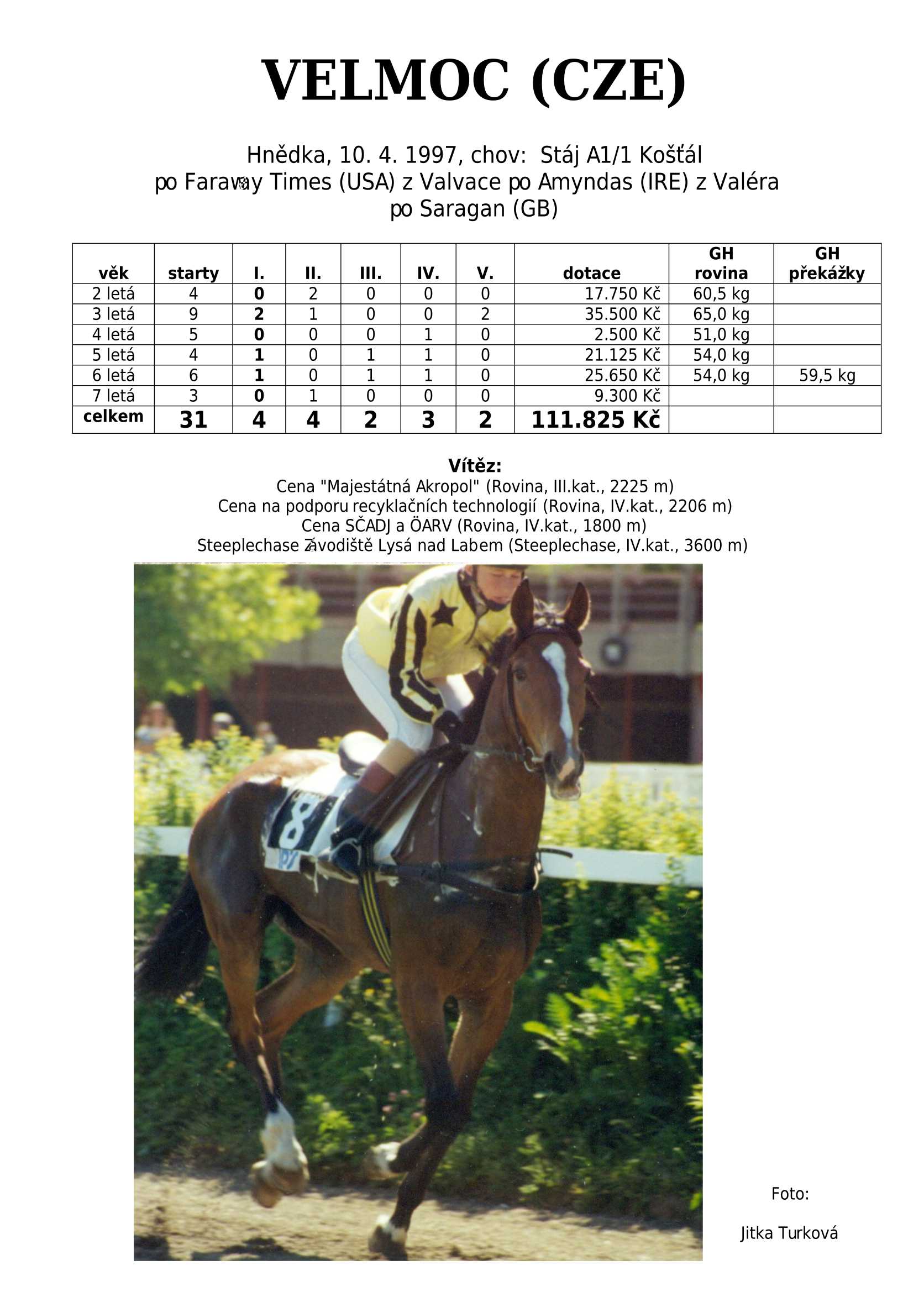 Ke konci dostihové sezóny jsem se pustila do aktualizace výsledků vítězných potomků. Každý plemeník bude mít své potomky na hlavní stránce, bez dalšího vyhledávání a klikání. Vše bude přehlednější, ale aktualizace bude z časových důvodů postupná. Přidáváni jsou potomci s ukončenou dostihovou kariérou.