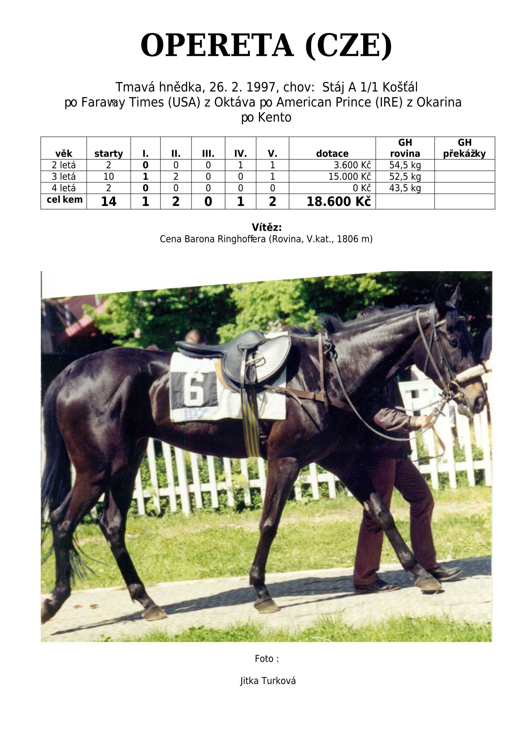 Trendem se ukazuje importování hotových koní. Stáda chovných klisen se stále tenčí, i když loňské úspěchy českých odchovanců byly excelentní, ale to už je jiná kapitola...