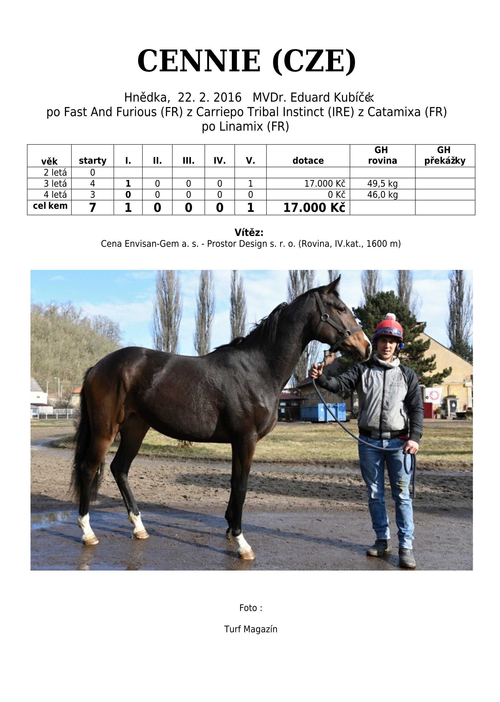 Velká gratulace chovateli i celému přípravnému týmu. Úžasný výkon!