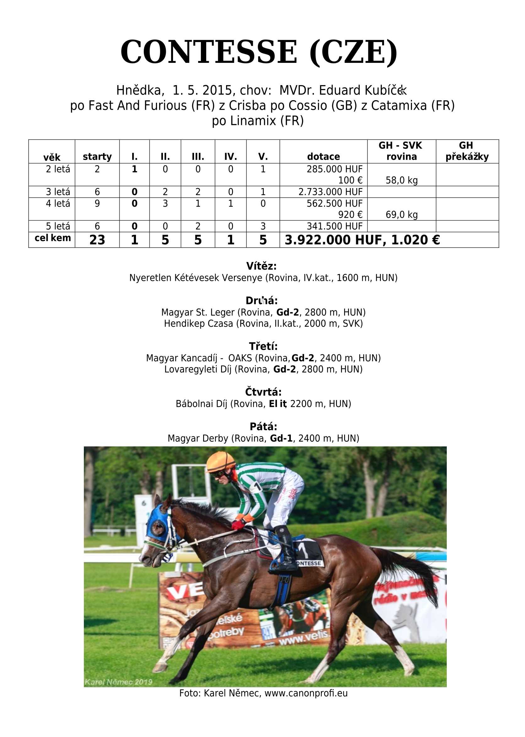 Ke konci dostihové sezóny jsem se pustila do aktualizace výsledků vítězných potomků. Každý plemeník bude mít své potomky na hlavní stránce, bez dalšího vyhledávání a klikání. Vše bude přehlednější, ale aktualizace bude z časových důvodů postupná. Přidáváni jsou potomci s ukončenou dostihovou kariérou.
