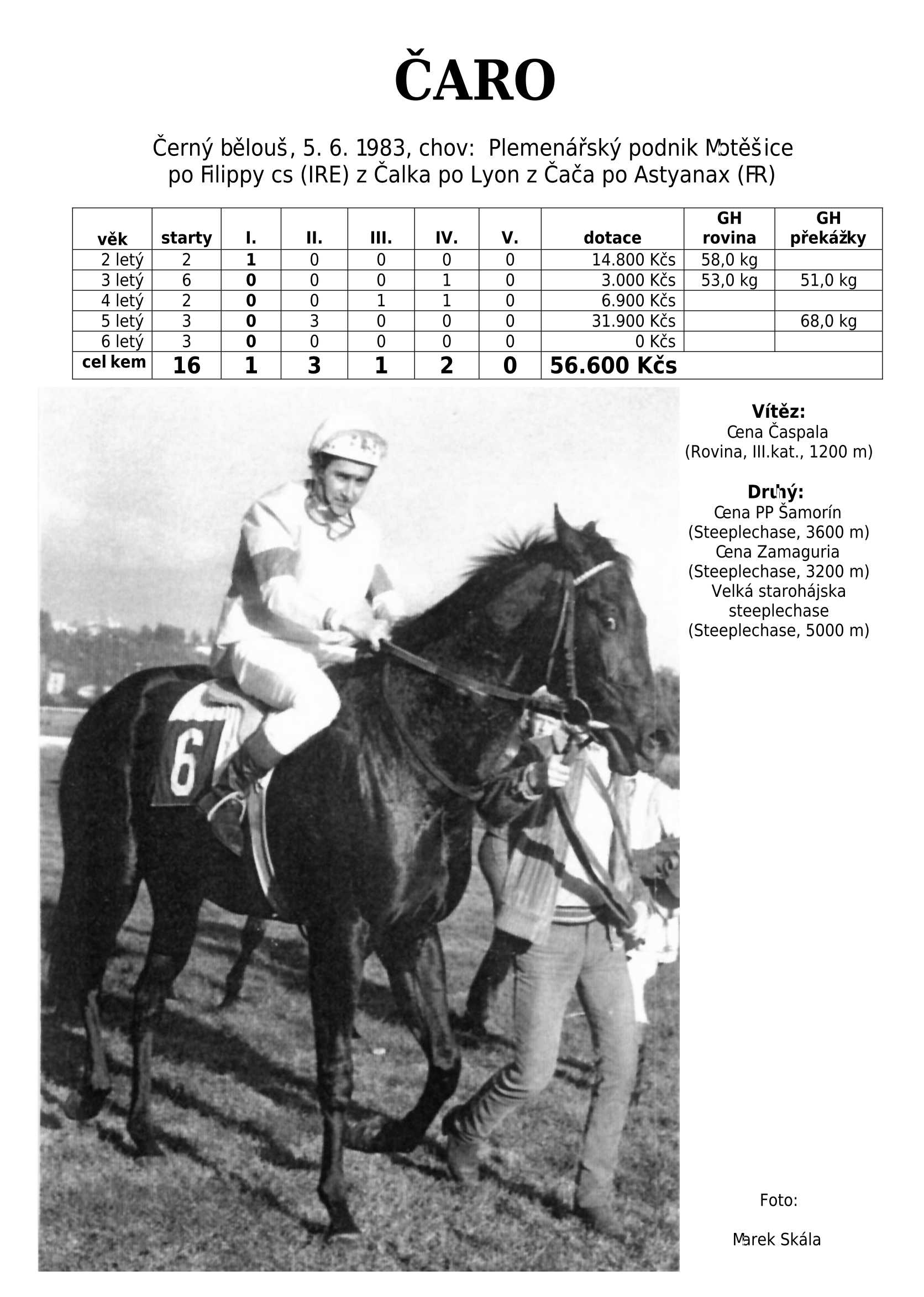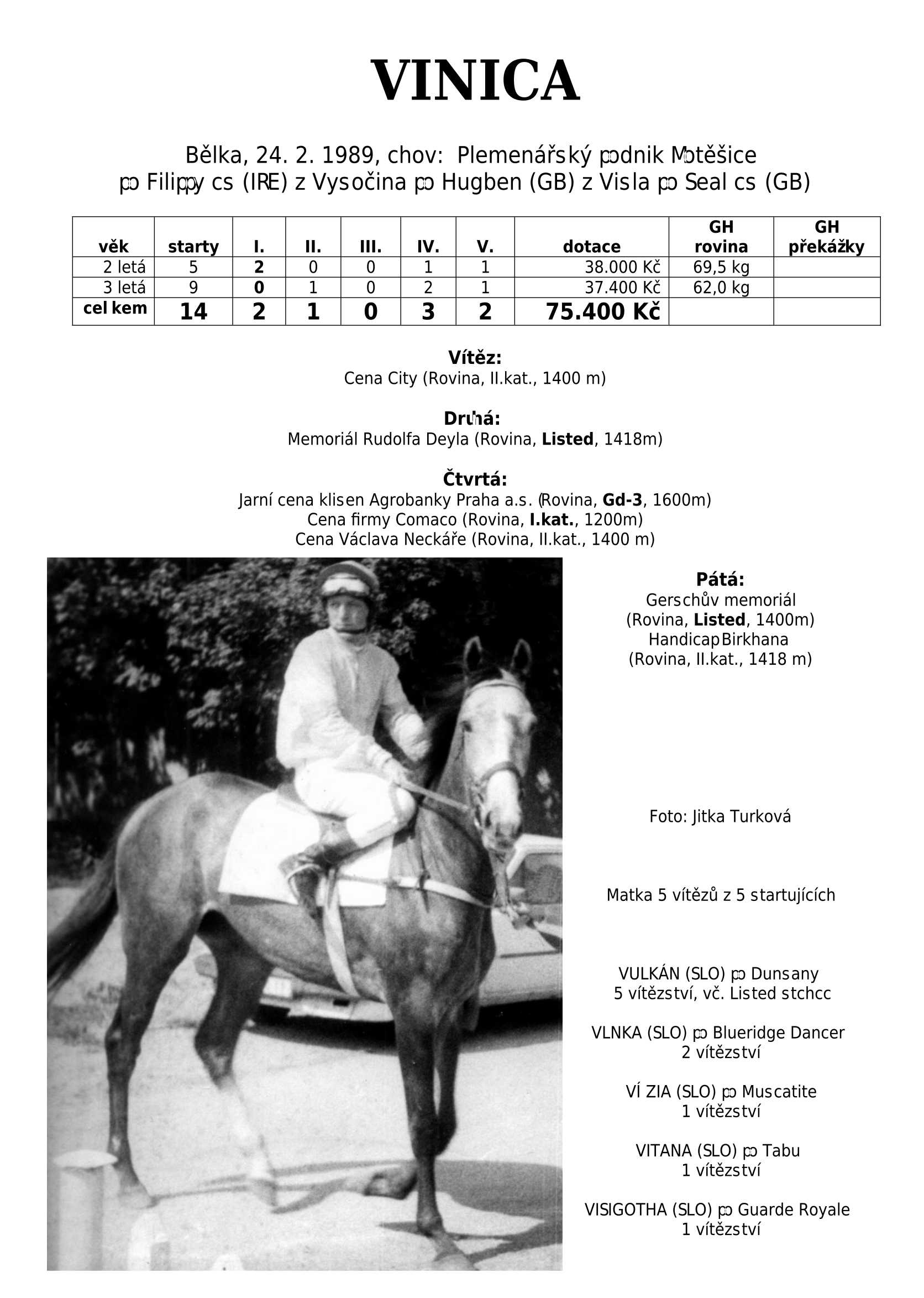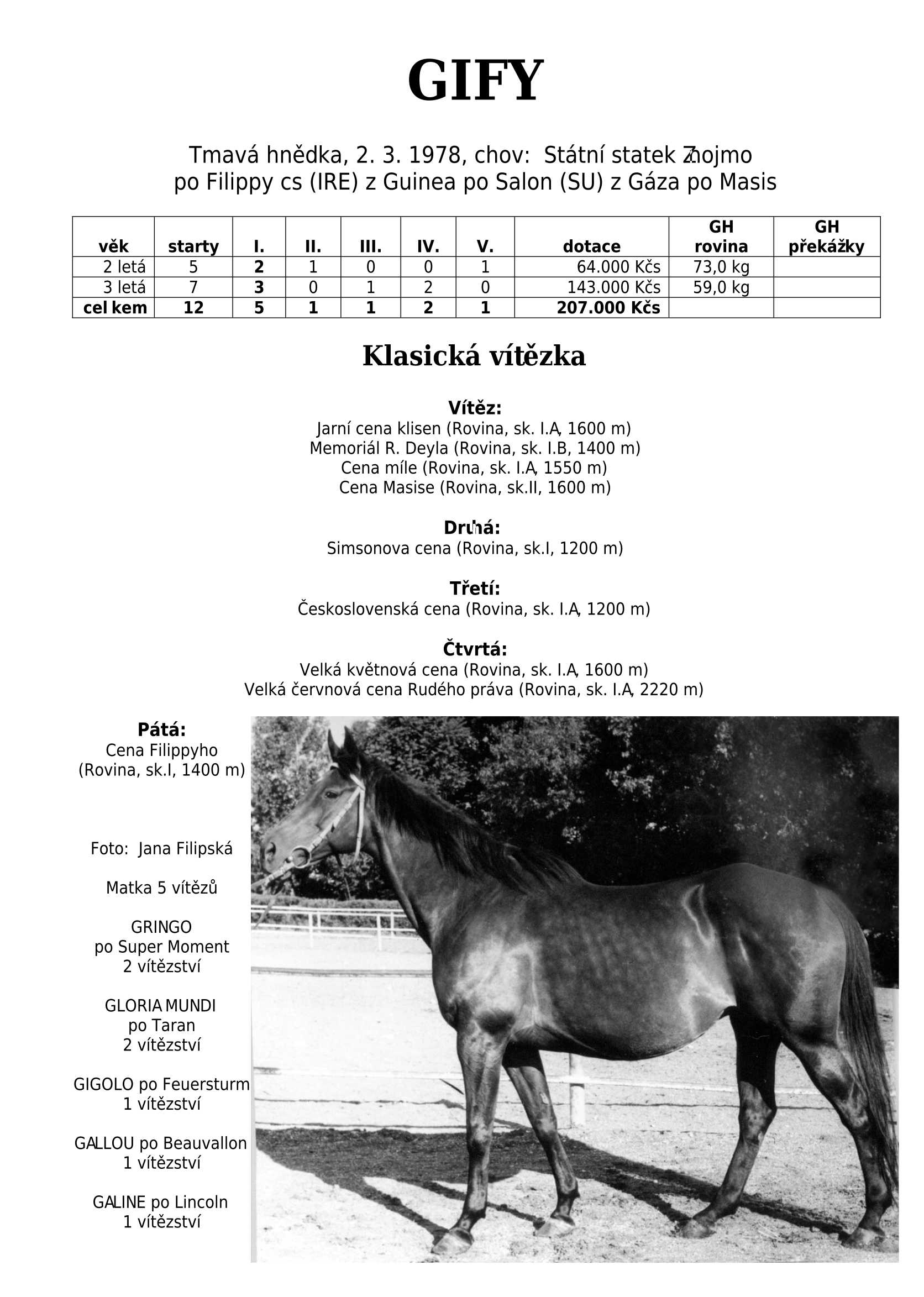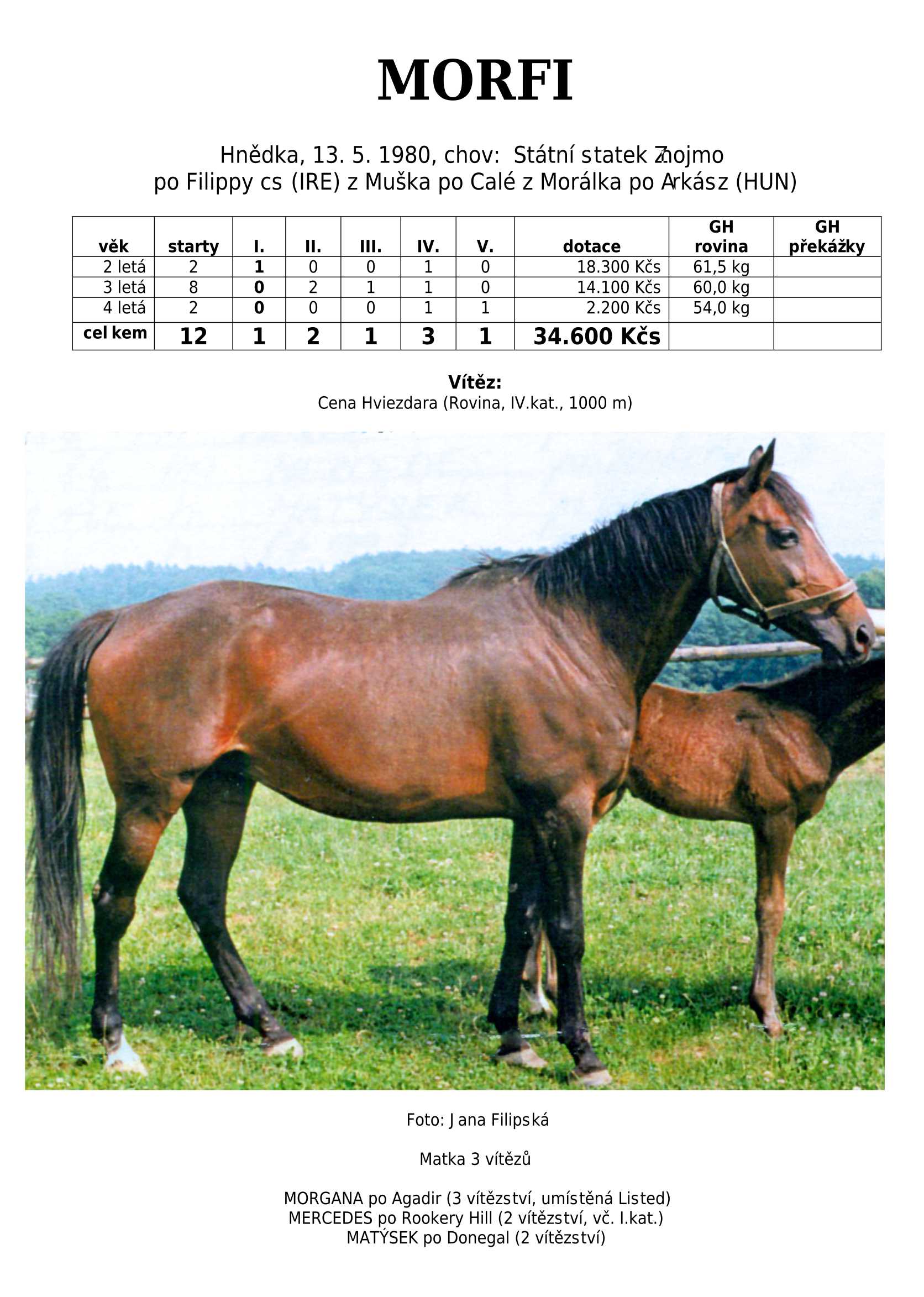 Ke konci dostihové sezóny jsem se pustila do aktualizace výsledků vítězných potomků. Každý plemeník bude mít své potomky na hlavní stránce, bez dalšího vyhledávání a klikání. Vše bude přehlednější, ale aktualizace bude z časových důvodů postupná. Přidáváni jsou potomci s ukončenou dostihovou kariérou.