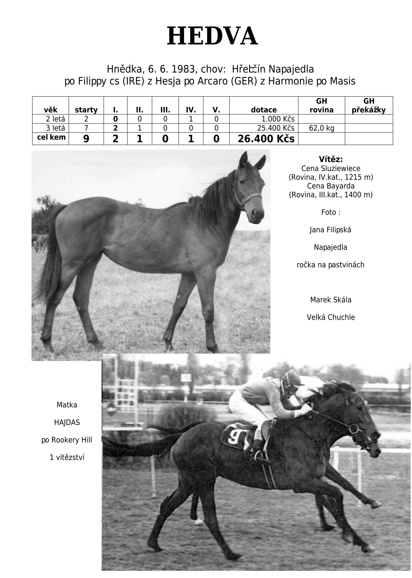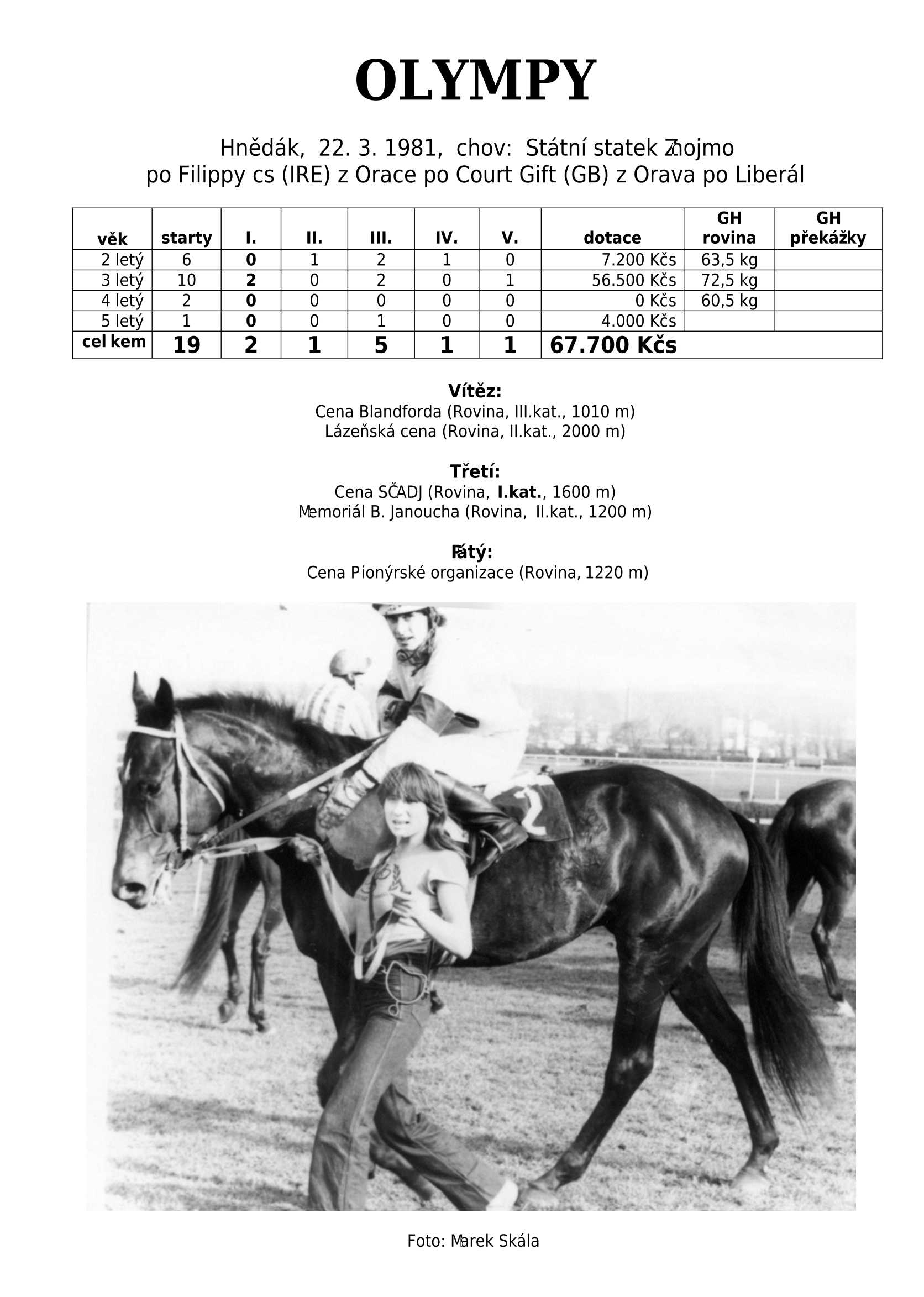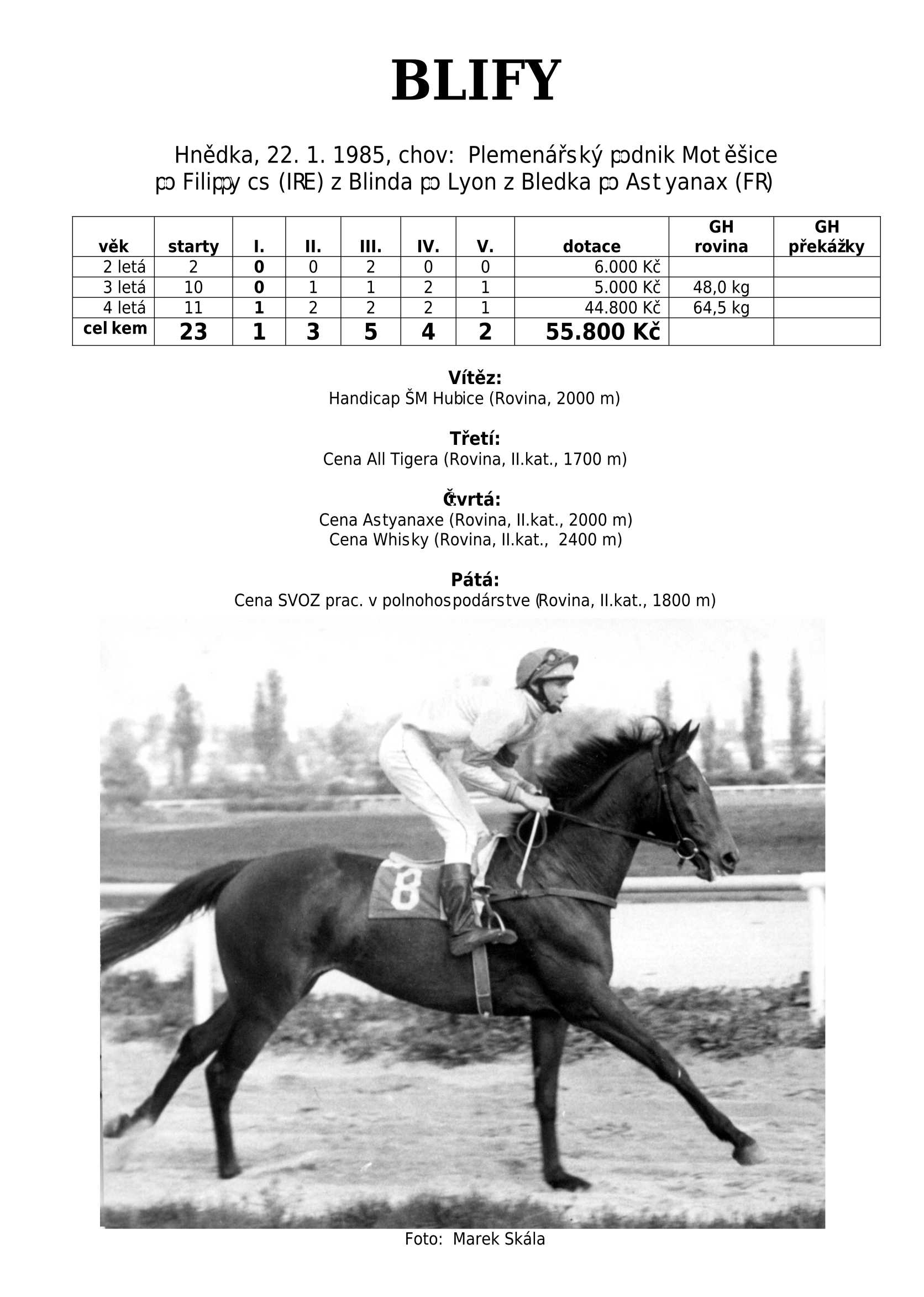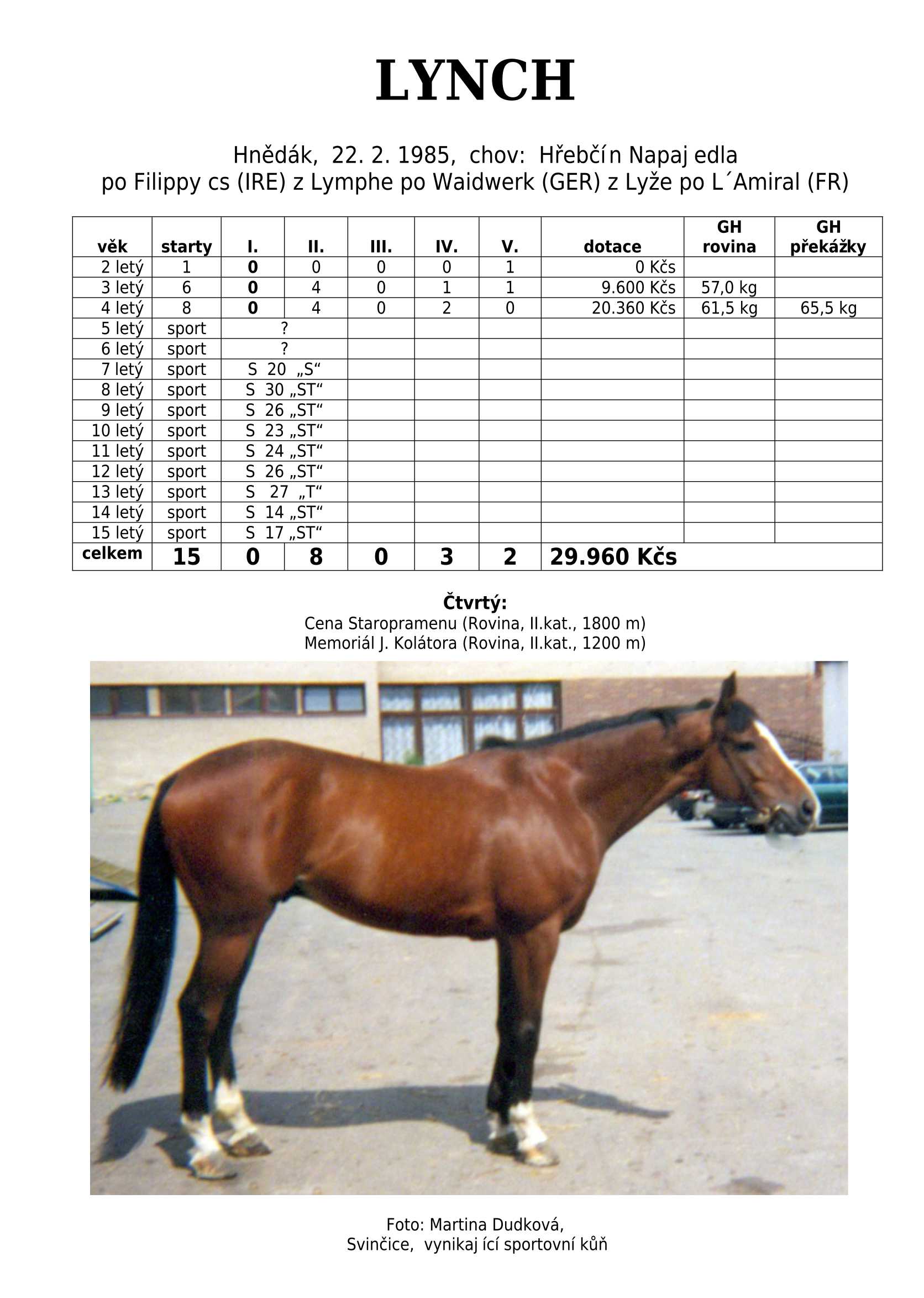 Ke konci dostihové sezóny jsem se pustila do aktualizace výsledků vítězných potomků. Každý plemeník bude mít své potomky na hlavní stránce, bez dalšího vyhledávání a klikání. Vše bude přehlednější, ale aktualizace bude z časových důvodů postupná. Přidáváni jsou potomci s ukončenou dostihovou kariérou.