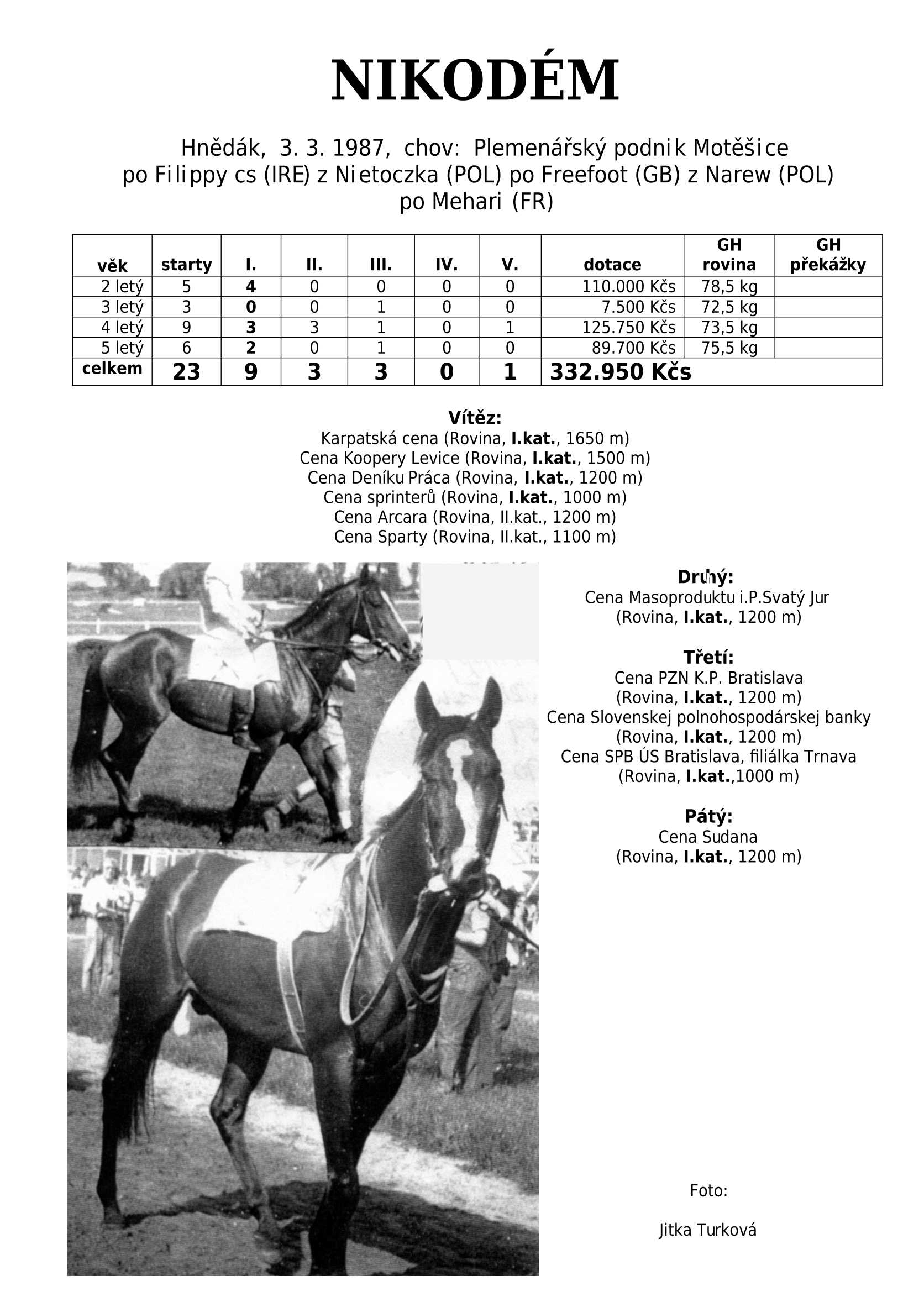 Trendem se ukazuje importování hotových koní. Stáda chovných klisen se stále tenčí, i když loňské úspěchy českých odchovanců byly excelentní, ale to už je jiná kapitola...