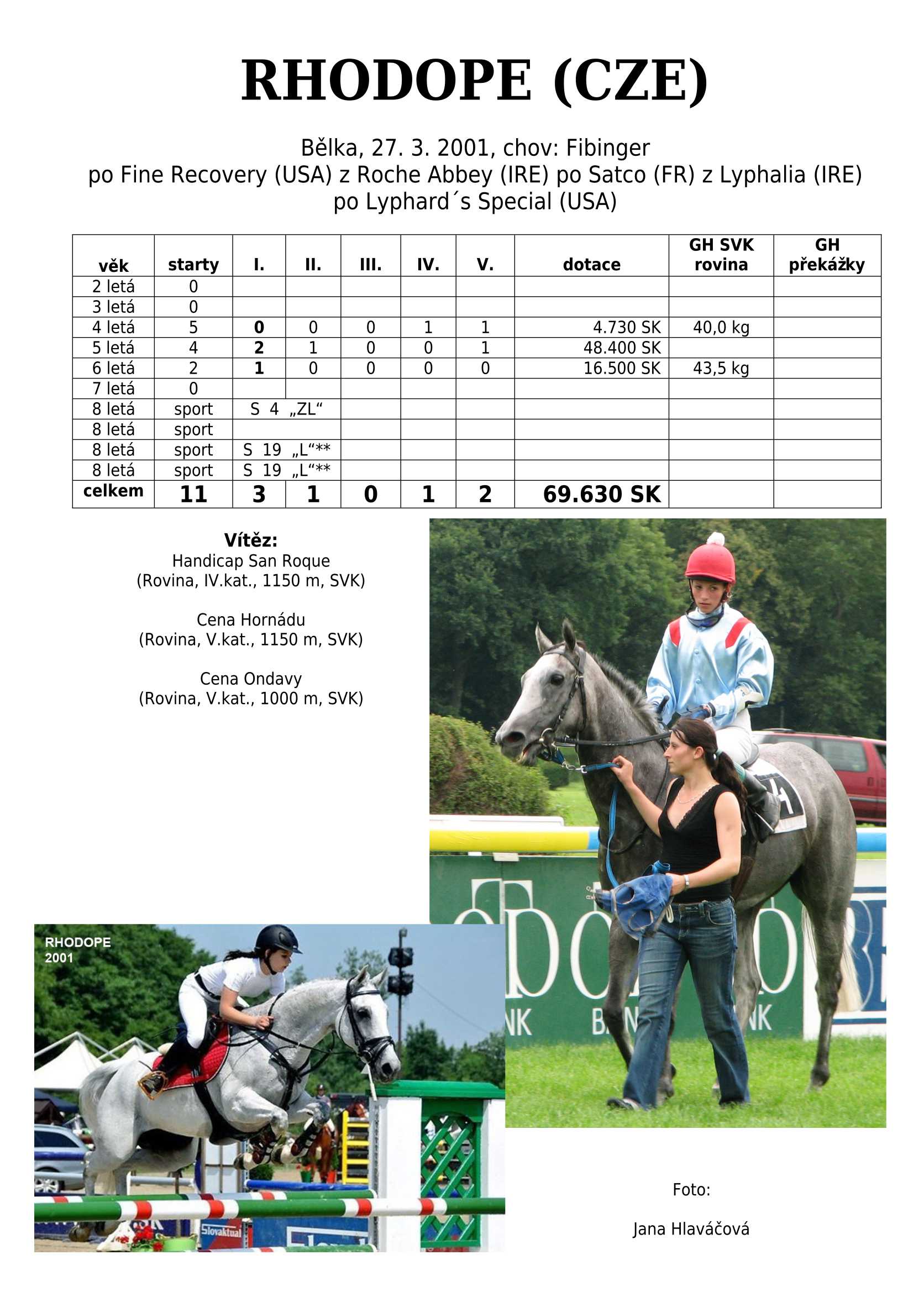 Otec FAST RECOVERY (HUN), RHODOPE, LUCKY WAY, DIONE, OREST, ROSINANTE aj.