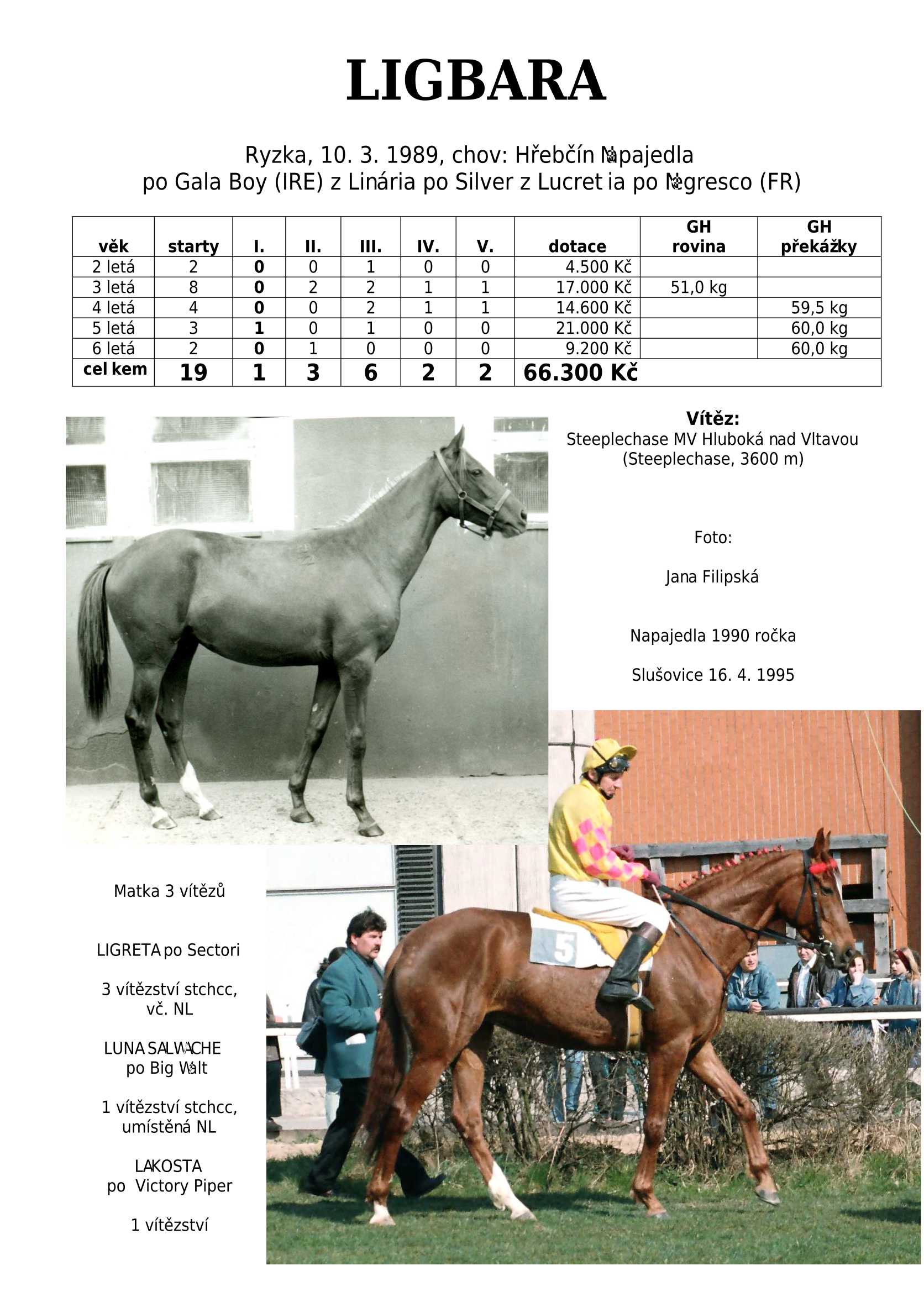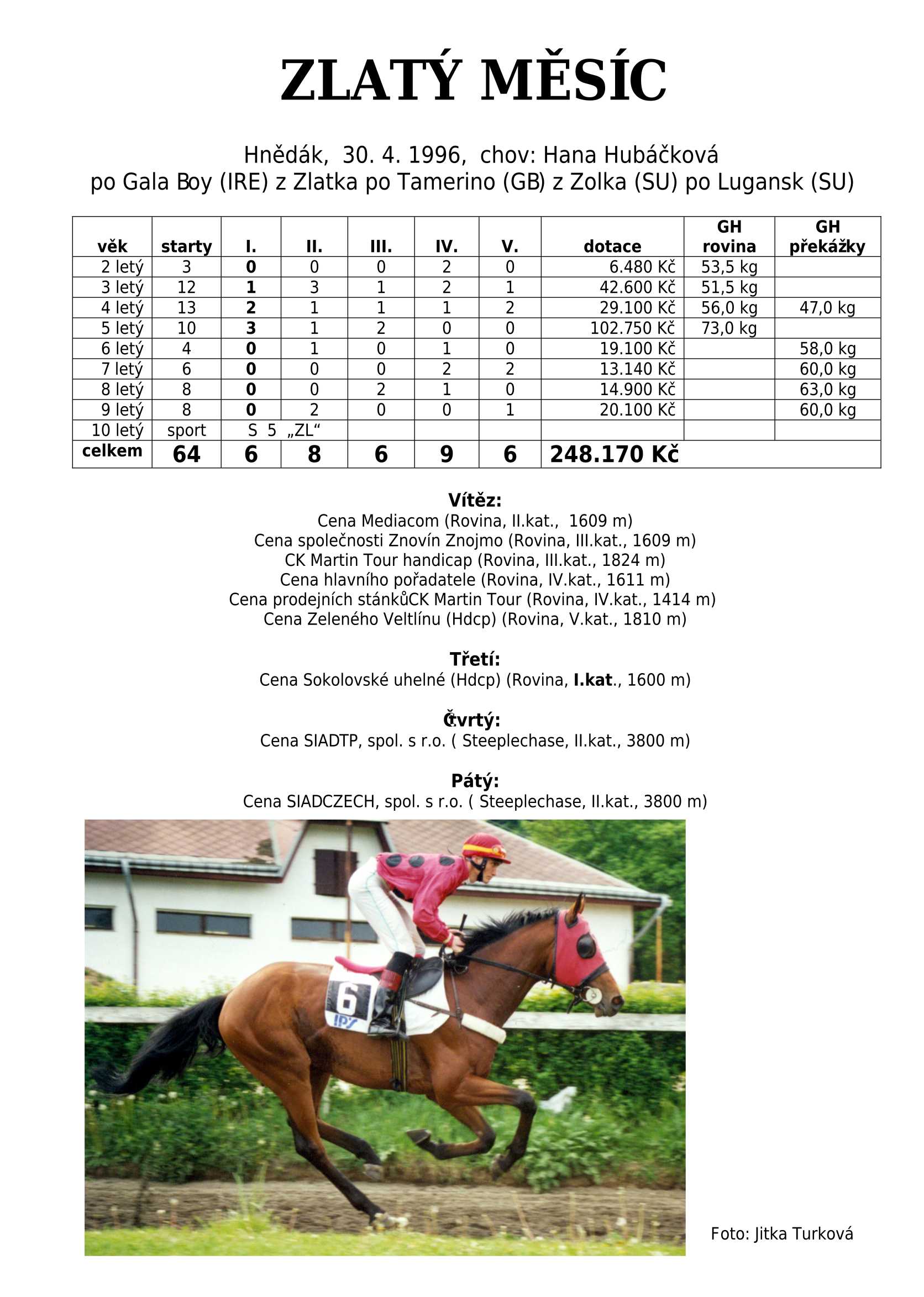 Ke konci dostihové sezóny jsem se pustila do aktualizace výsledků vítězných potomků. Každý plemeník bude mít své potomky na hlavní stránce, bez dalšího vyhledávání a klikání. Vše bude přehlednější, ale aktualizace bude z časových důvodů postupná. Přidáváni jsou potomci s ukončenou dostihovou kariérou.