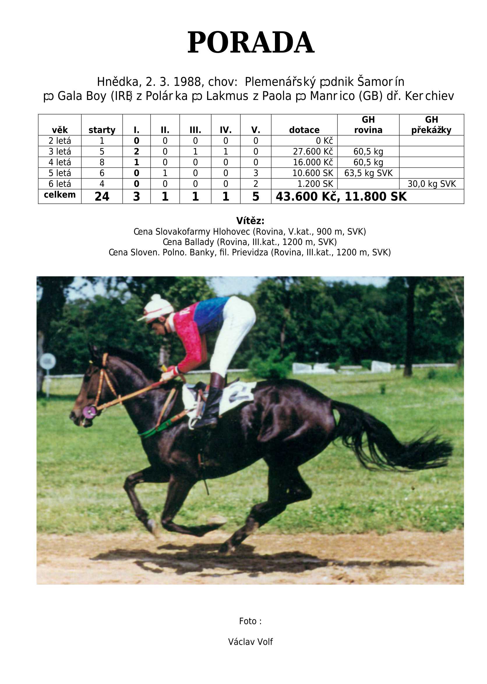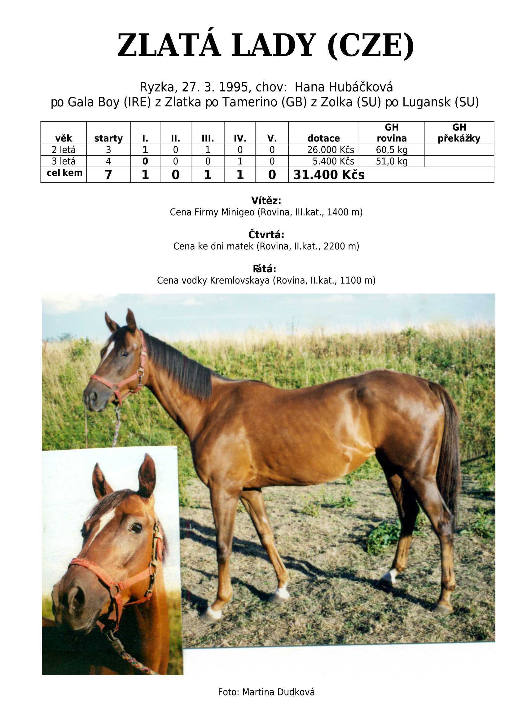 Trendem se ukazuje importování hotových koní. Stáda chovných klisen se stále tenčí, i když loňské úspěchy českých odchovanců byly excelentní, ale to už je jiná kapitola...