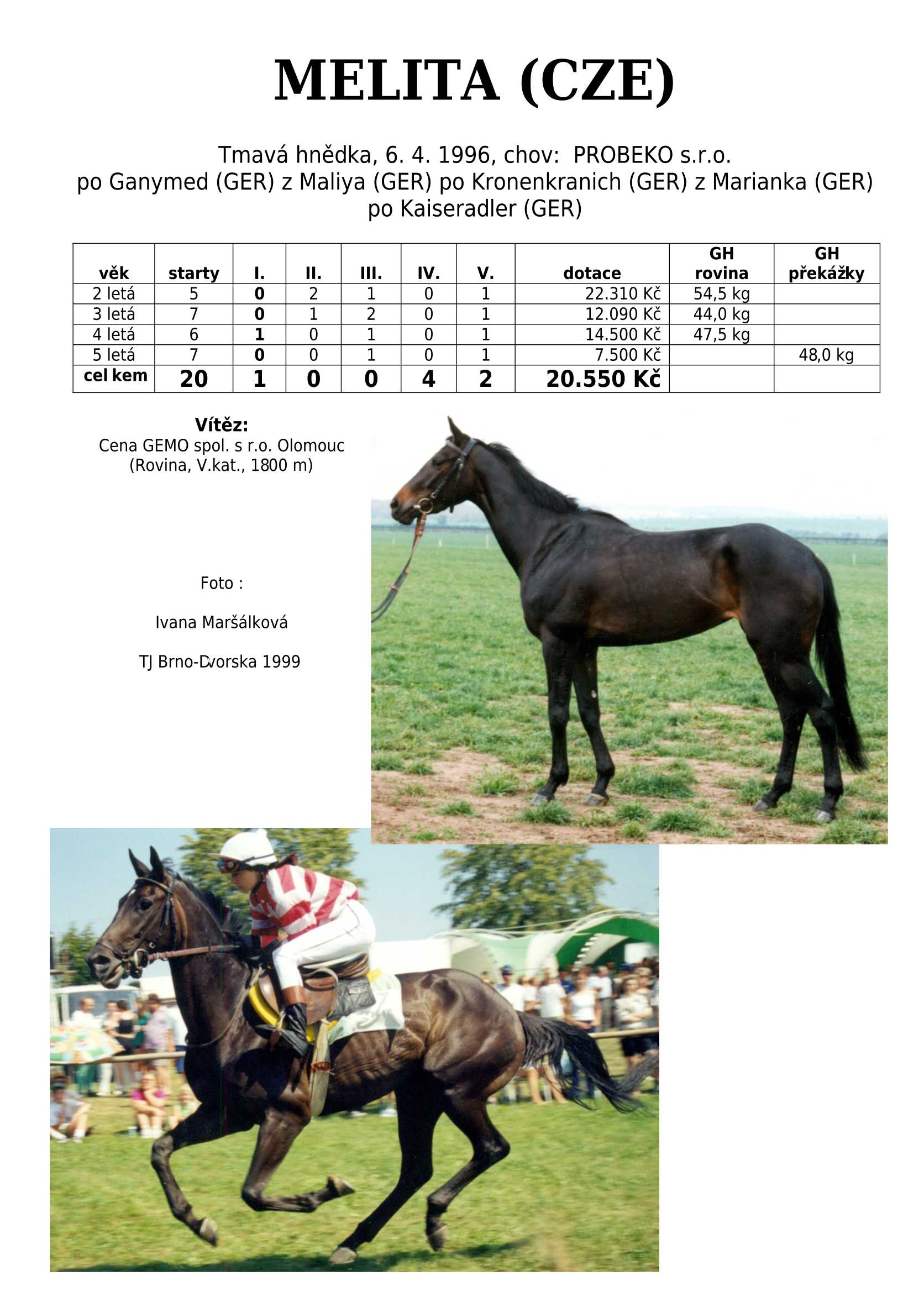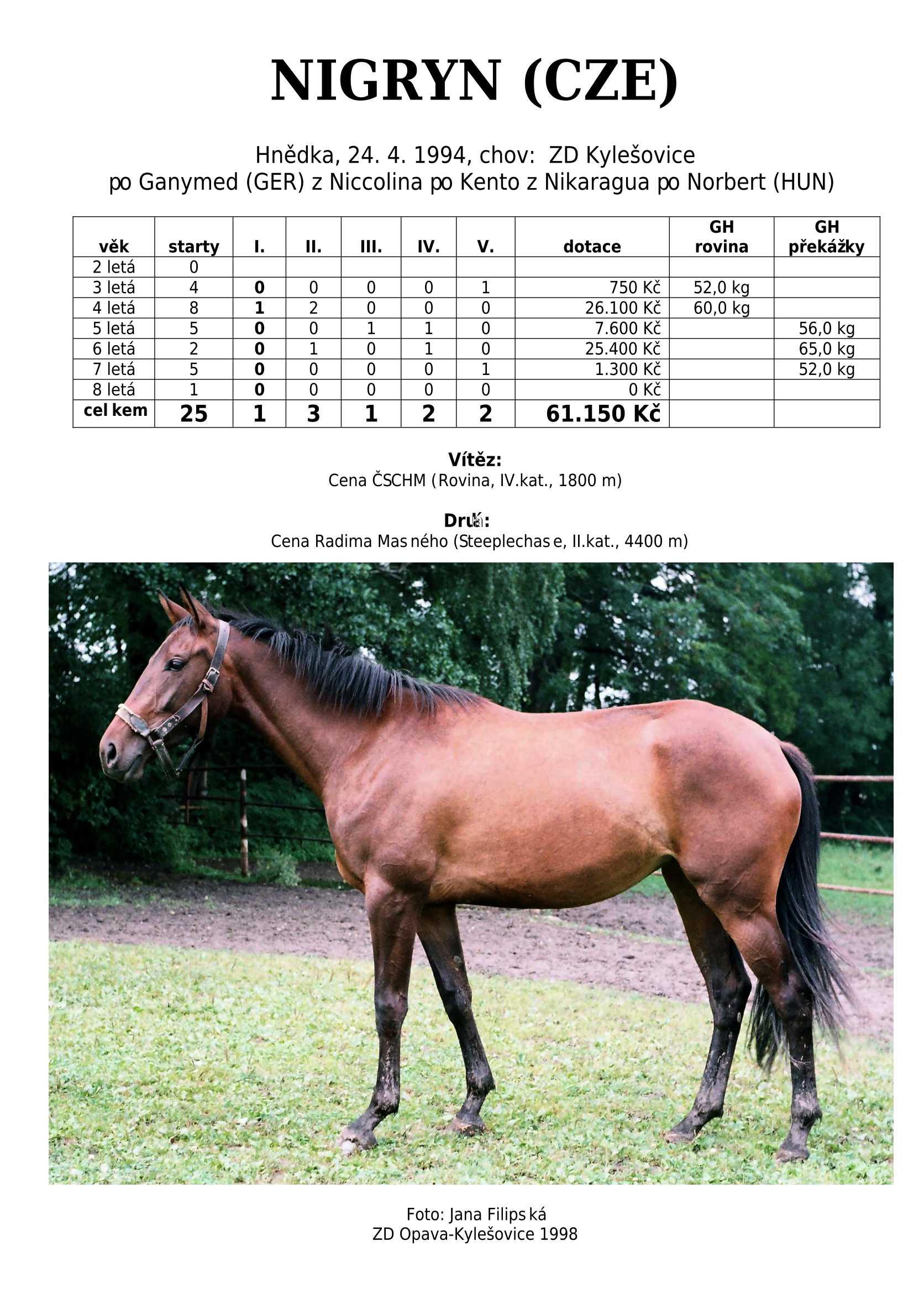 Ke konci dostihové sezóny jsem se pustila do aktualizace výsledků vítězných potomků. Každý plemeník bude mít své potomky na hlavní stránce, bez dalšího vyhledávání a klikání. Vše bude přehlednější, ale aktualizace bude z časových důvodů postupná. Přidáváni jsou potomci s ukončenou dostihovou kariérou.
