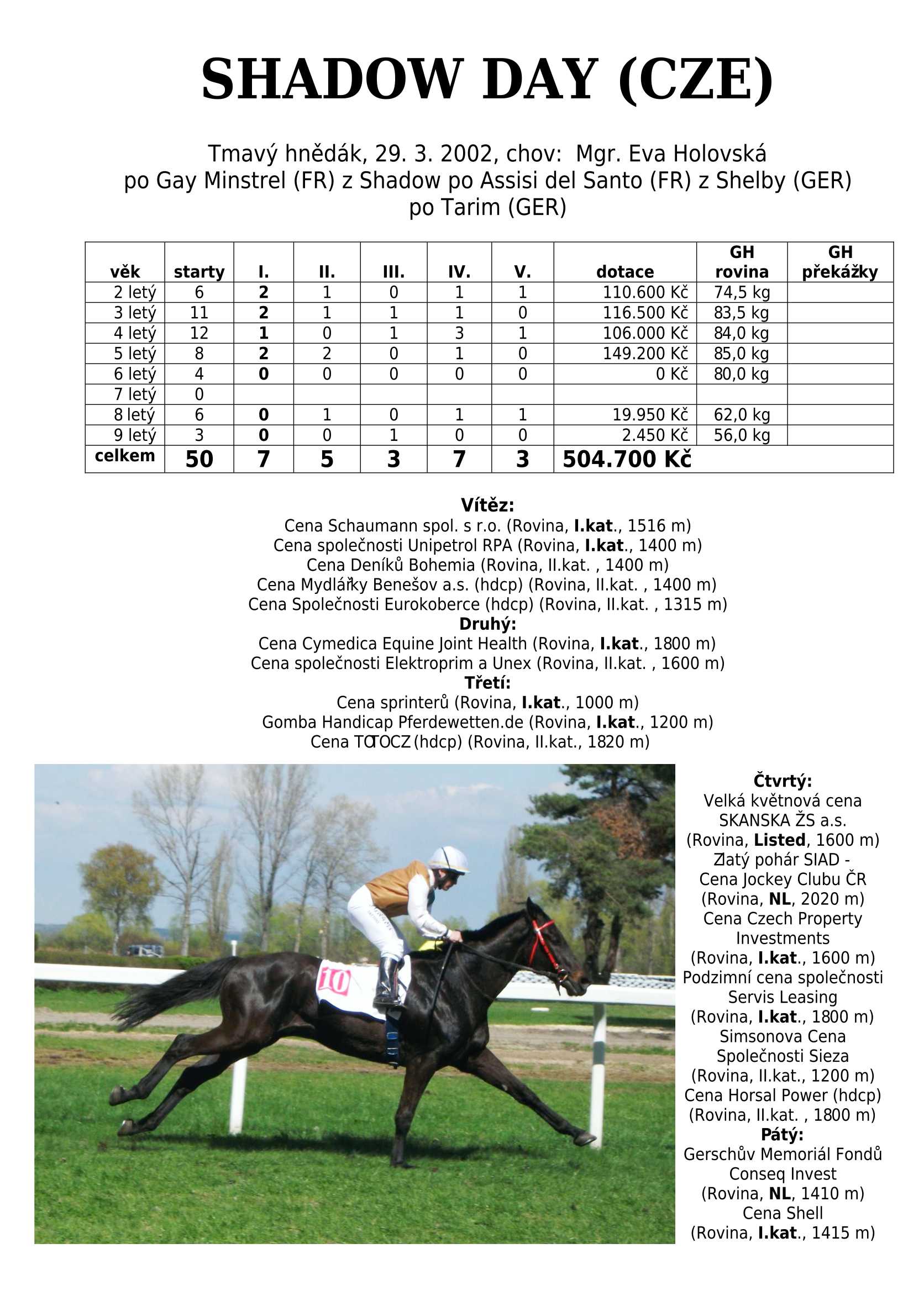Ke konci dostihové sezóny jsem se pustila do aktualizace výsledků vítězných potomků. Každý plemeník bude mít své potomky na hlavní stránce, bez dalšího vyhledávání a klikání. Vše bude přehlednější, ale aktualizace bude z časových důvodů postupná. Přidáváni jsou potomci s ukončenou dostihovou kariérou.