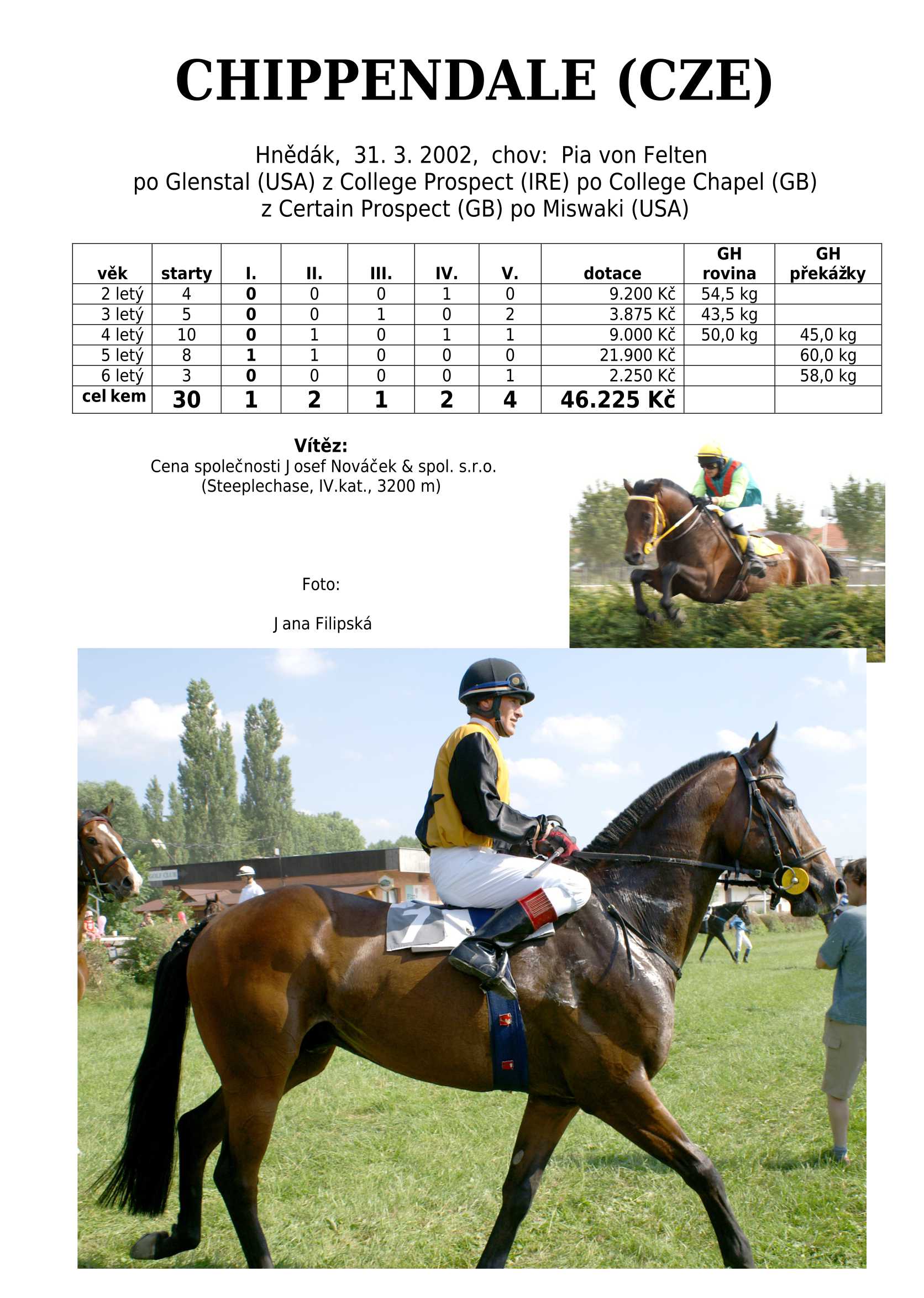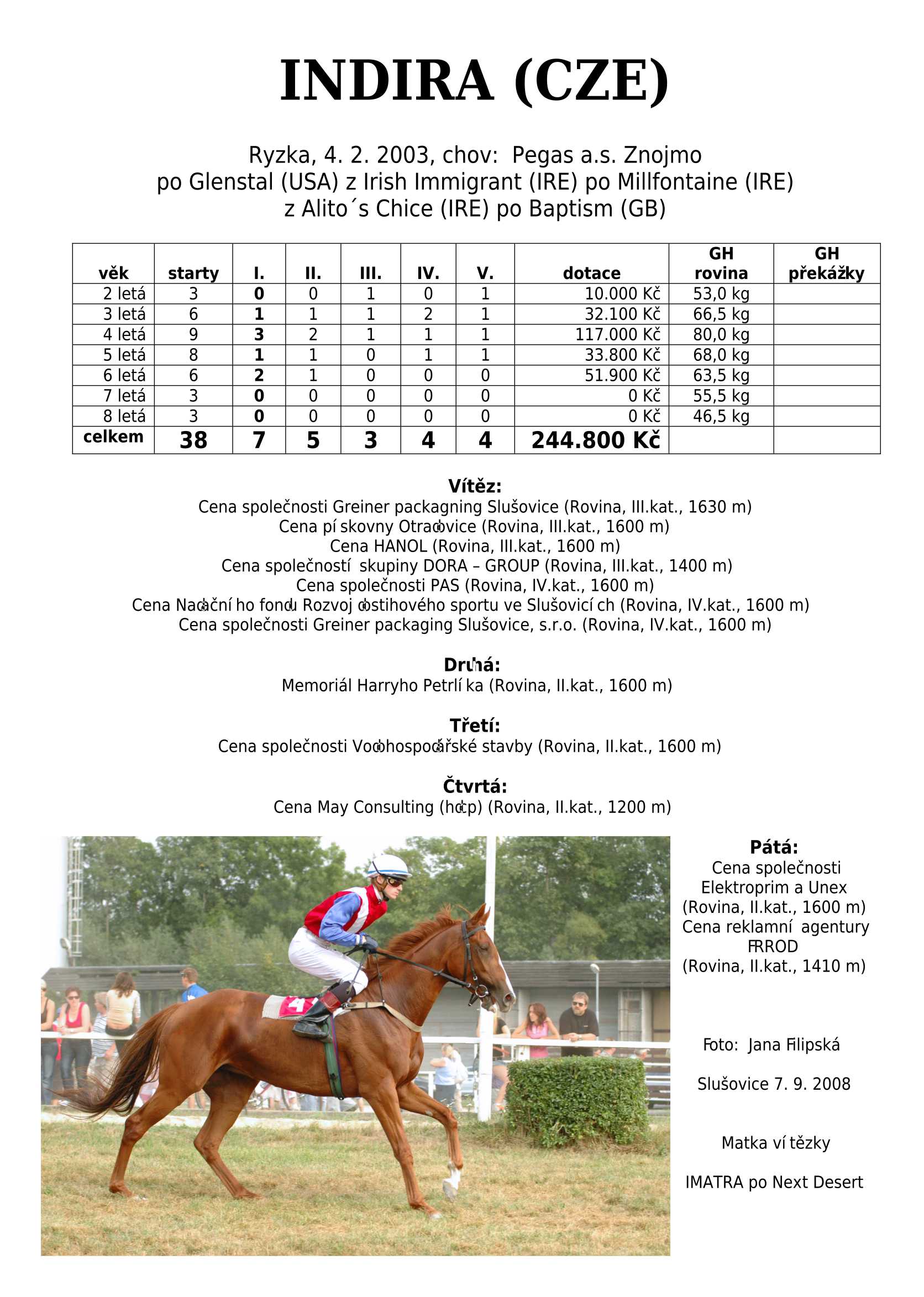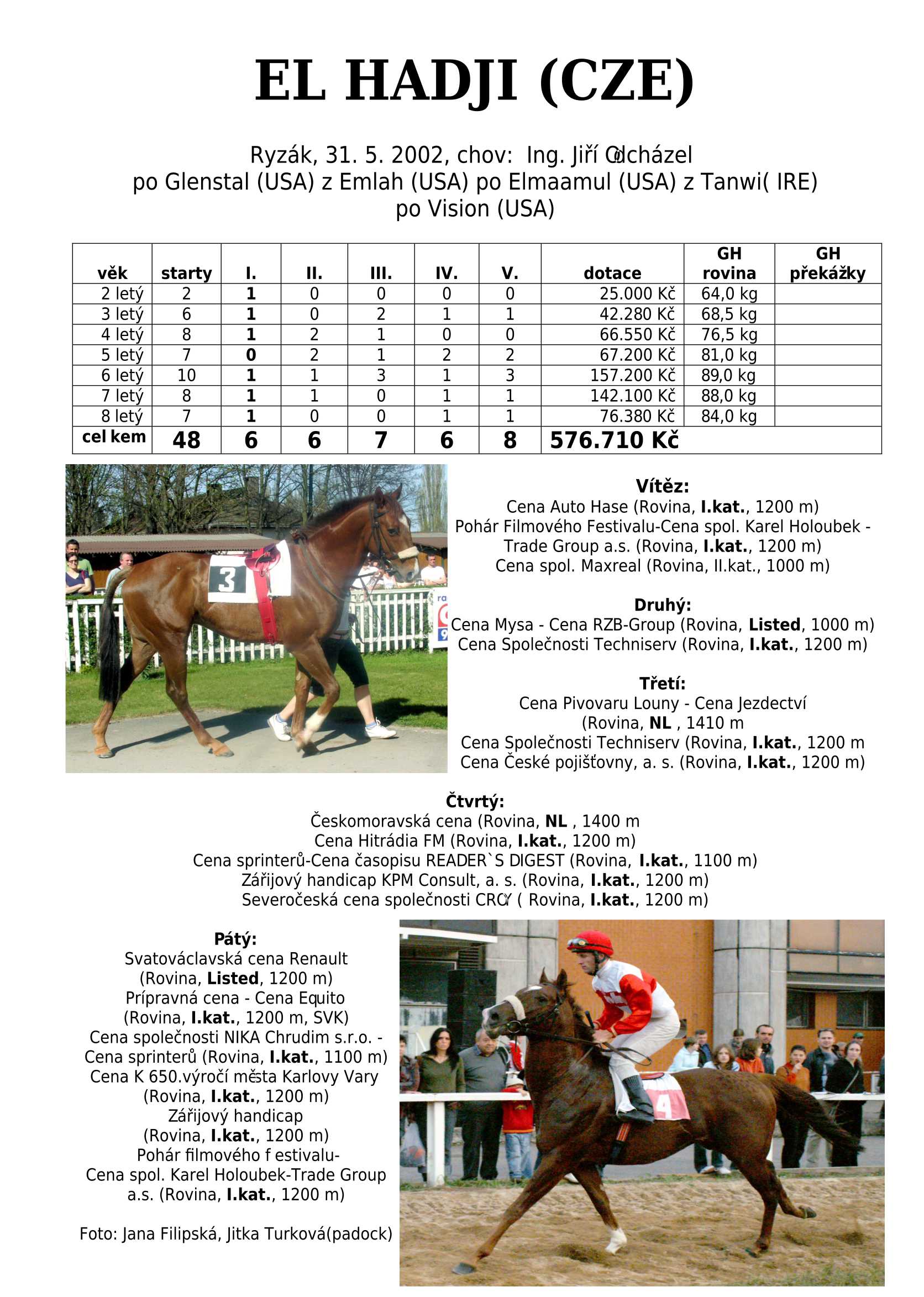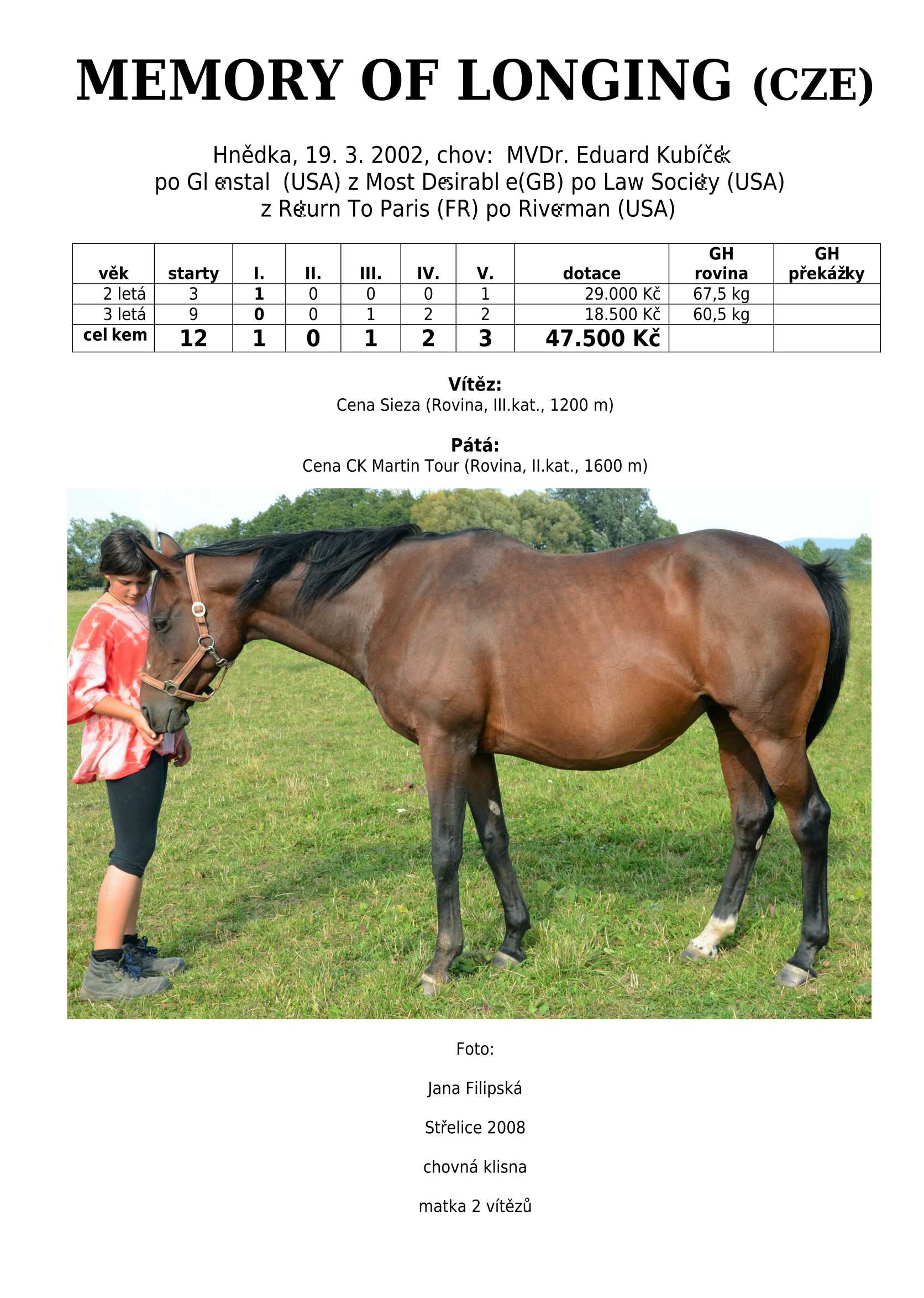 Ke konci dostihové sezóny jsem se pustila do aktualizace výsledků vítězných potomků. Každý plemeník bude mít své potomky na hlavní stránce, bez dalšího vyhledávání a klikání. Vše bude přehlednější, ale aktualizace bude z časových důvodů postupná. Přidáváni jsou potomci s ukončenou dostihovou kariérou.