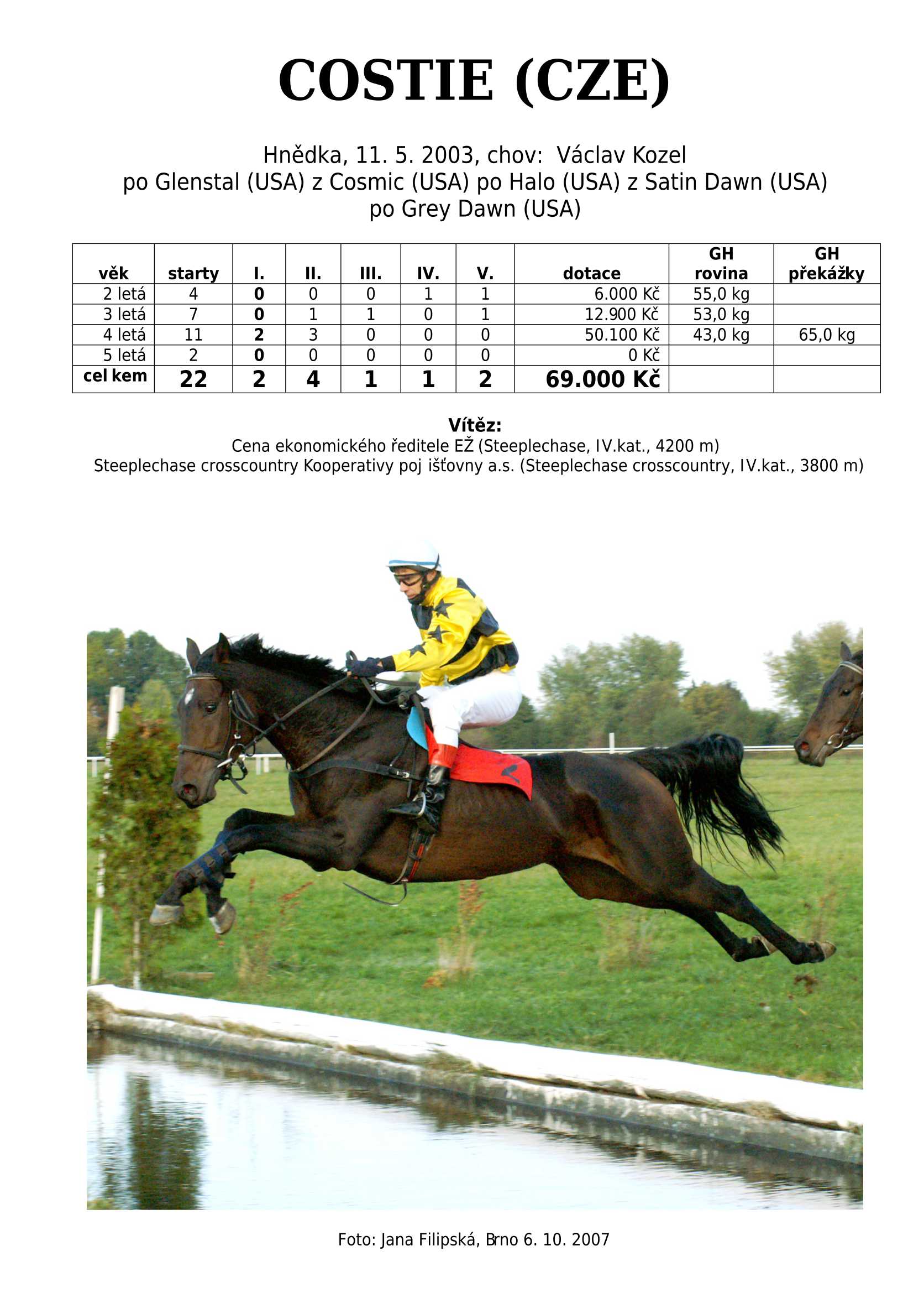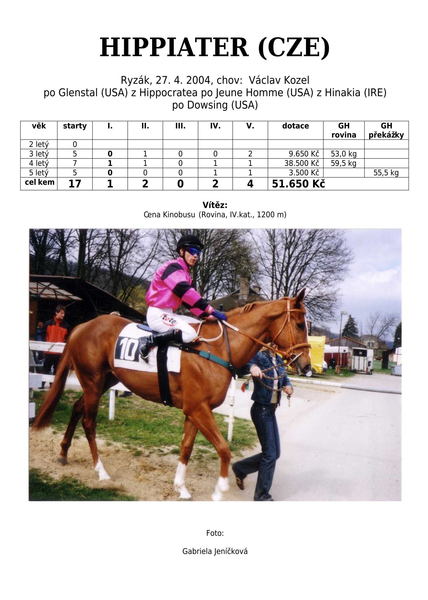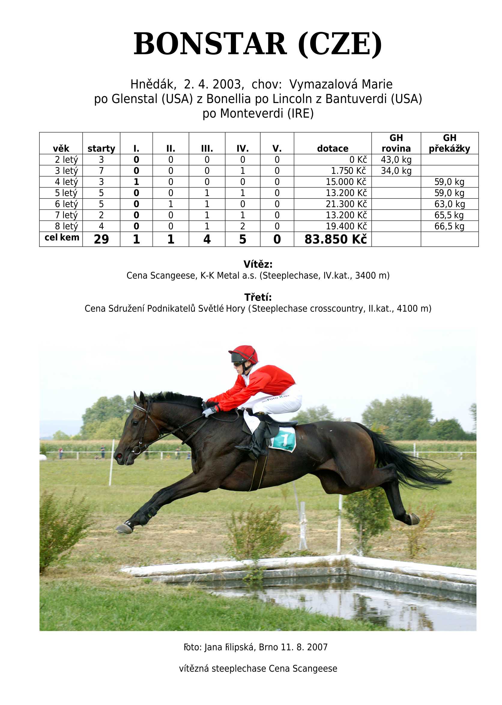 Ke konci dostihové sezóny jsem se pustila do aktualizace výsledků vítězných potomků. Každý plemeník bude mít své potomky na hlavní stránce, bez dalšího vyhledávání a klikání. Vše bude přehlednější, ale aktualizace bude z časových důvodů postupná. Přidáváni jsou potomci s ukončenou dostihovou kariérou.