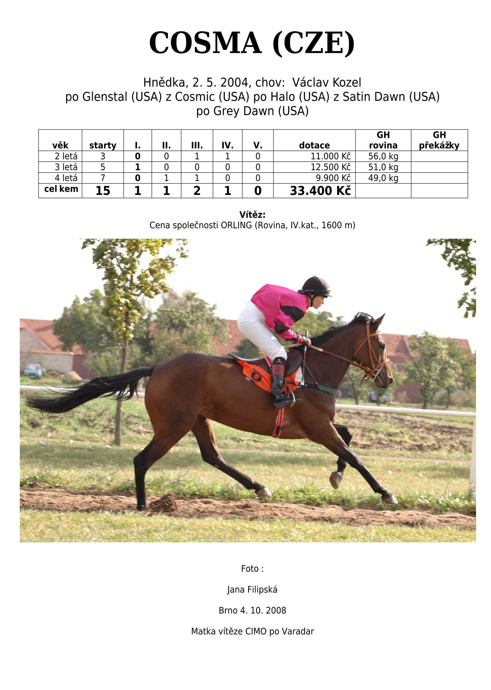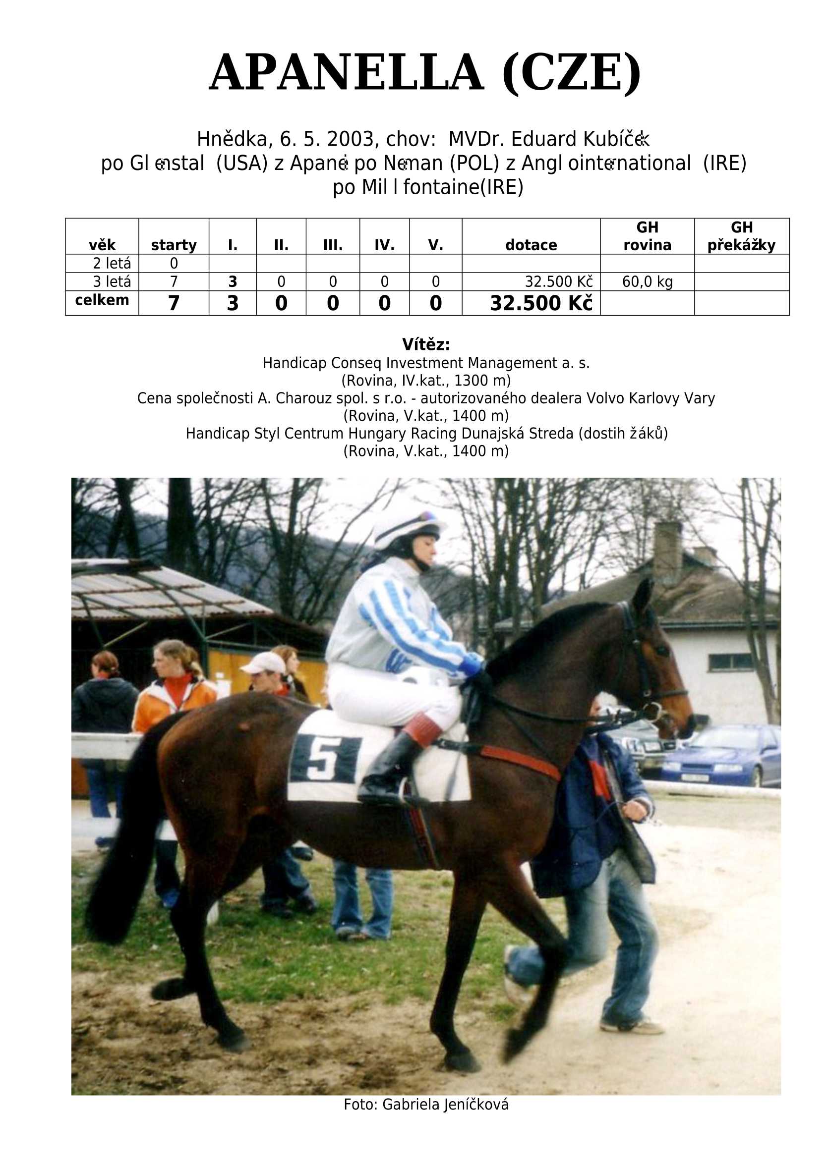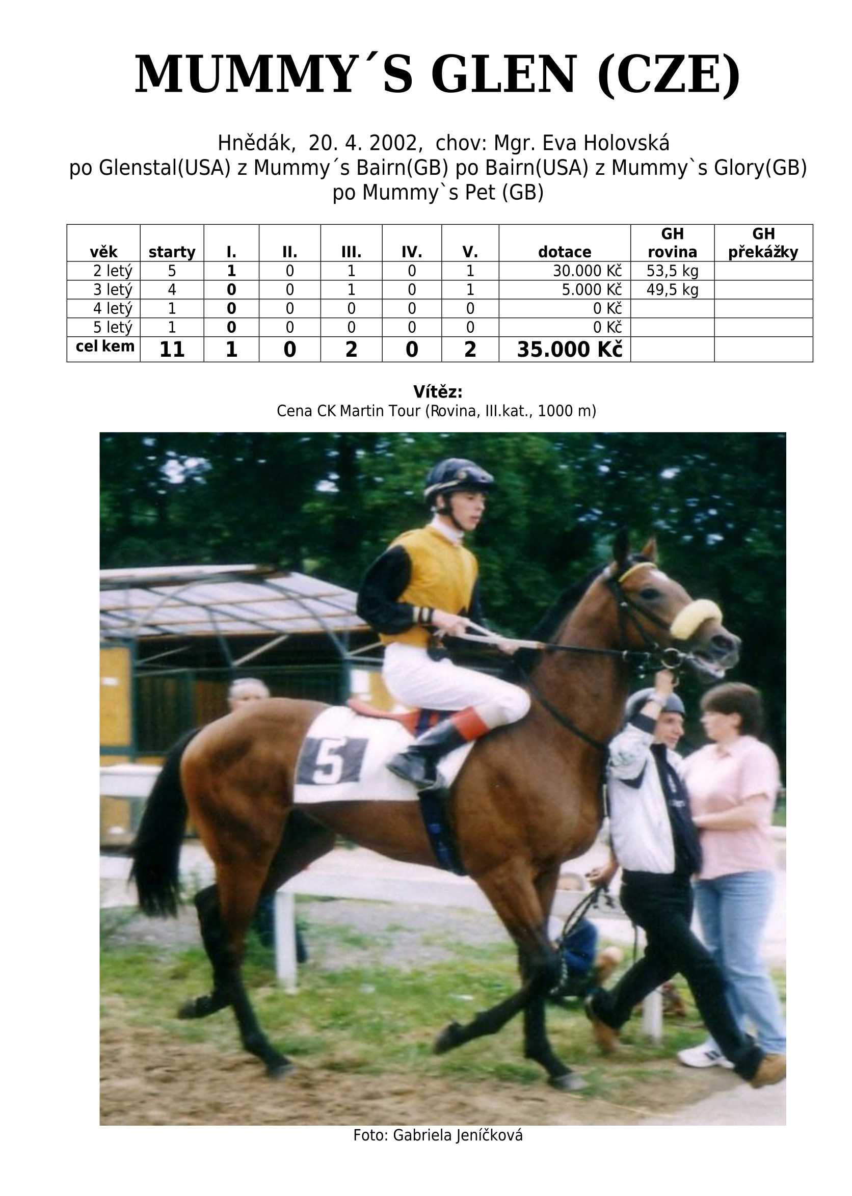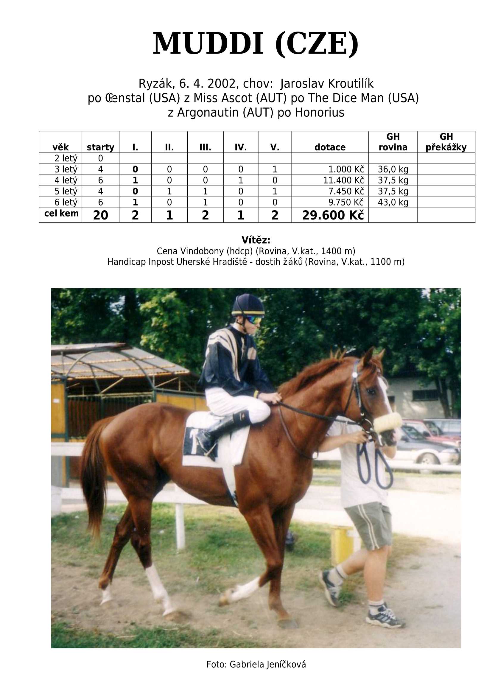 Ke konci dostihové sezóny jsem se pustila do aktualizace výsledků vítězných potomků. Každý plemeník bude mít své potomky na hlavní stránce, bez dalšího vyhledávání a klikání. Vše bude přehlednější, ale aktualizace bude z časových důvodů postupná. Přidáváni jsou potomci s ukončenou dostihovou kariérou.