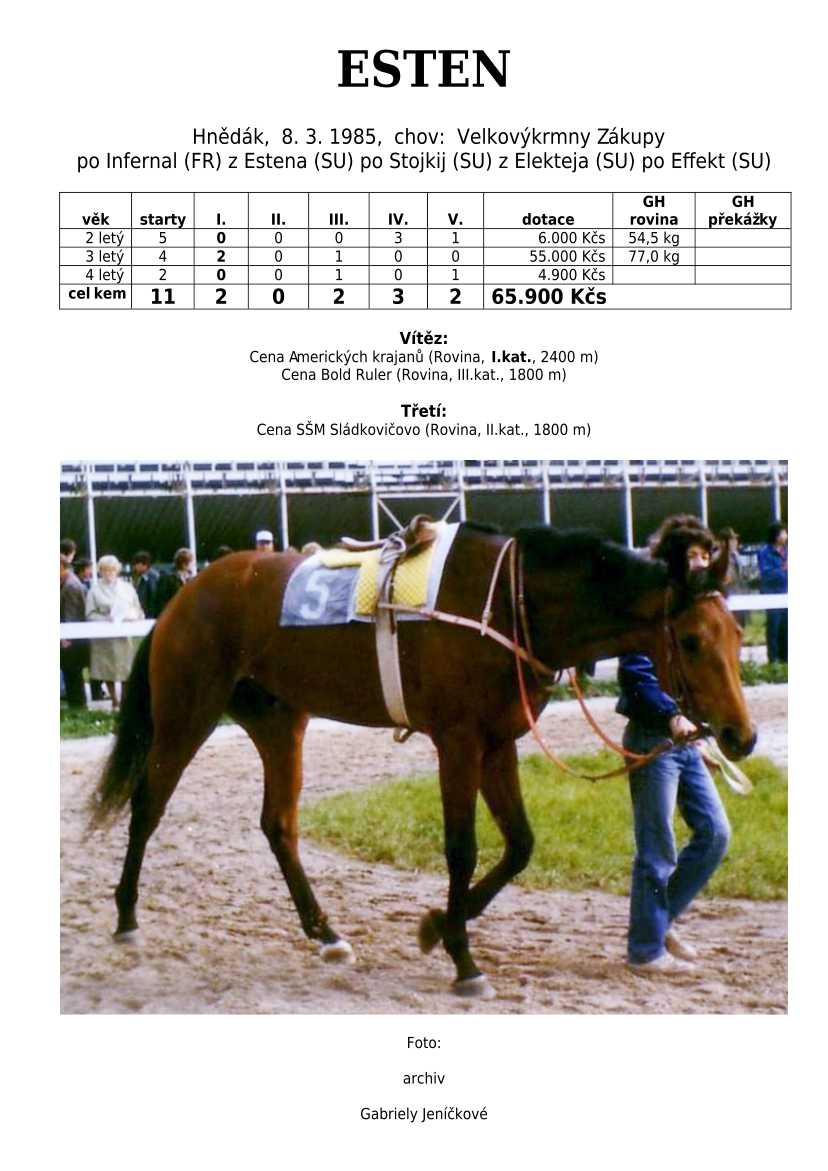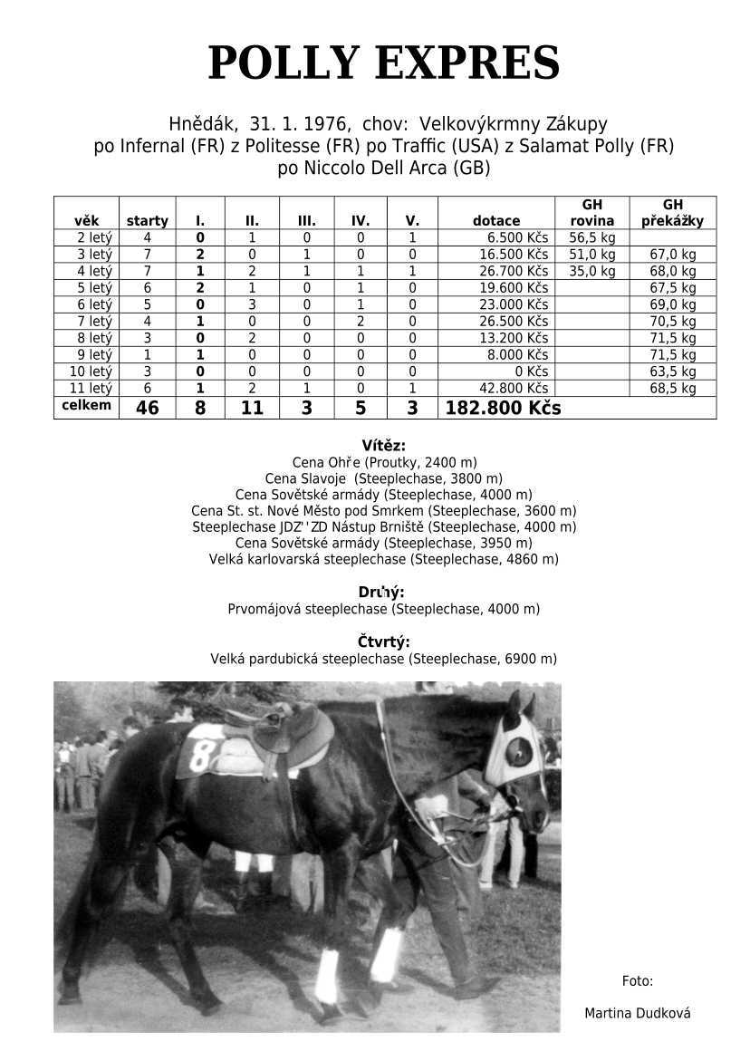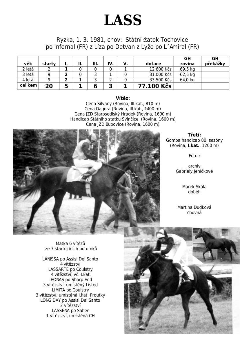 Otec L´AVENIR (klasická vítězka), POLLY EXPRESS, VLTAVÍN, ESTEN, LASS...
