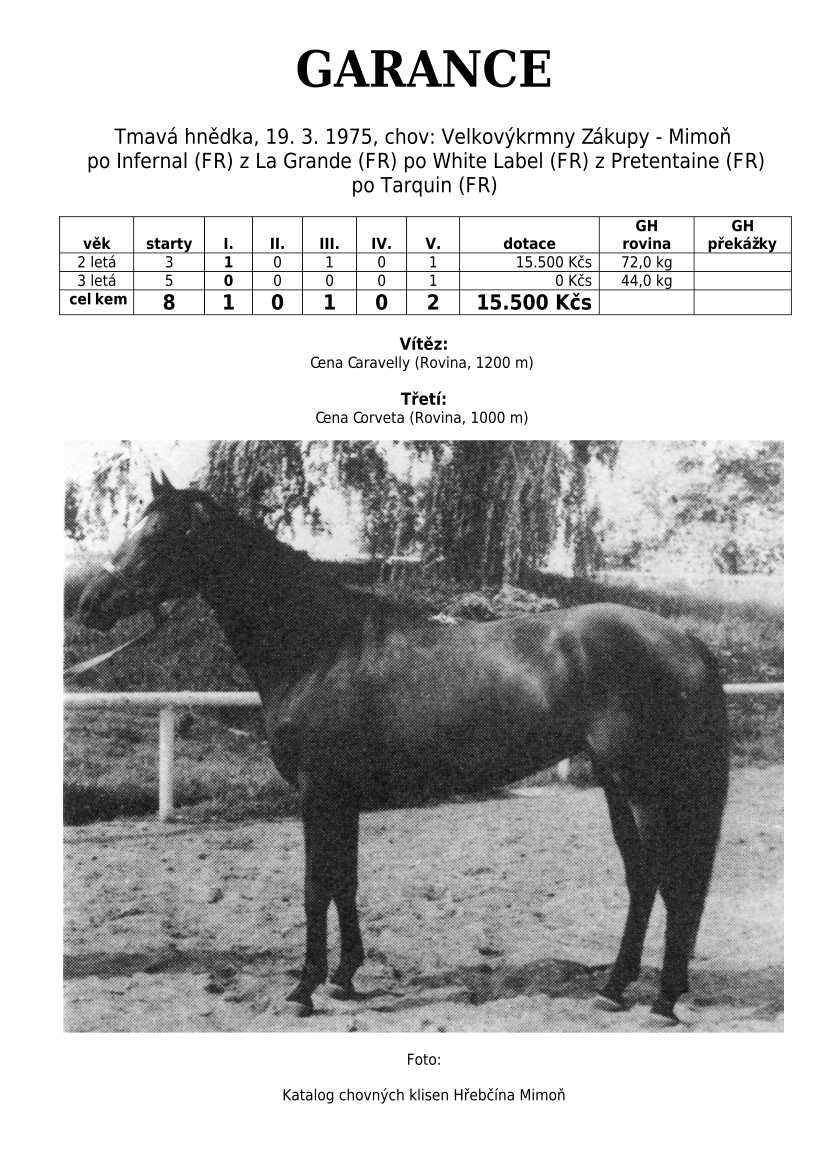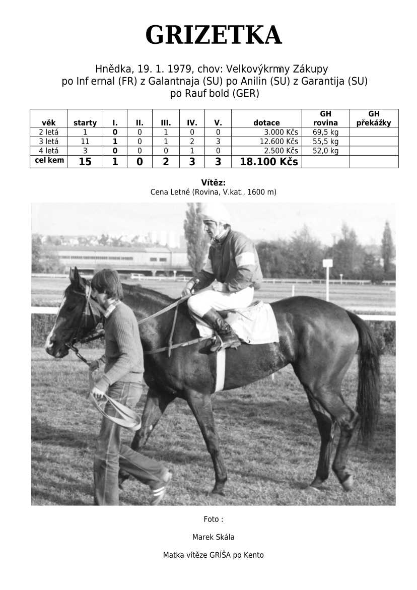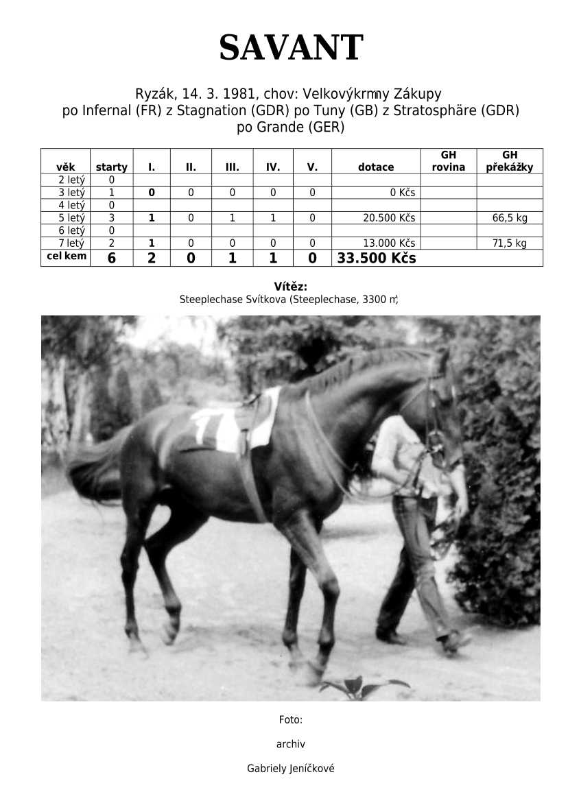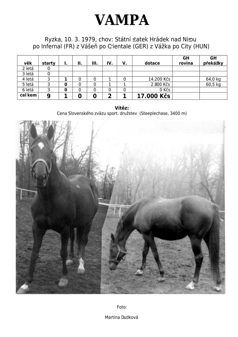 Otec L´AVENIR (klasická vítězka), POLLY EXPRESS, VLTAVÍN, ESTEN, LASS...