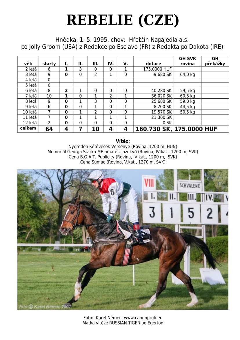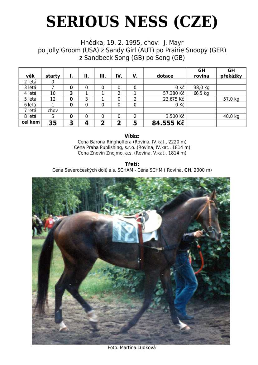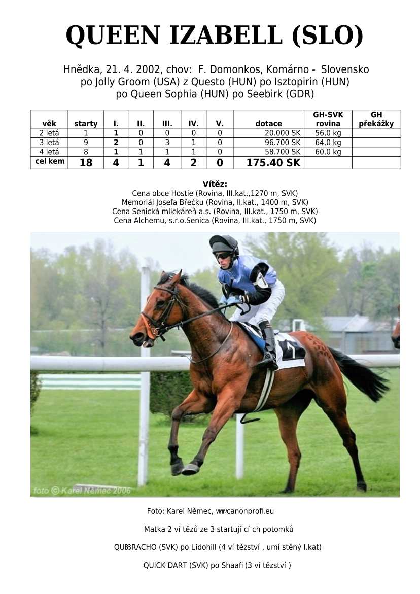 Ke konci dostihové sezóny jsem se pustila do aktualizace výsledků vítězných potomků. Každý plemeník bude mít své potomky na hlavní stránce, bez dalšího vyhledávání a klikání. Vše bude přehlednější, ale aktualizace bude z časových důvodů postupná. Přidáváni jsou potomci s ukončenou dostihovou kariérou.