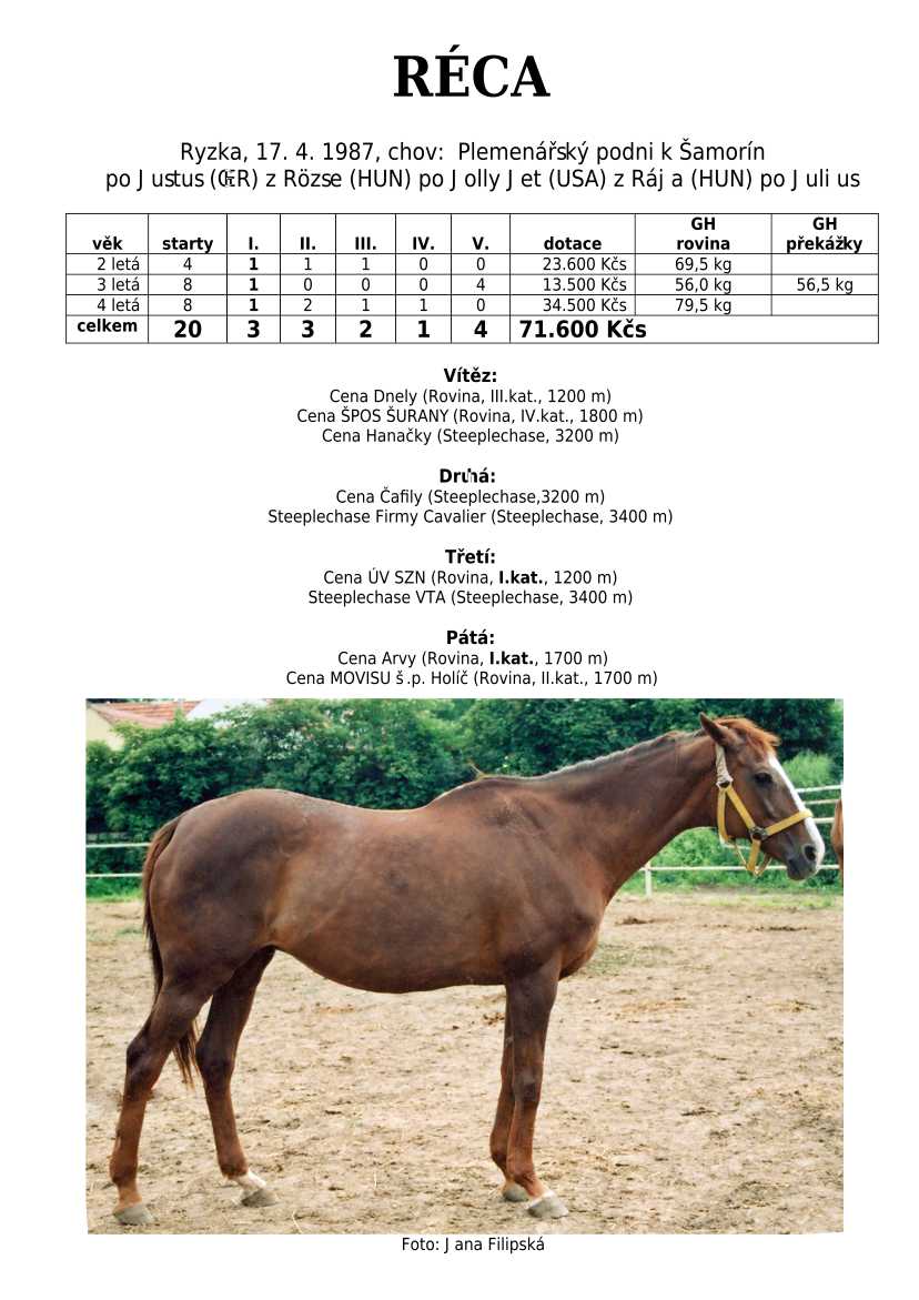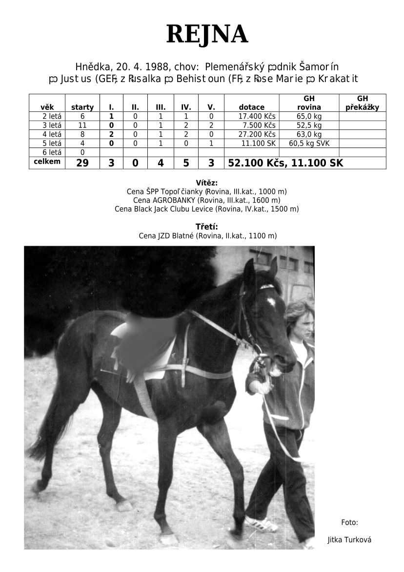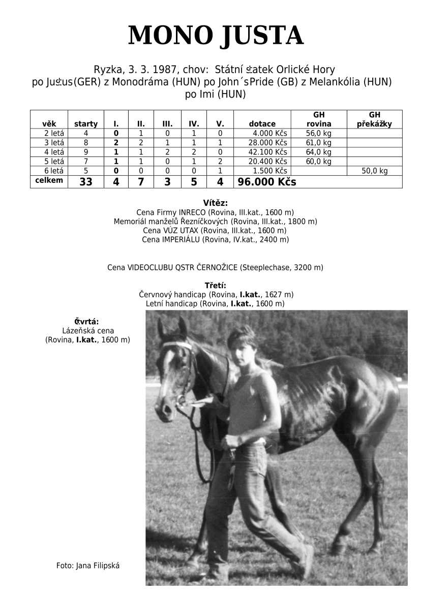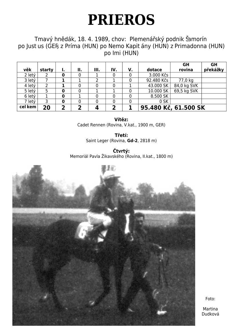 Ke konci dostihové sezóny jsem se pustila do aktualizace výsledků vítězných potomků. Každý plemeník bude mít své potomky na hlavní stránce, bez dalšího vyhledávání a klikání. Vše bude přehlednější, ale aktualizace bude z časových důvodů postupná. Přidáváni jsou potomci s ukončenou dostihovou kariérou.