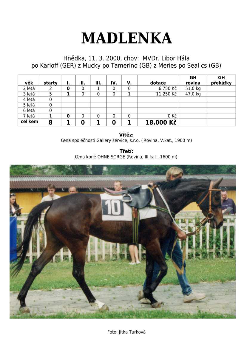 Ke konci dostihové sezóny jsem se pustila do aktualizace výsledků vítězných potomků. Každý plemeník bude mít své potomky na hlavní stránce, bez dalšího vyhledávání a klikání. Vše bude přehlednější, ale aktualizace bude z časových důvodů postupná. Přidáváni jsou potomci s ukončenou dostihovou kariérou.