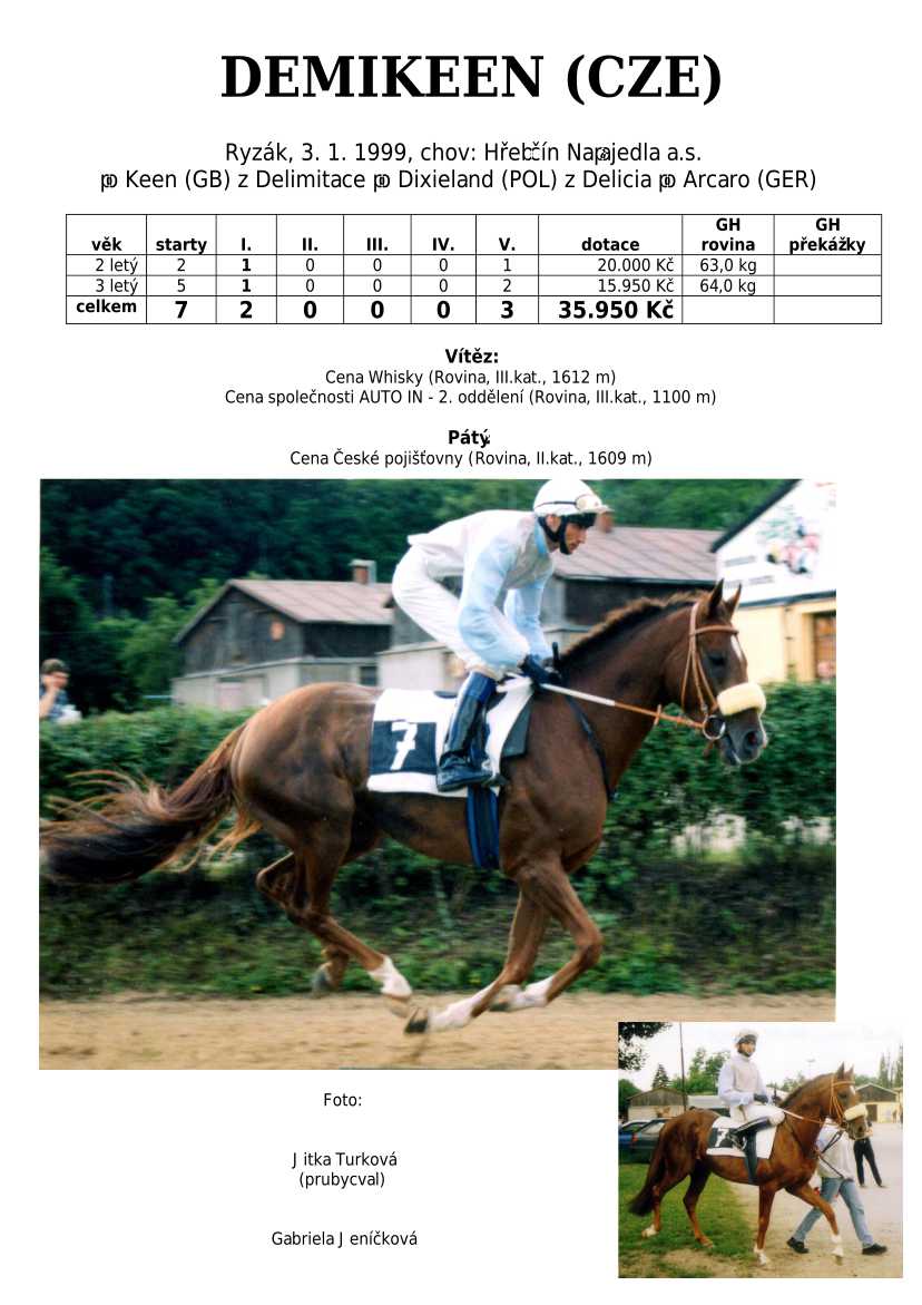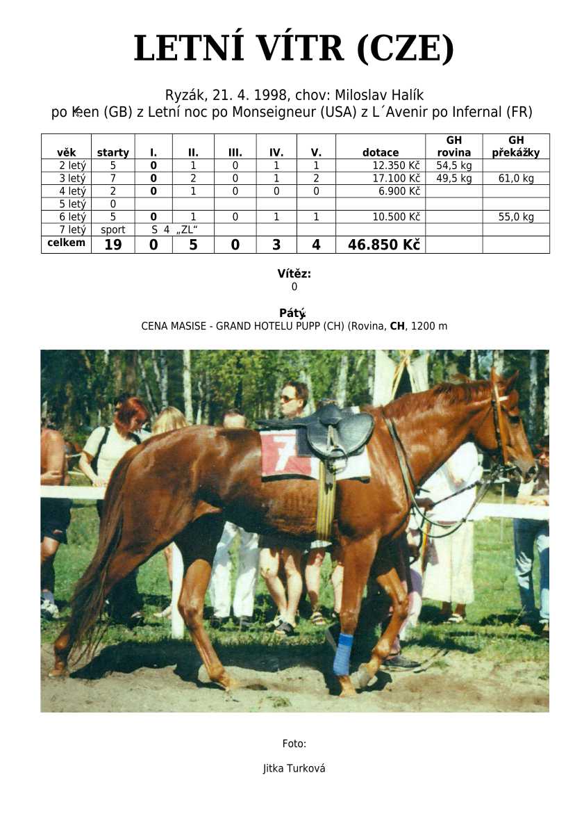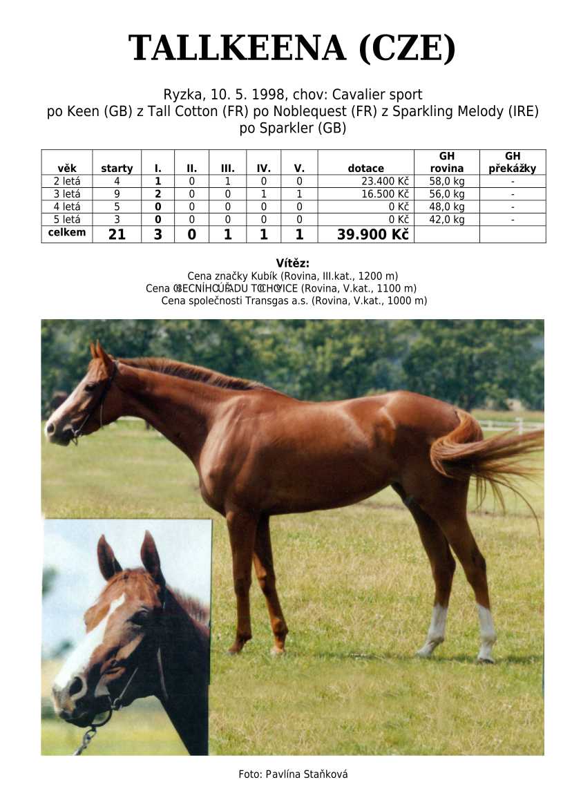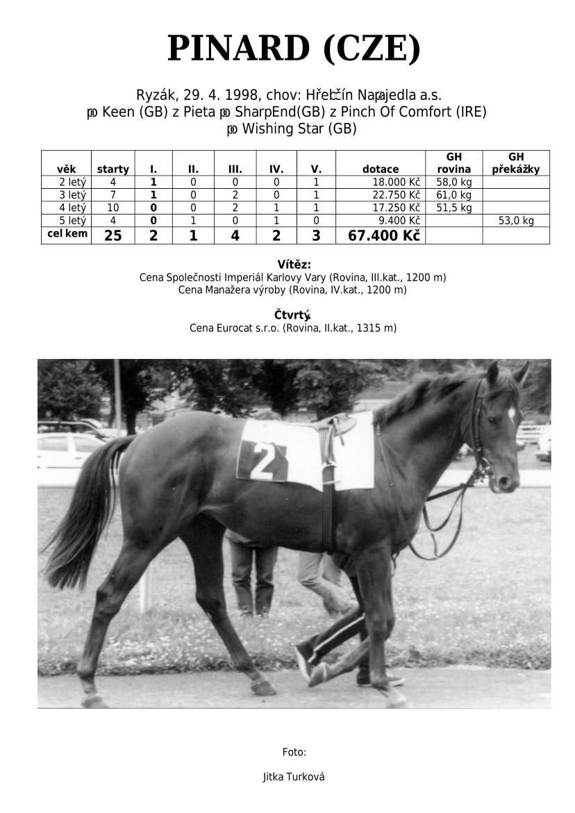 Ke konci dostihové sezóny jsem se pustila do aktualizace výsledků vítězných potomků. Každý plemeník bude mít své potomky na hlavní stránce, bez dalšího vyhledávání a klikání. Vše bude přehlednější, ale aktualizace bude z časových důvodů postupná. Přidáváni jsou potomci s ukončenou dostihovou kariérou.