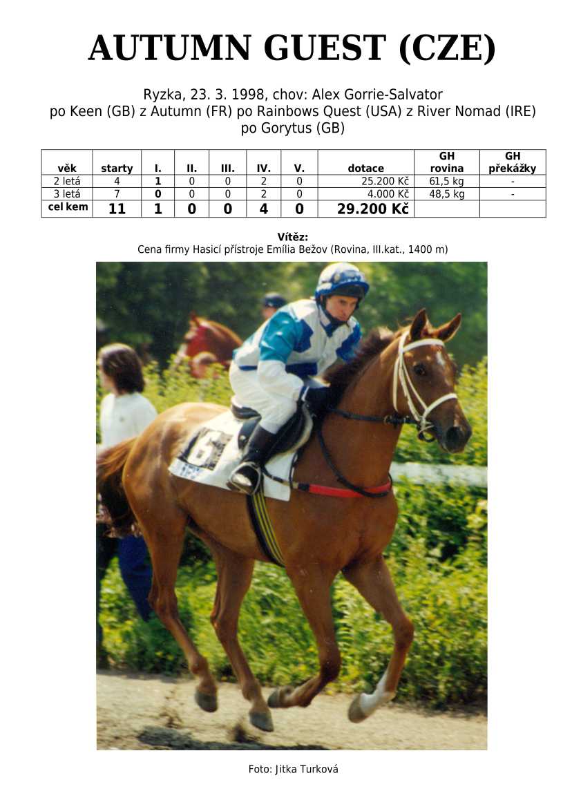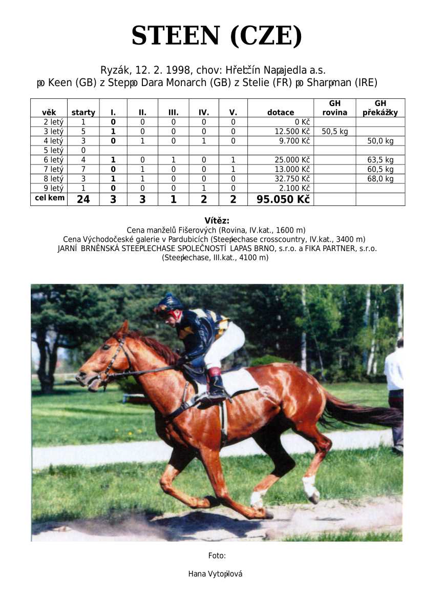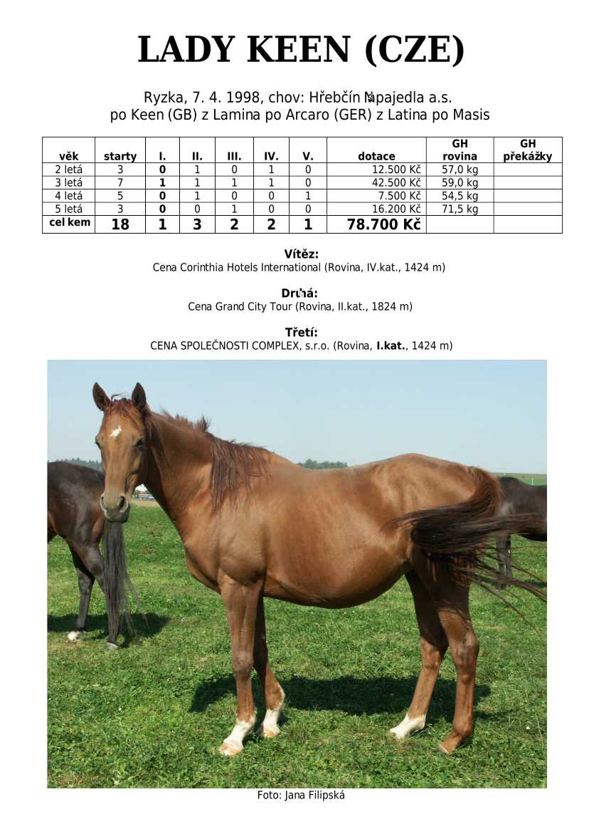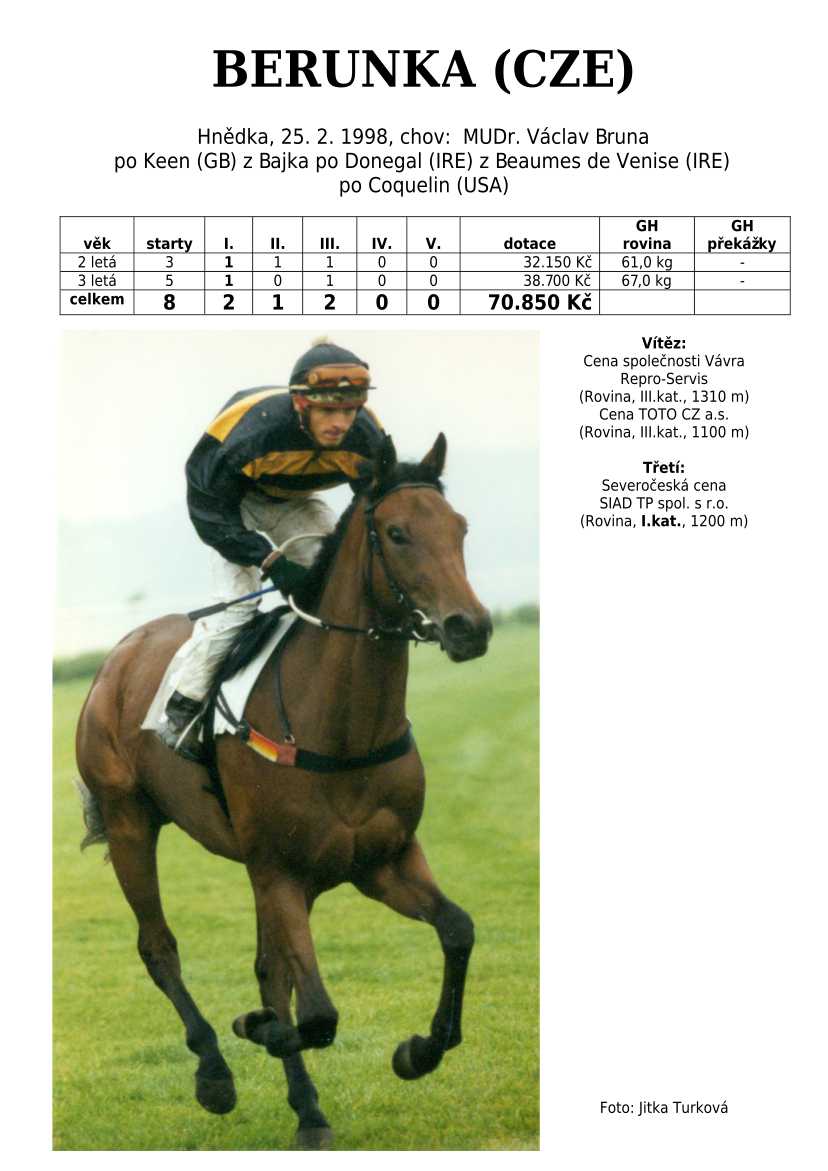 Ke konci dostihové sezóny jsem se pustila do aktualizace výsledků vítězných potomků. Každý plemeník bude mít své potomky na hlavní stránce, bez dalšího vyhledávání a klikání. Vše bude přehlednější, ale aktualizace bude z časových důvodů postupná. Přidáváni jsou potomci s ukončenou dostihovou kariérou.