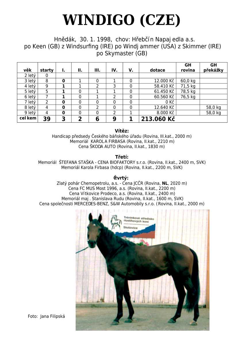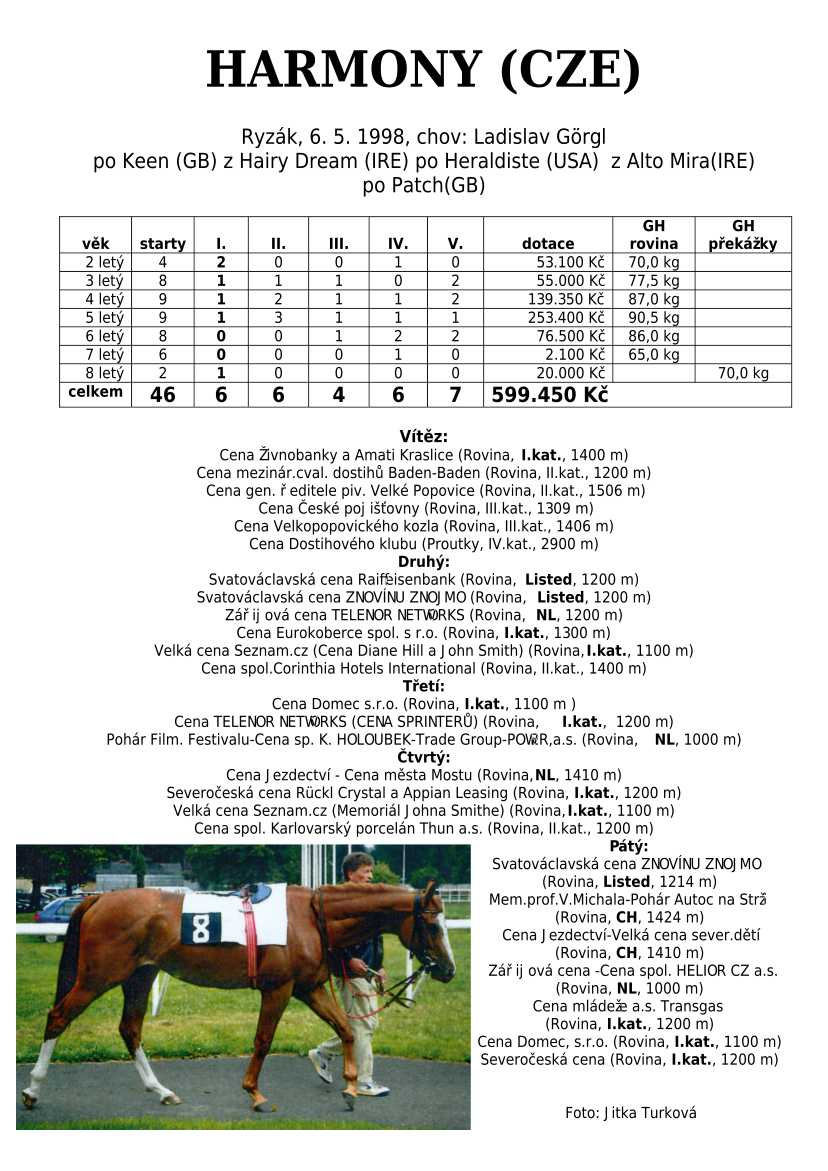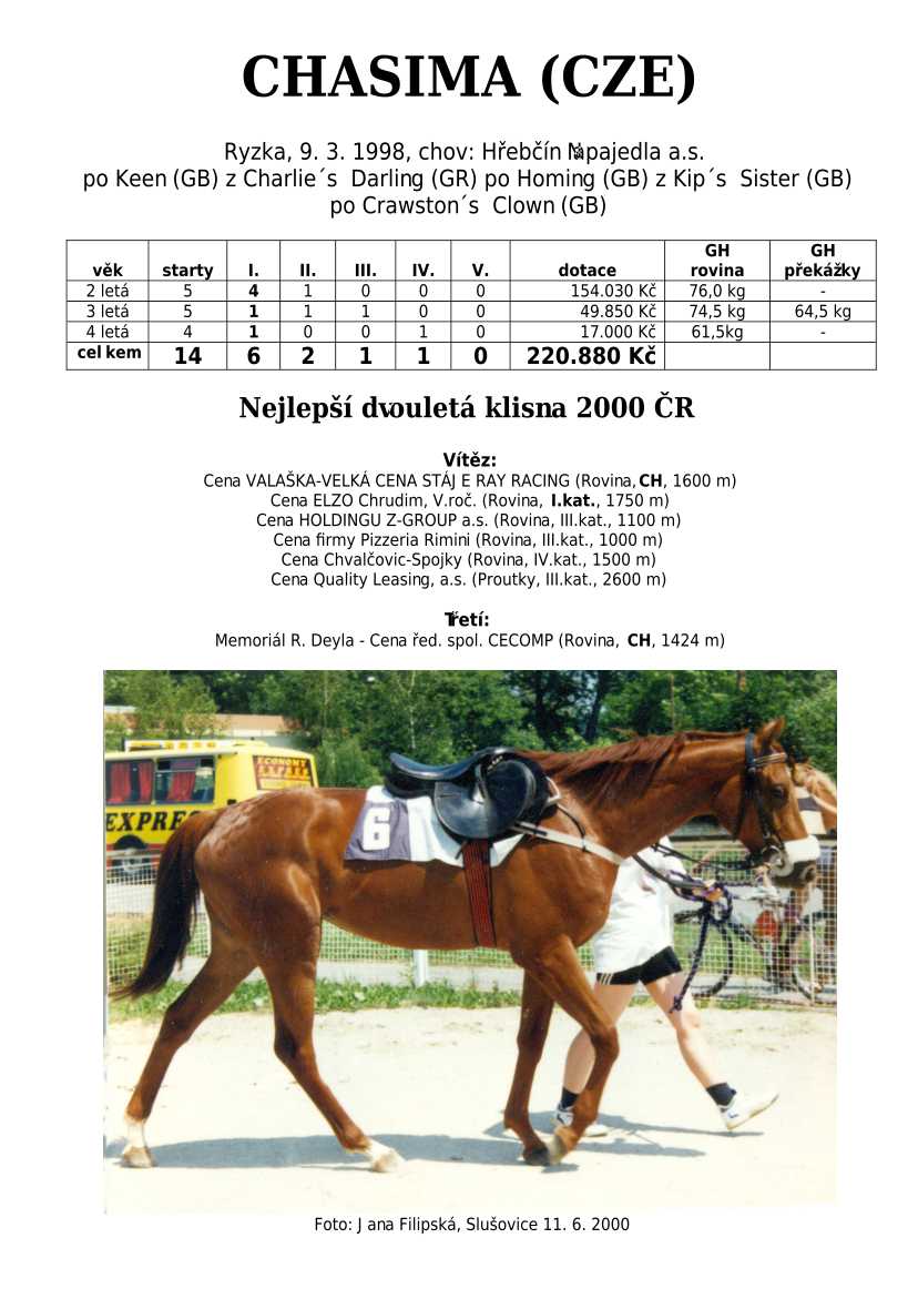Otec CHASIMA (Nejlepší 2letá klisna 2000 ČR), HARMONY, WINDIGO, RABAT...